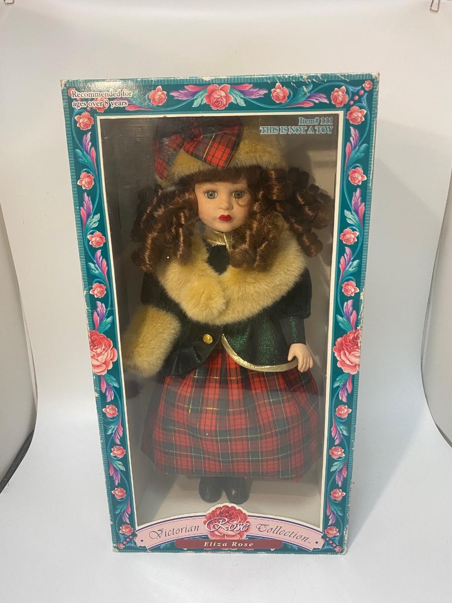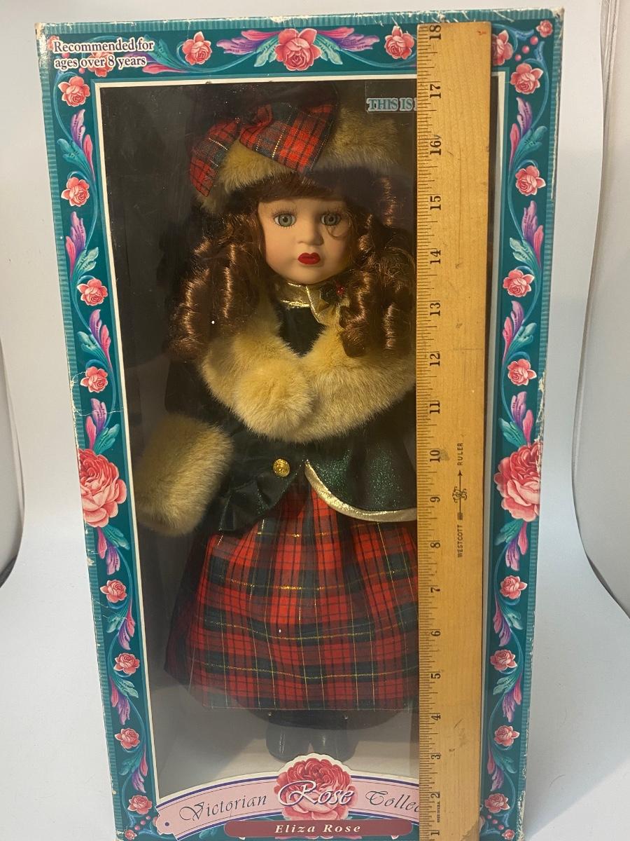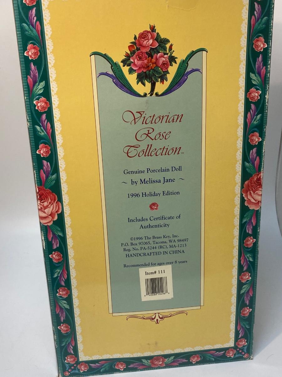 Victorian Rose Collection Eliza Rose Porcelain 1996 Holiday Edition Doll Boxed. In good condition, light wear to box. Doll is about 16" size.
