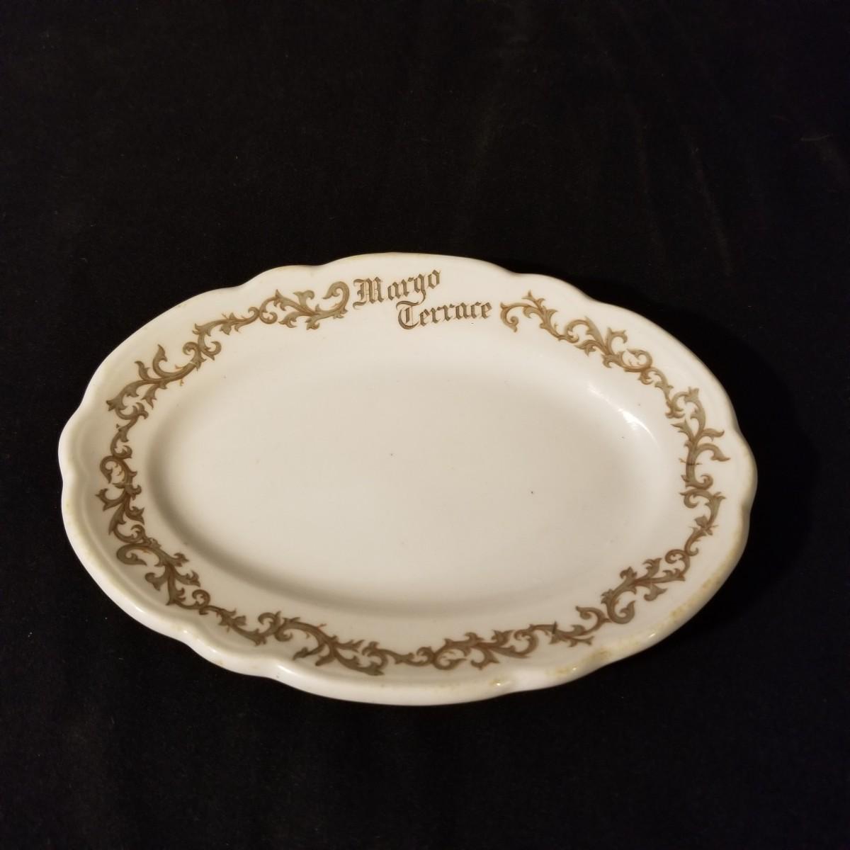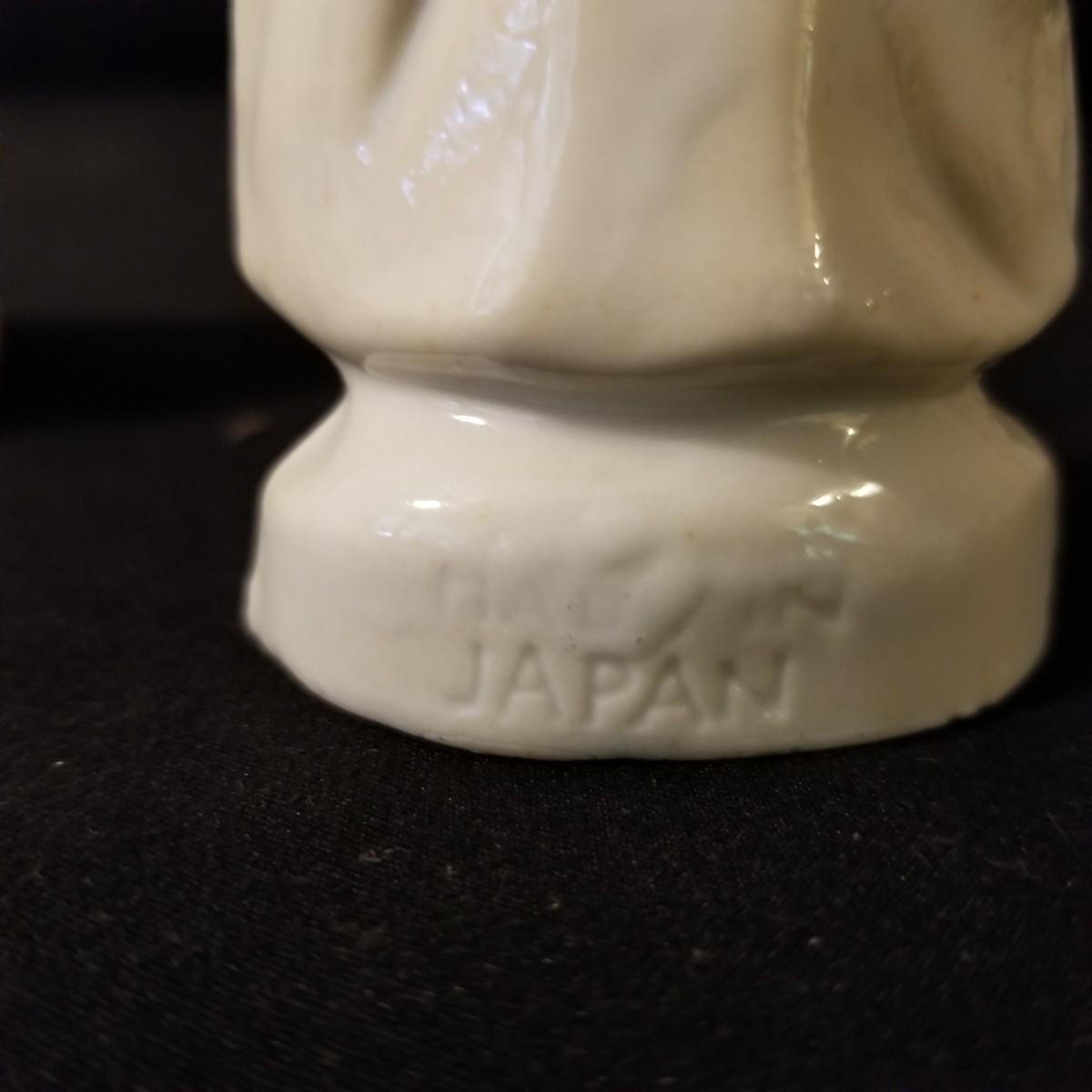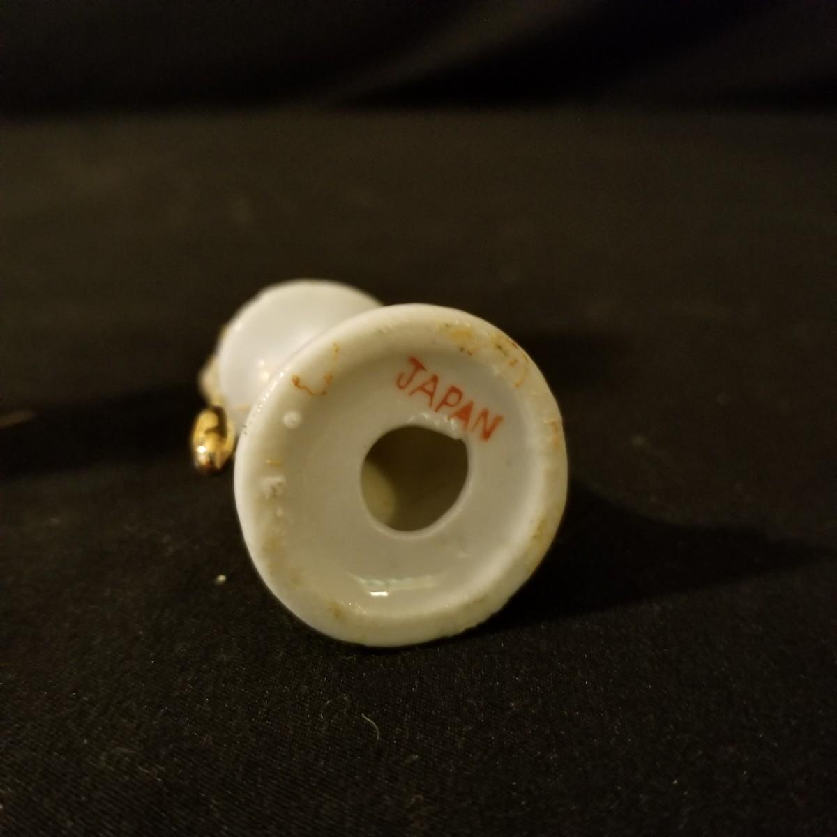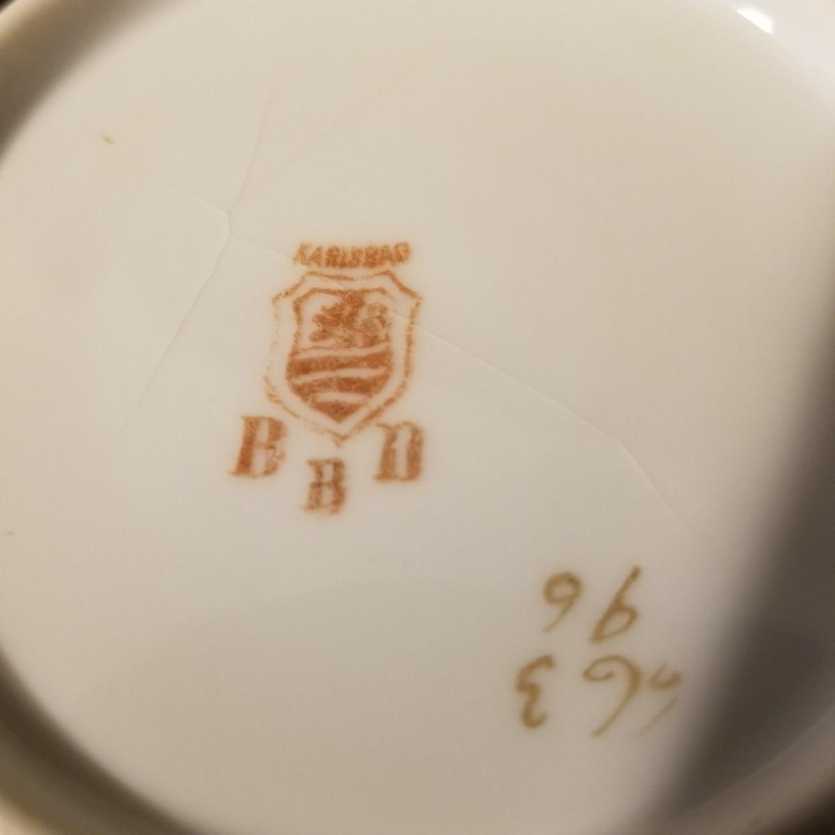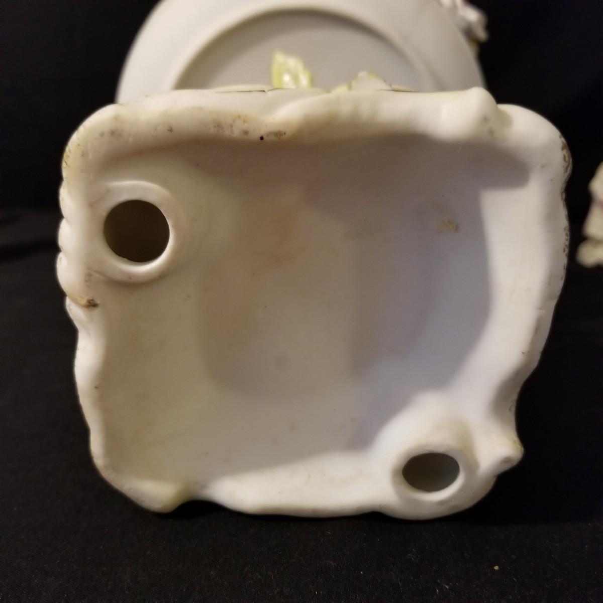 Quaint collection of small statues and dishes. Compote bowl with gold rim and flowers is 7"x9". Three 4.5" round dishes from Karlsbad, one 5"x7" oval dish, and seven statuettes of various poses. Tallest is 8" tall.
