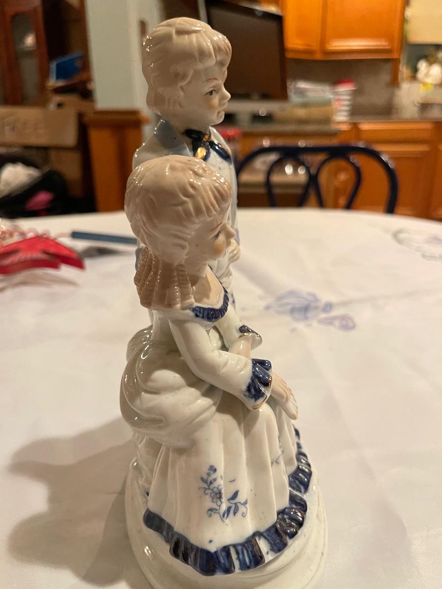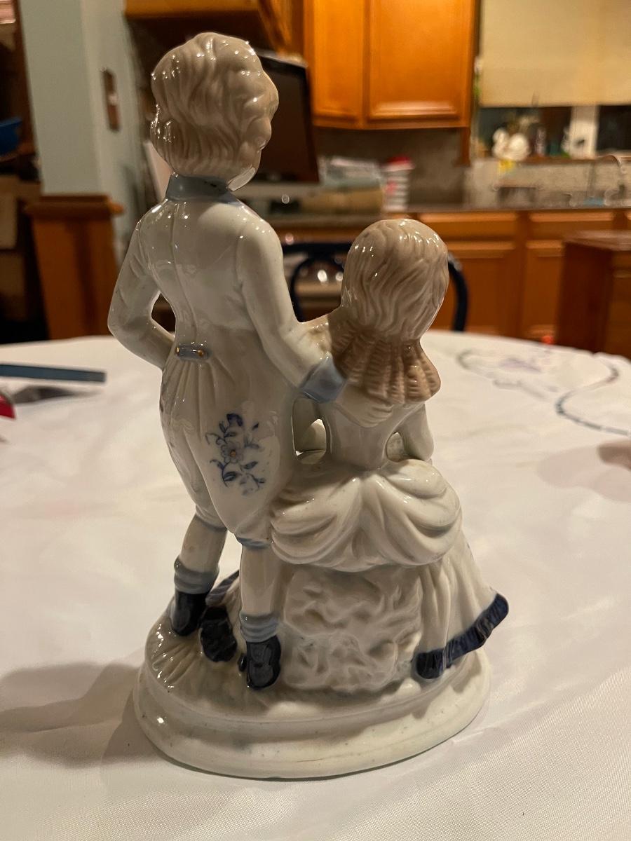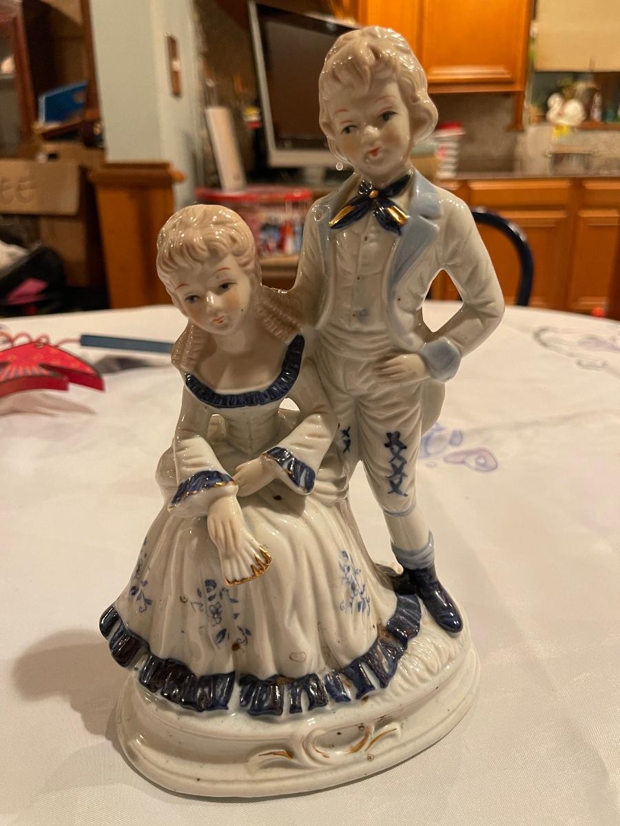 Victorian Style Blue White China Porcelain Figurines - 1960's