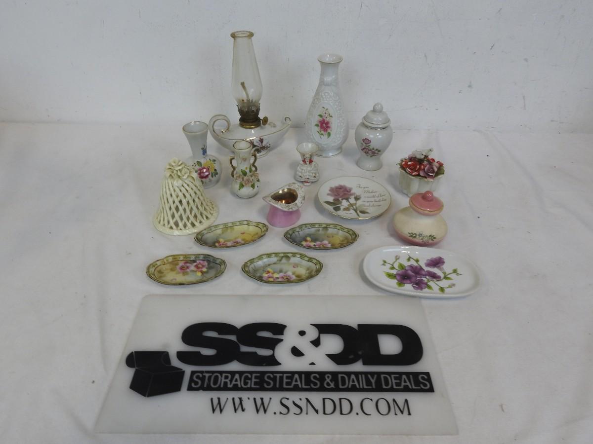Victorian Style Decor: Oil Lamp, Vases, Plates, Bell, Lot Includes Some VINTAGE