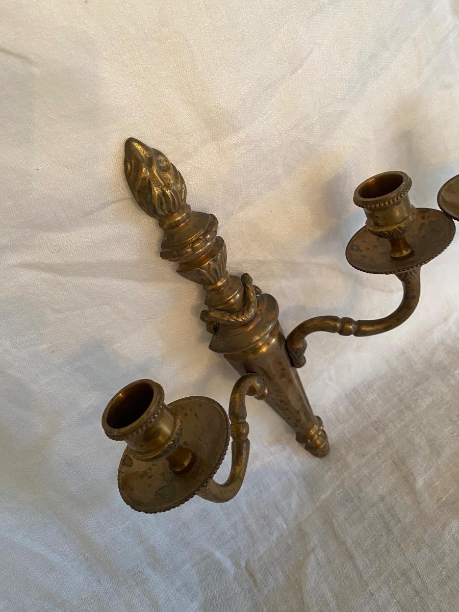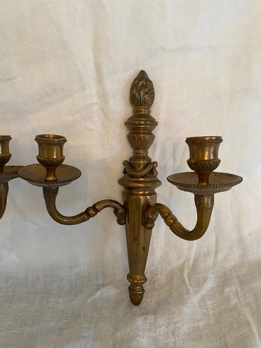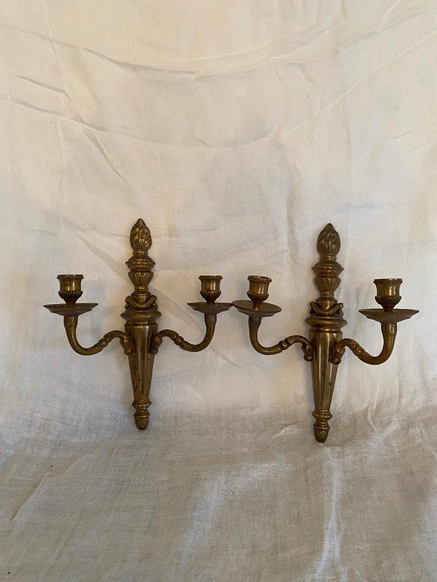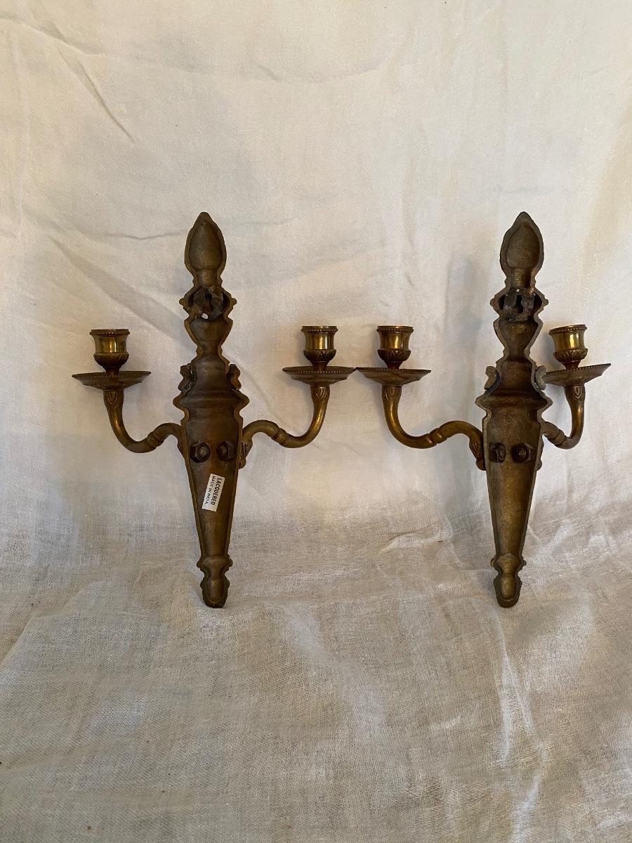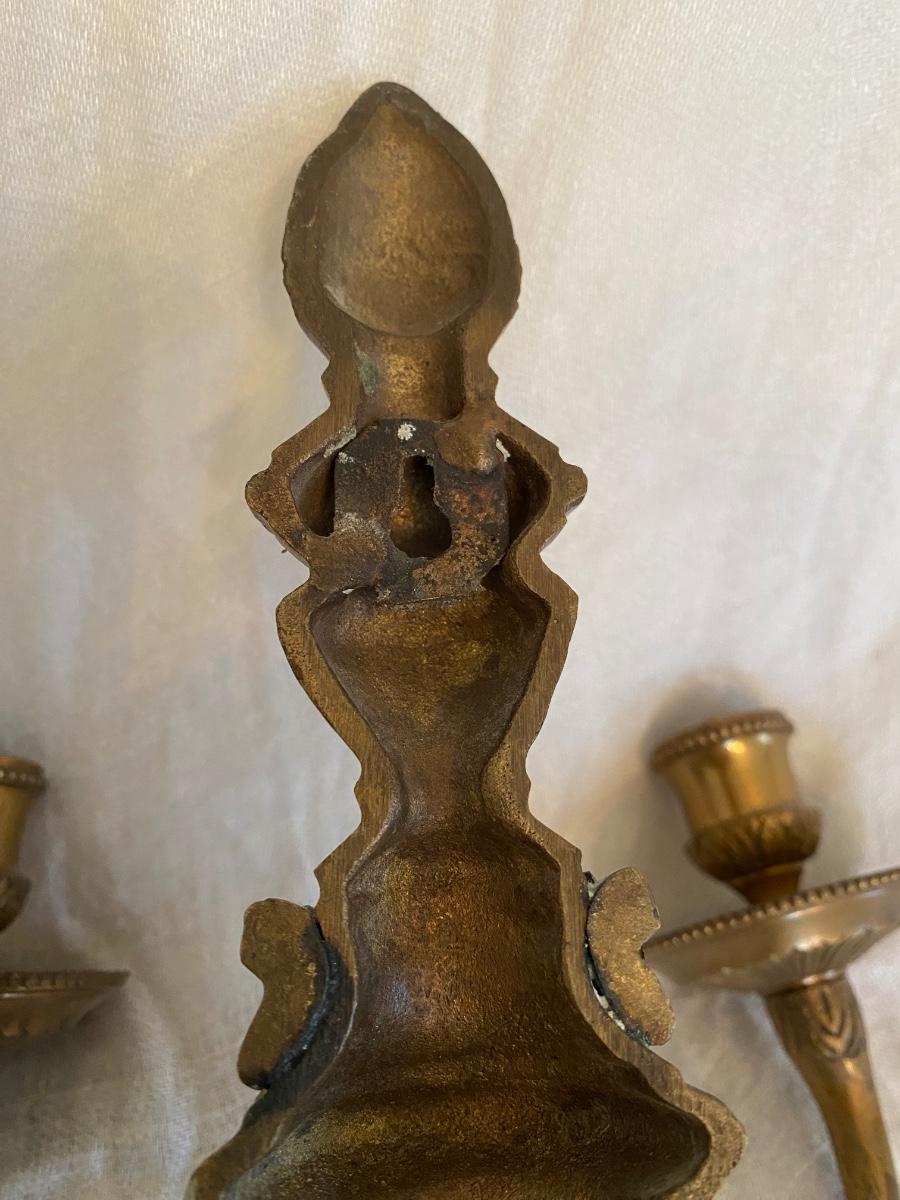 Pair of Victorian Style Double Arm Brass Wall Sconces. 10.5" Hx 8Wx4.