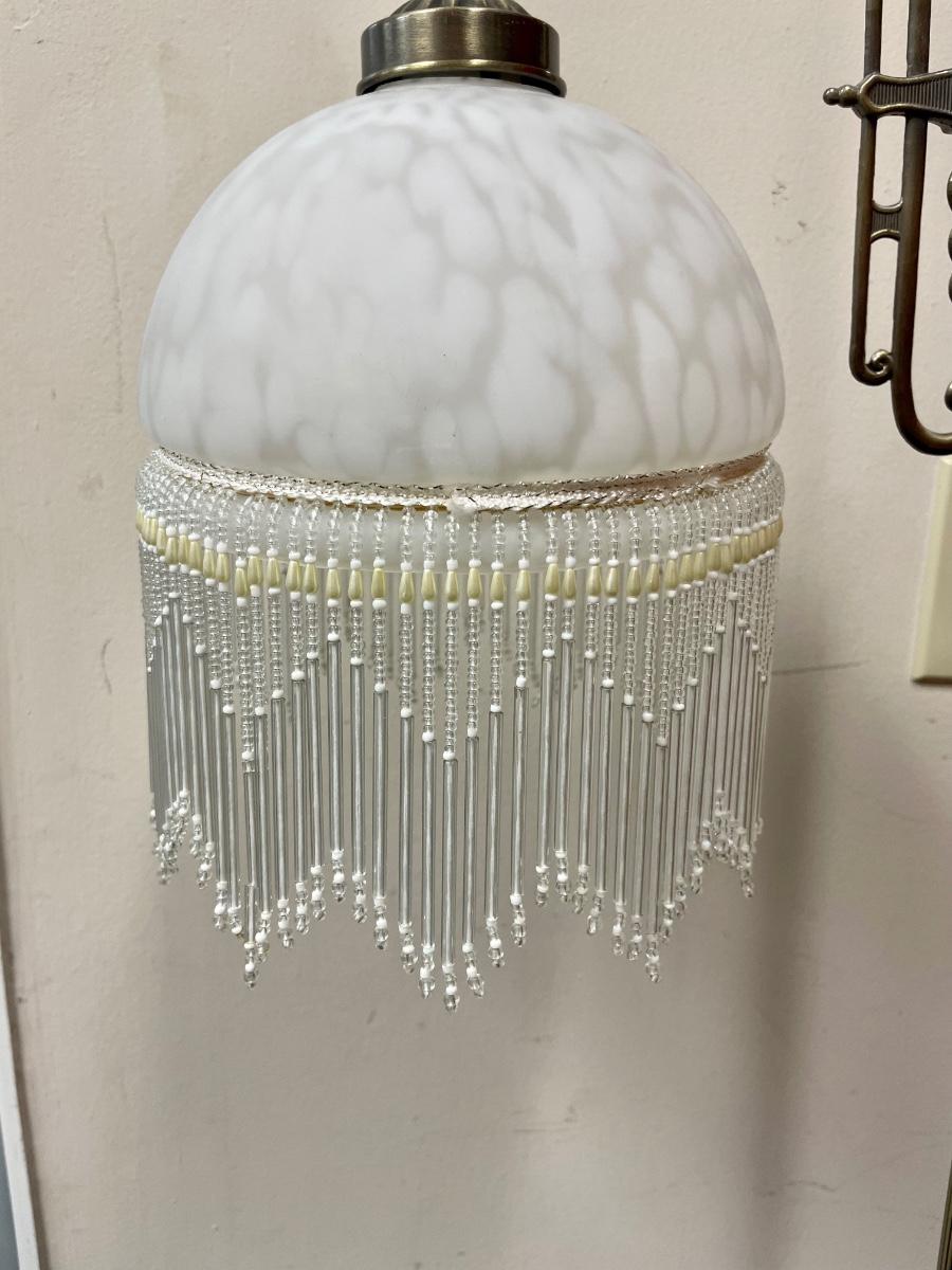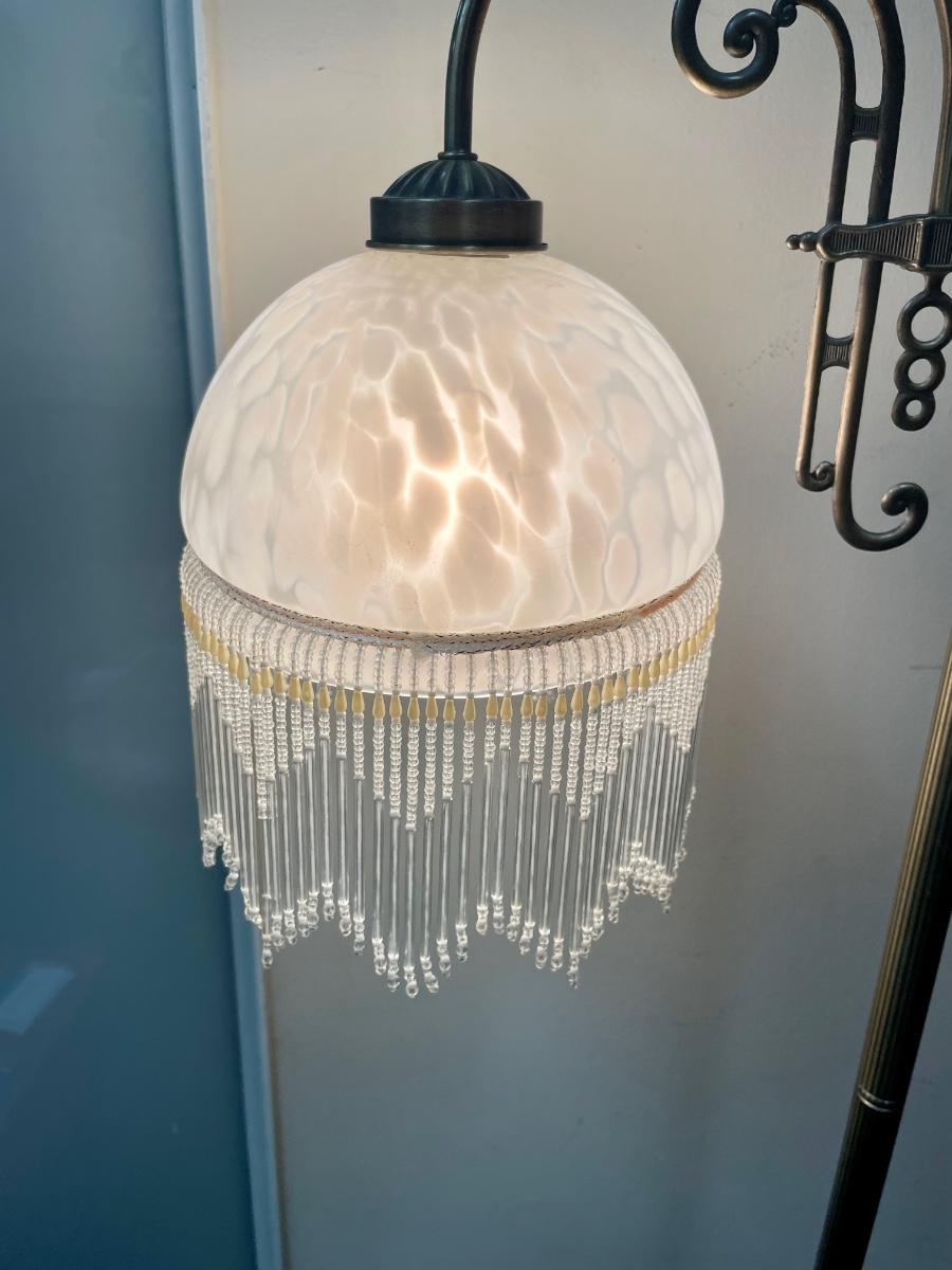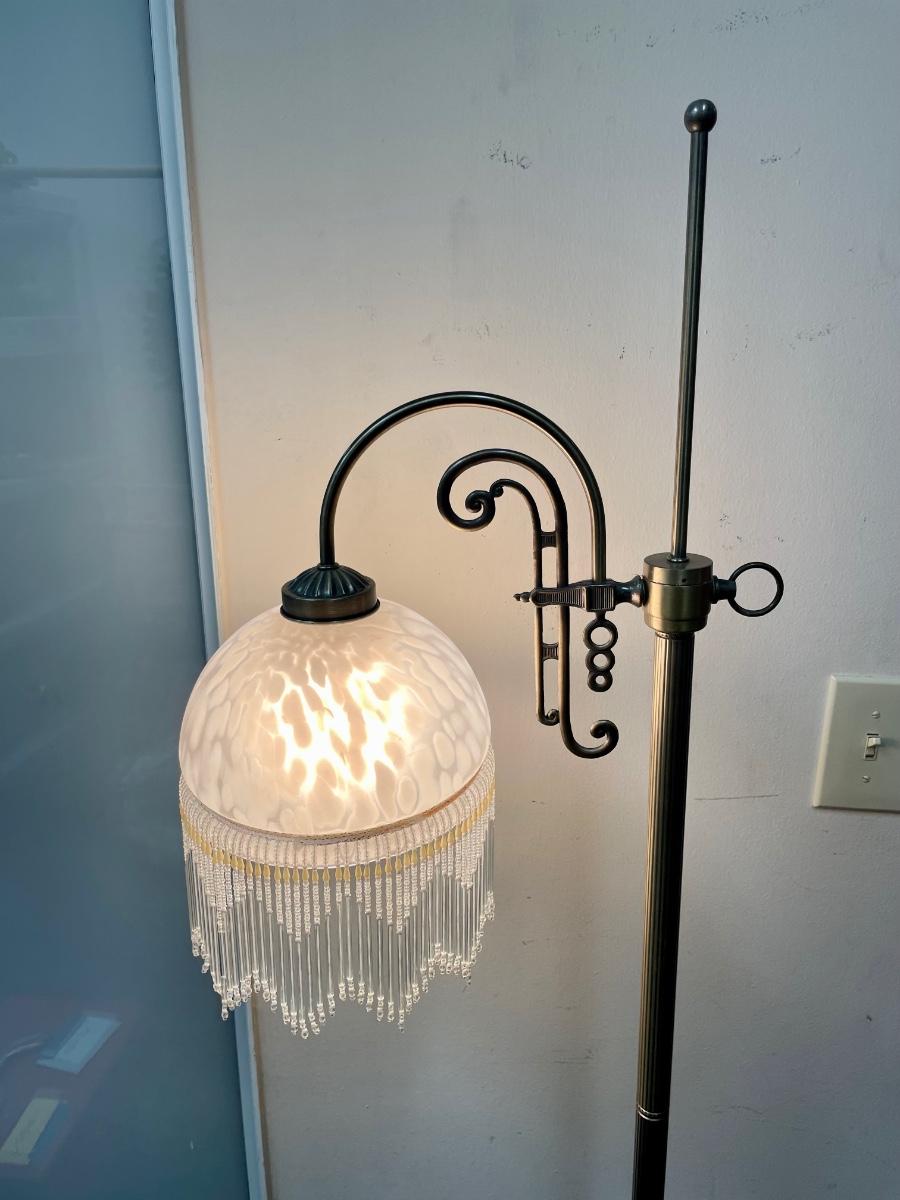 Victorian Art Deco Style Floor Lamp with Beaded Fringe Shade