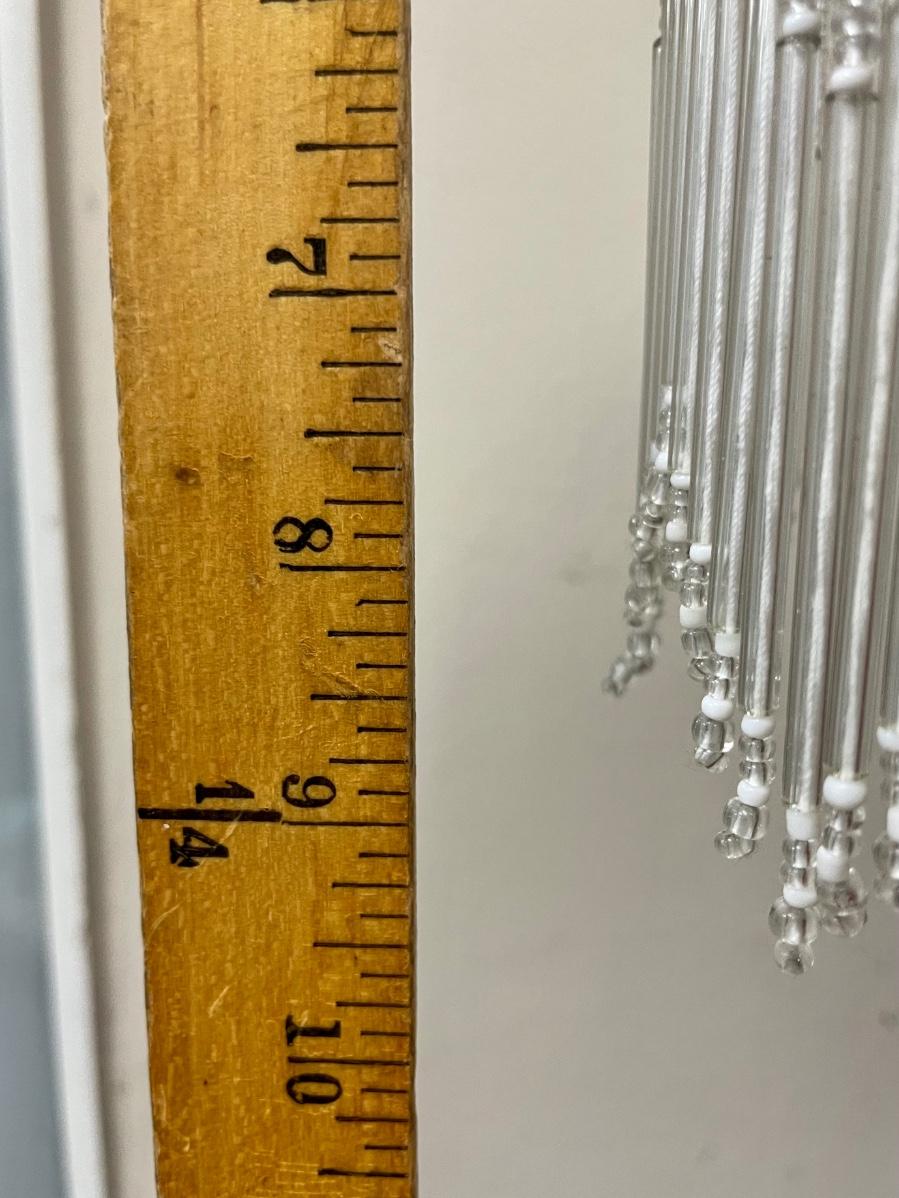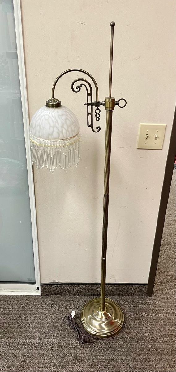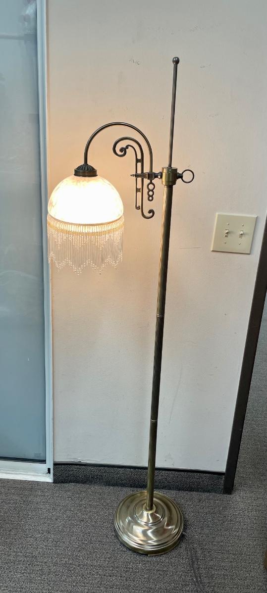 Victorian Art Deco Style Floor Lamp with Beaded Fringe Shade. In good condition. Works. About 4' size.