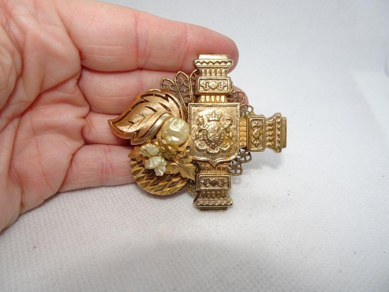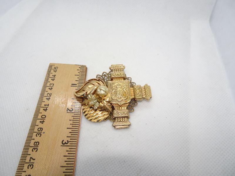 Victorian Style Handmade Cluster Brooch Gold Tone