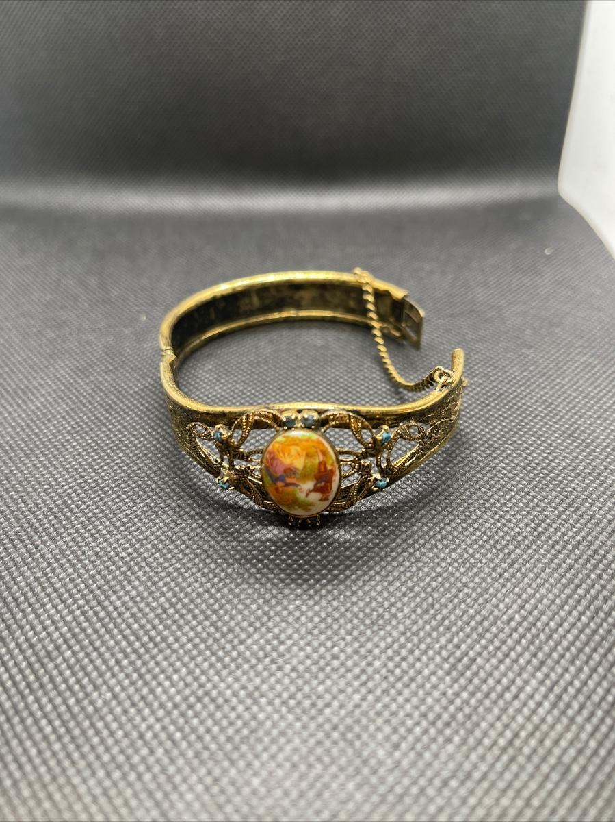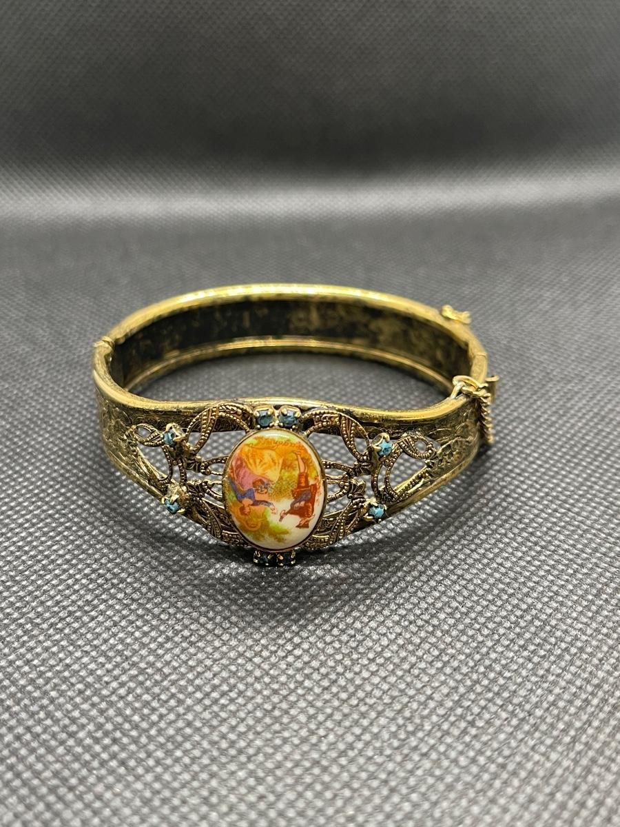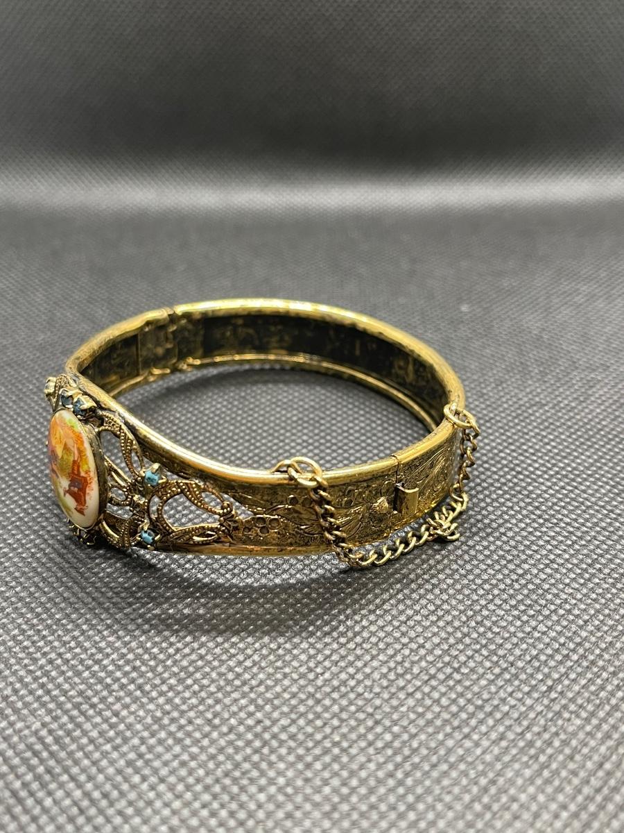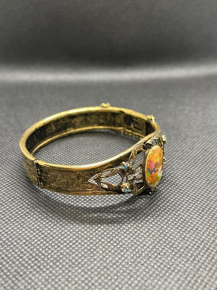 Victorian Style Hinged Goldtone Cuff Bracelet