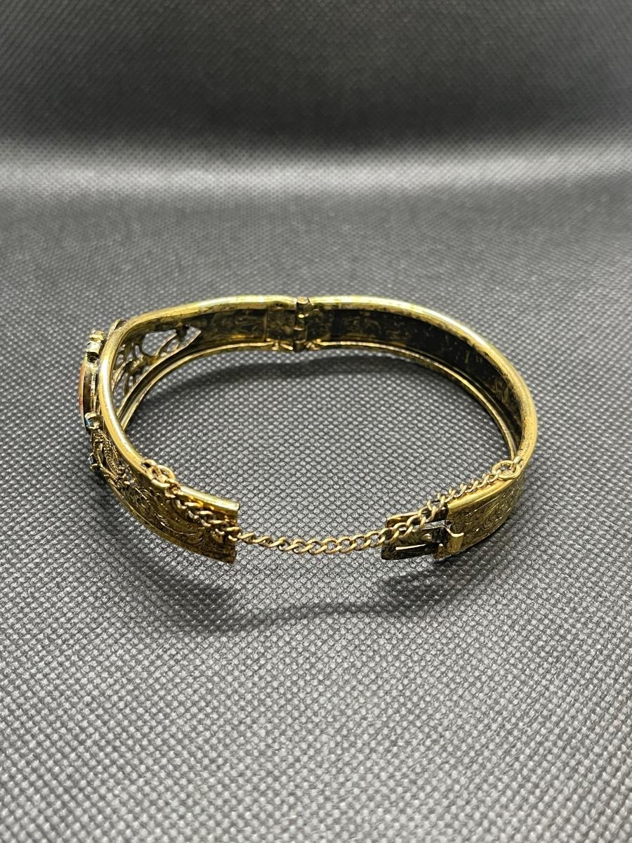 Victorian Style Hinged Goldtone Cuff Bracelet