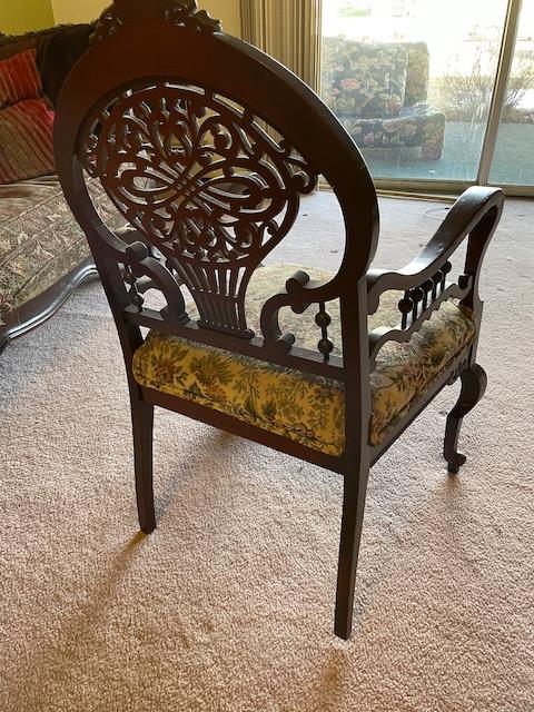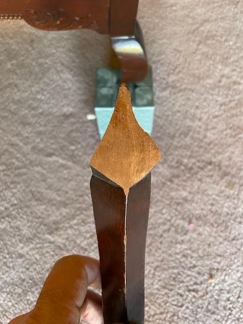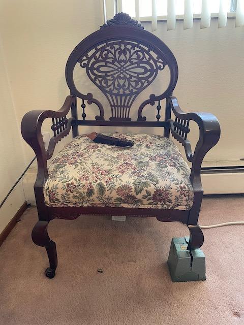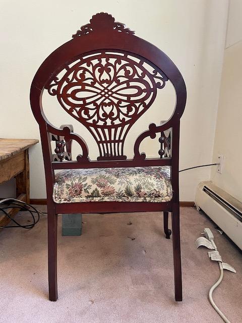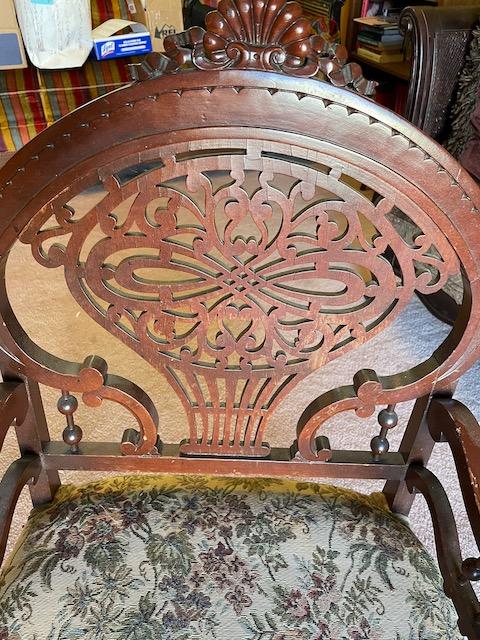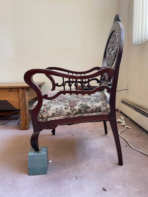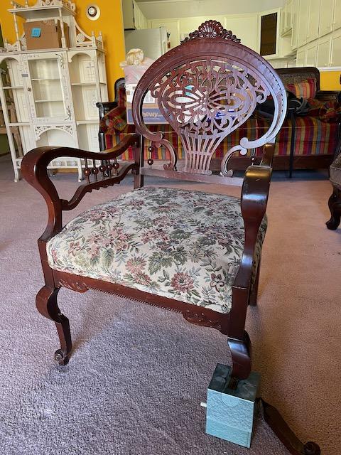 Victorian style Mahogany chair - broken - very clean break - repairable - please see pics one of the leg has been repaired 37 inches high 20.5 wide and 20 inches deep