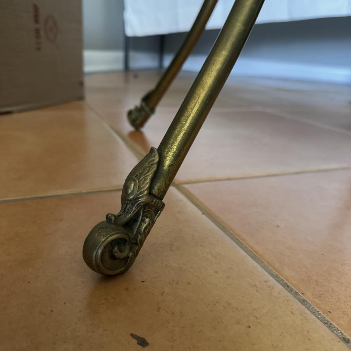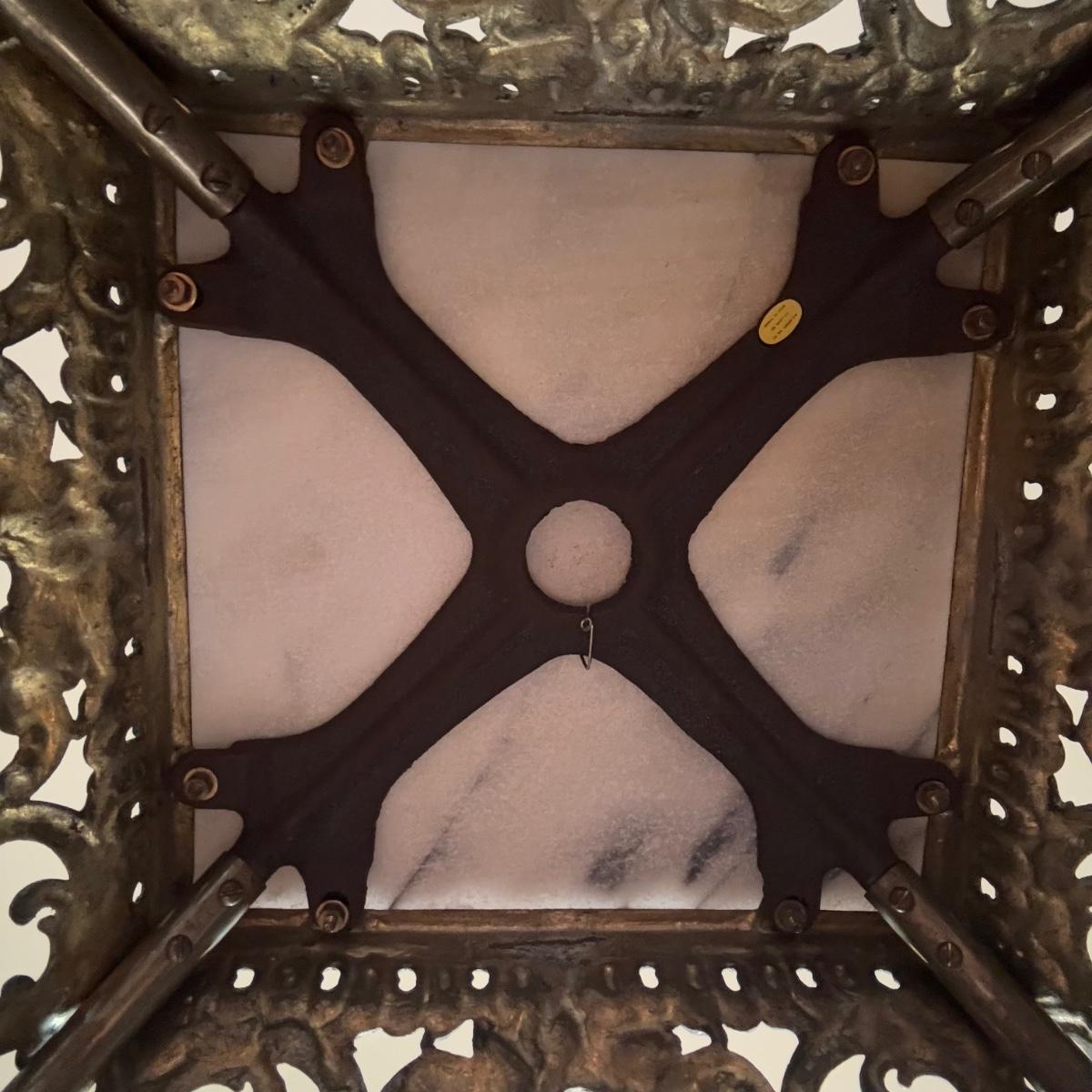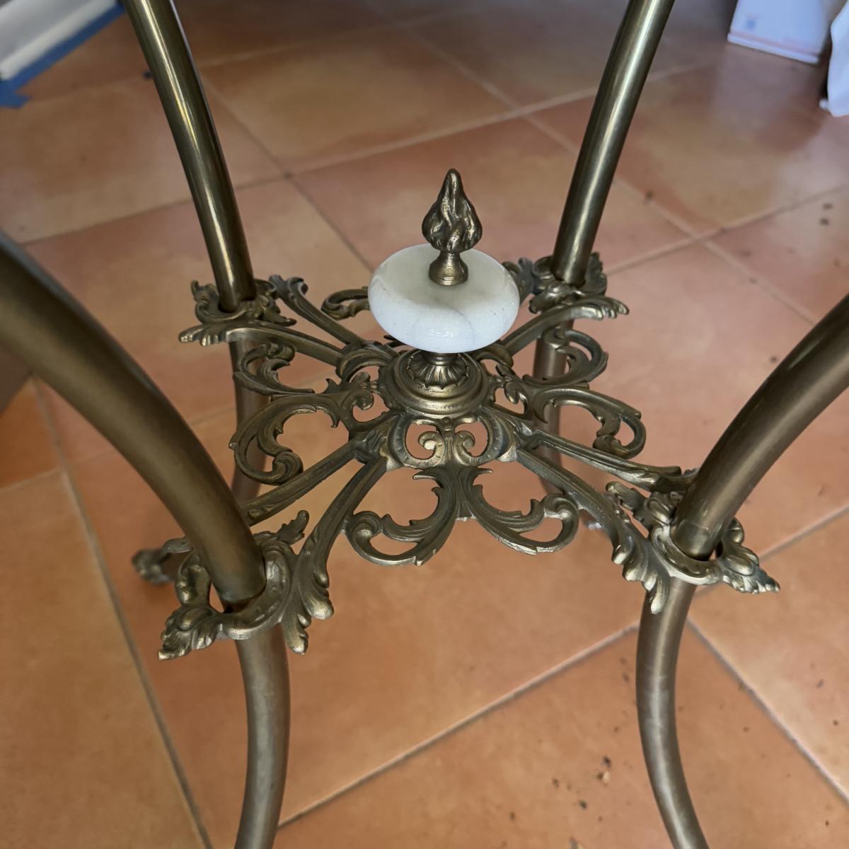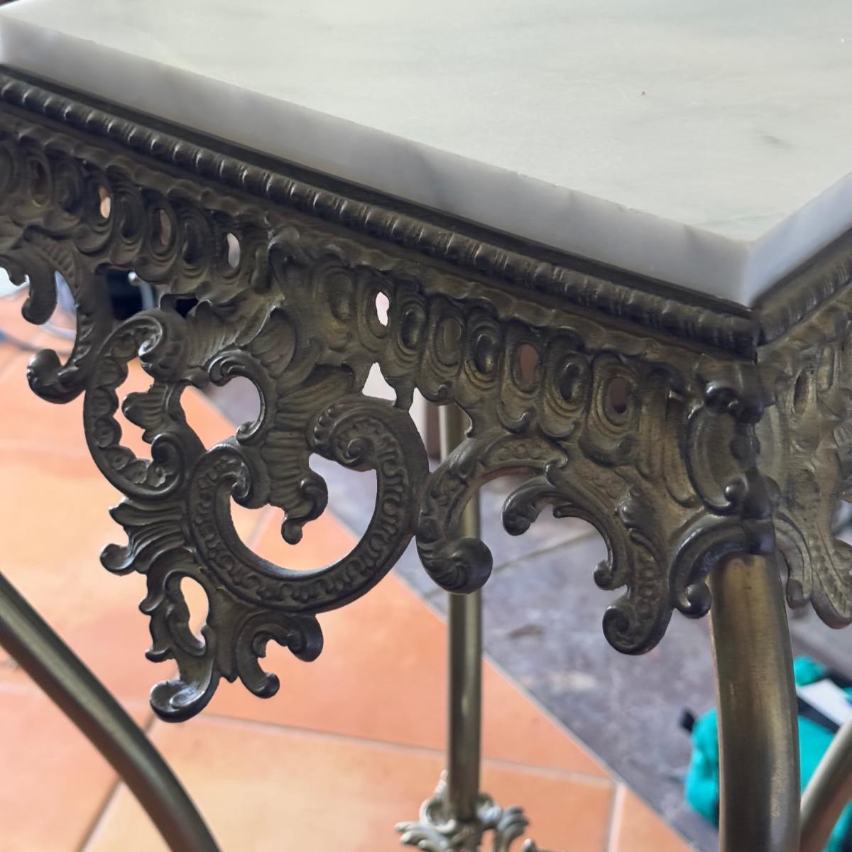 Lot includes one Victorian style metal pedestal table with a marble top. This table has a lovely design with intricate detail. The table measures 15” x 15” x 35”H. Local pickup only.