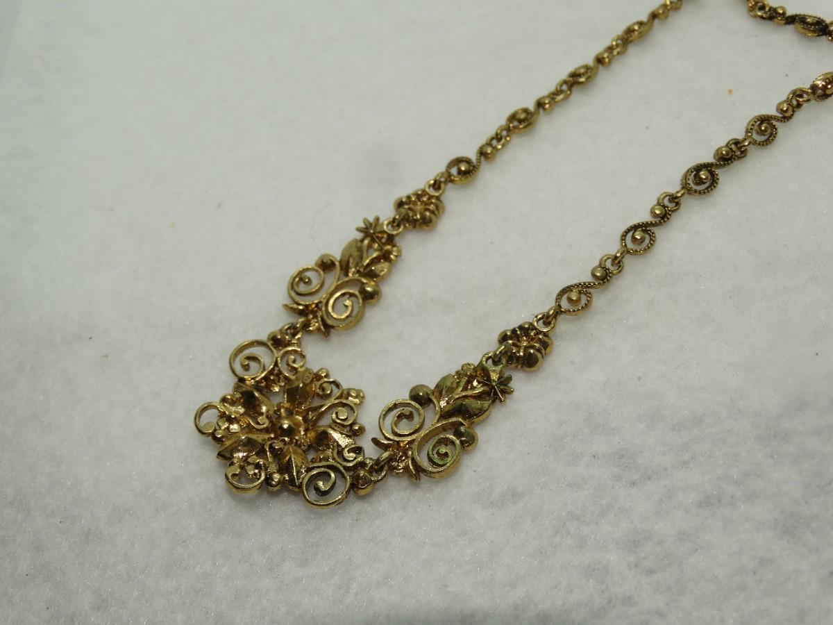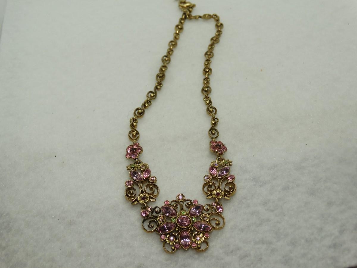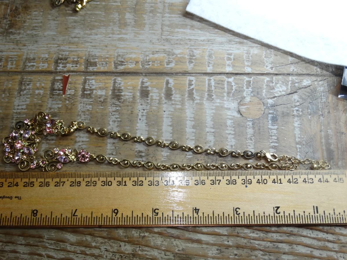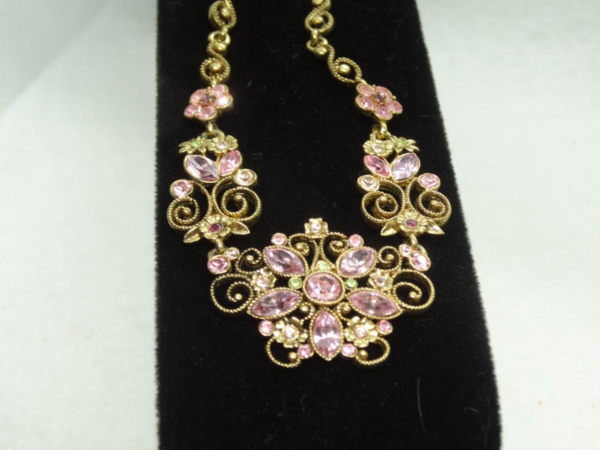 Victorian Style Pink Rhinestone Flower Pendant Necklace, Dainty!