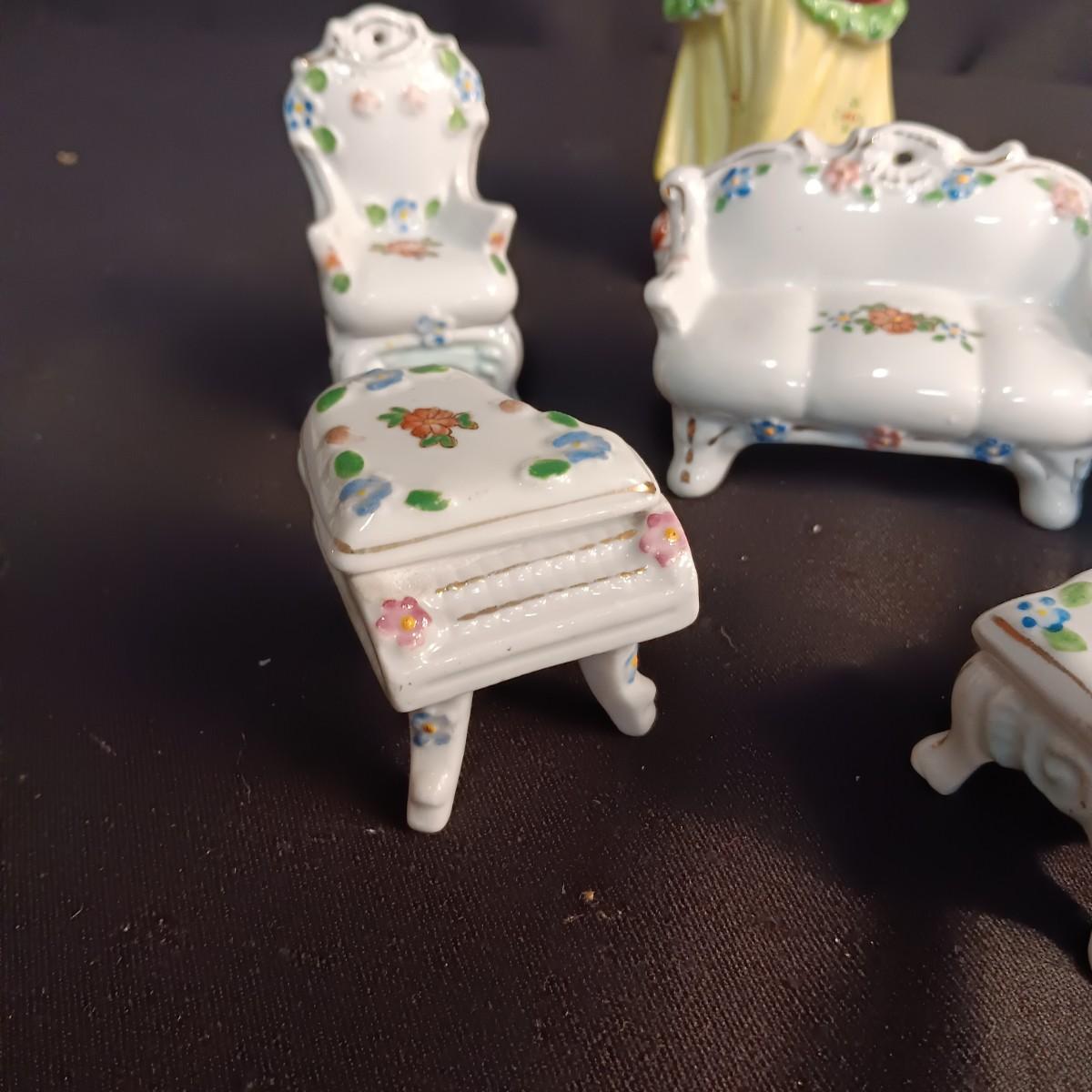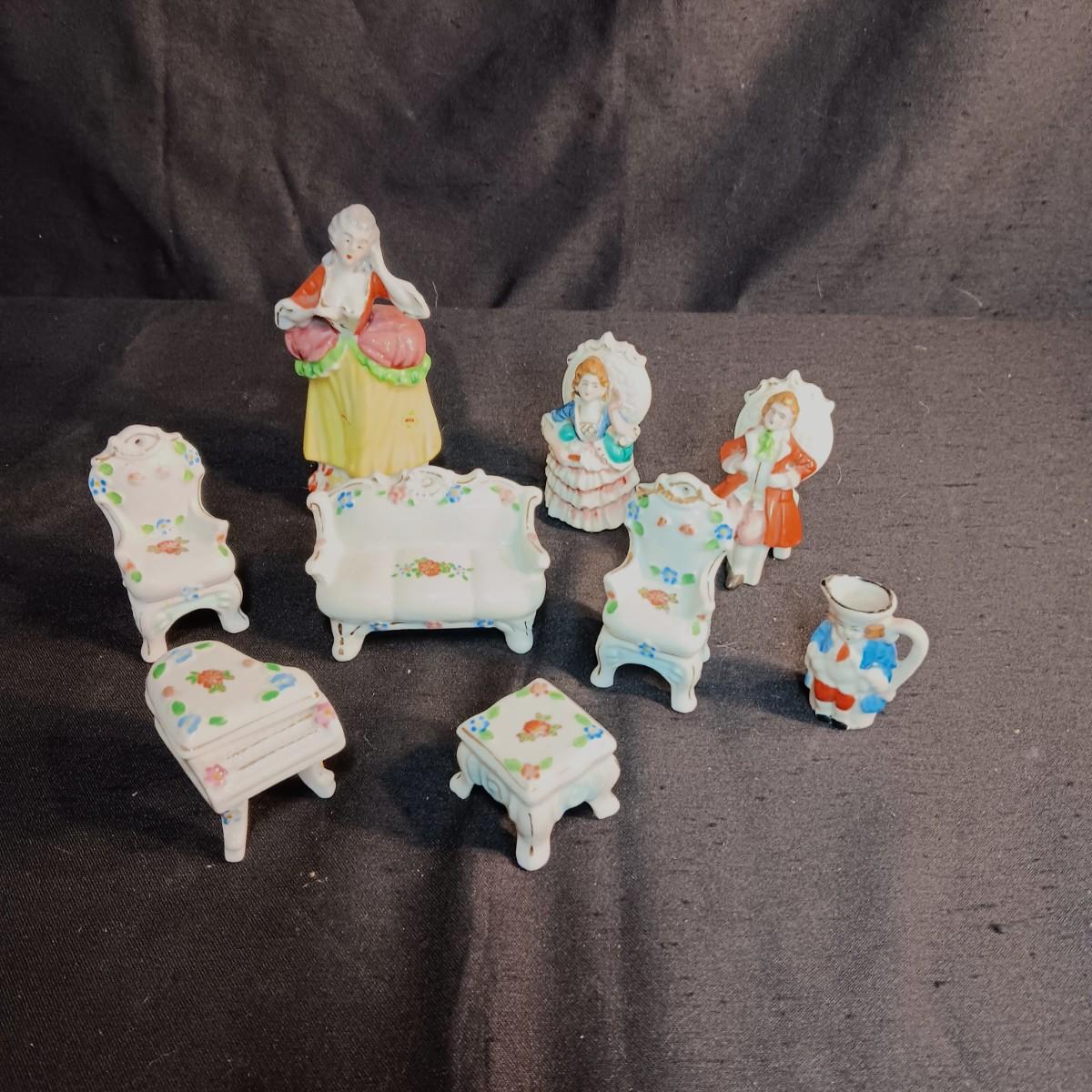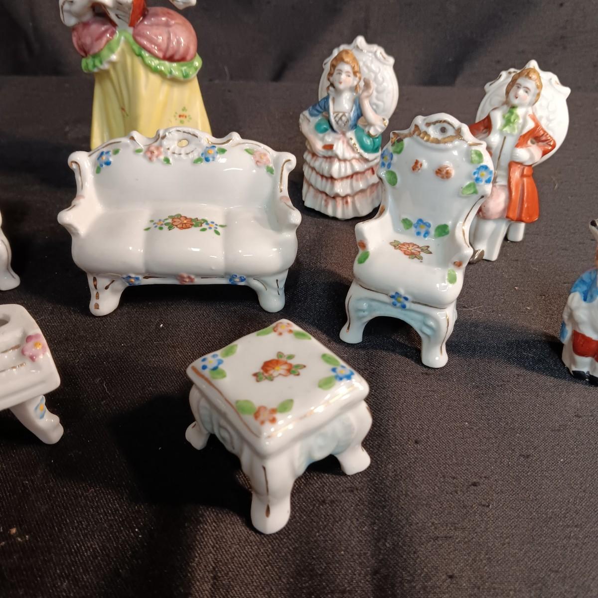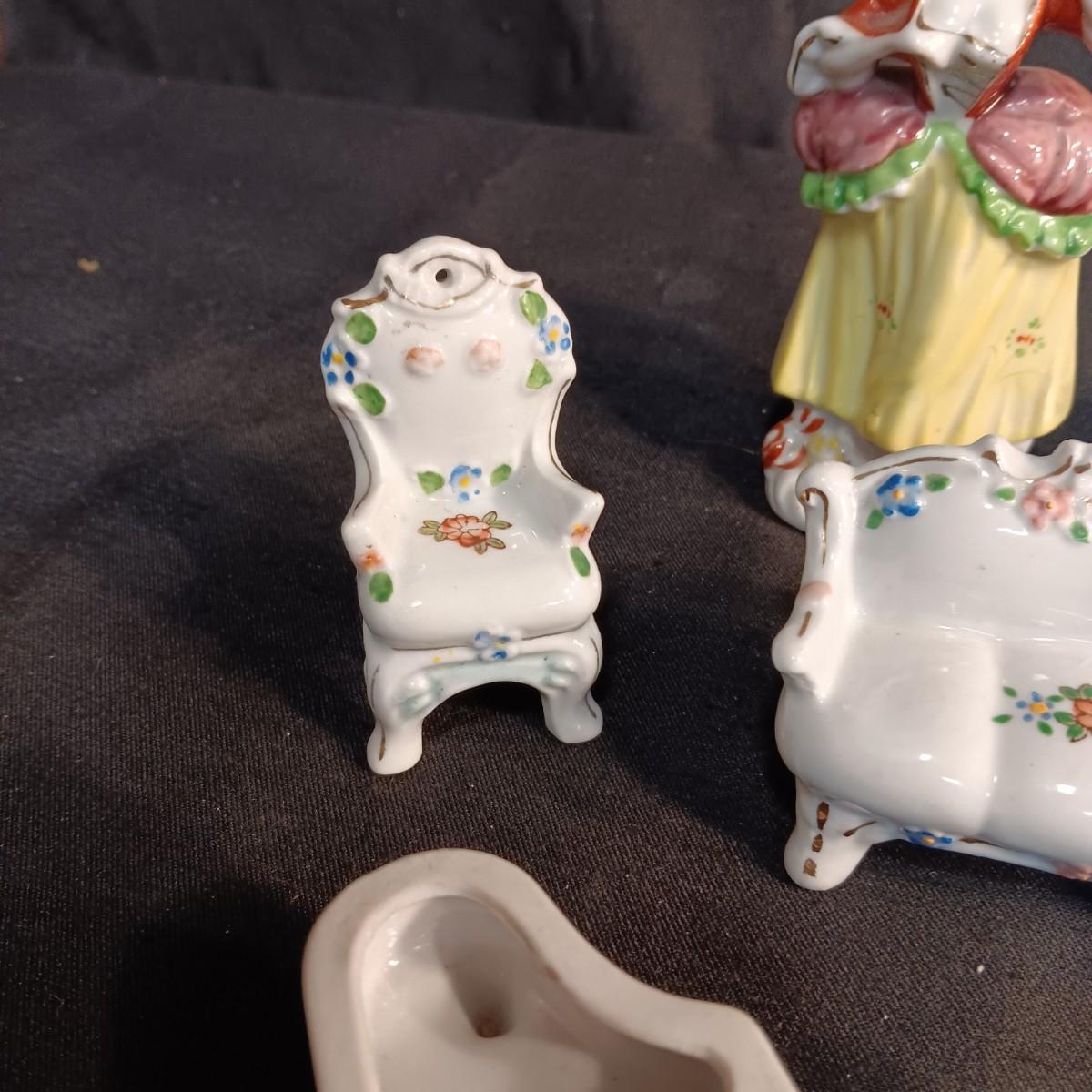VICTORIAN STYLE PORCELAIN FURNITURE AND FIGURINES