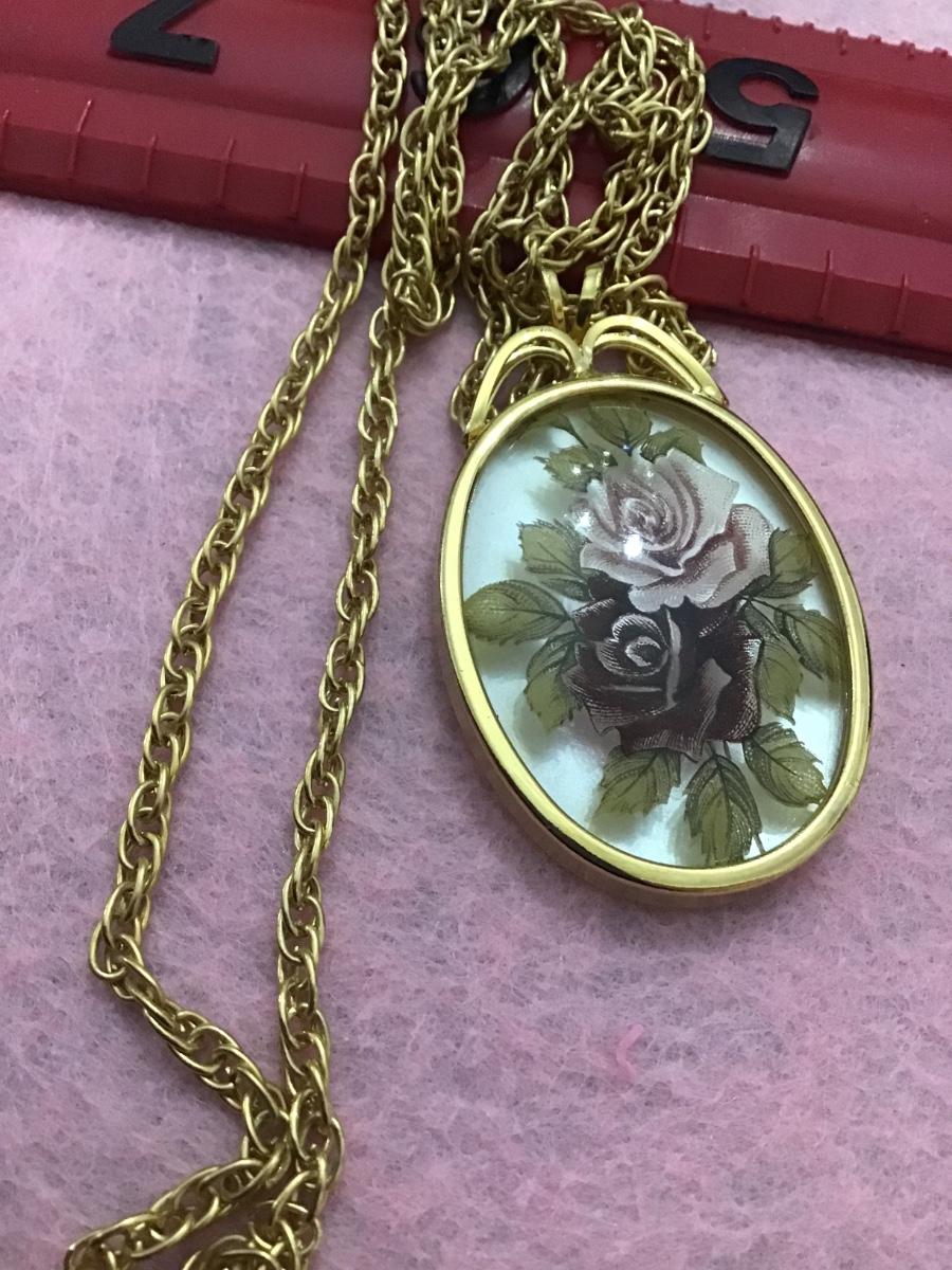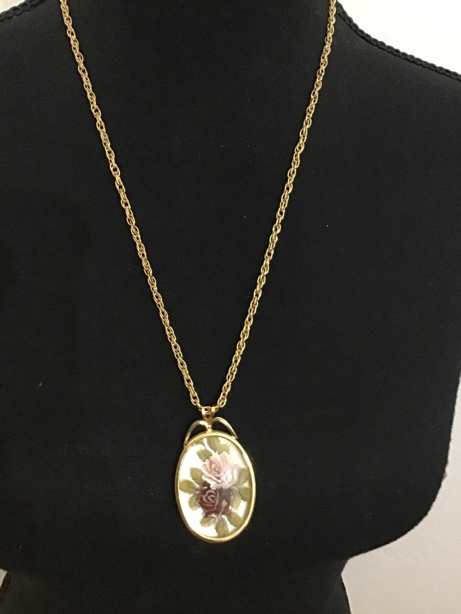 Victorian Style Roses Pendant with Gold Chain