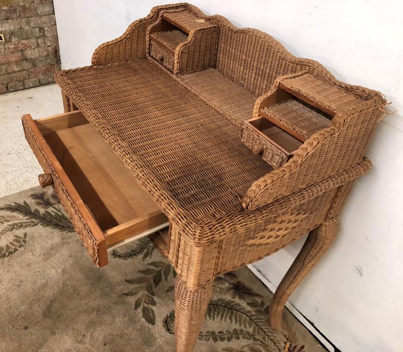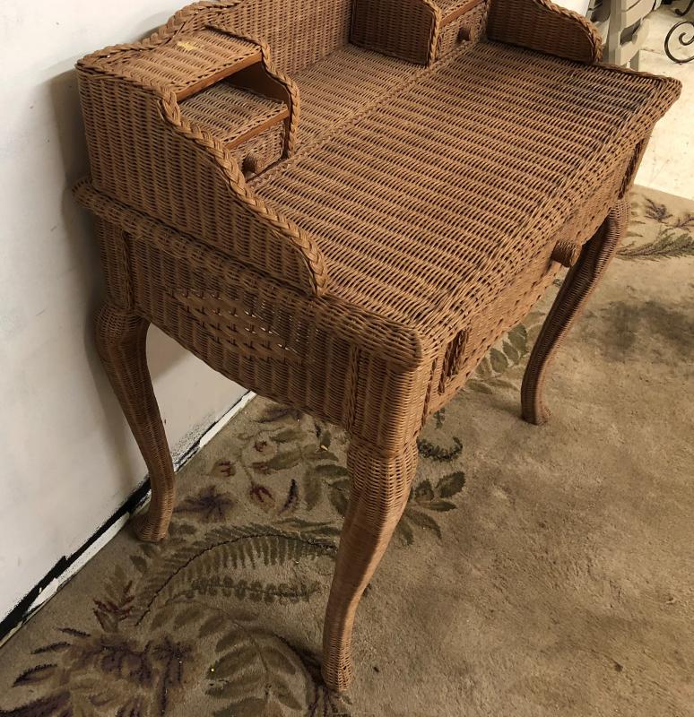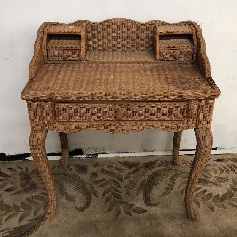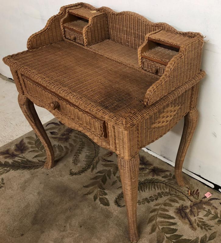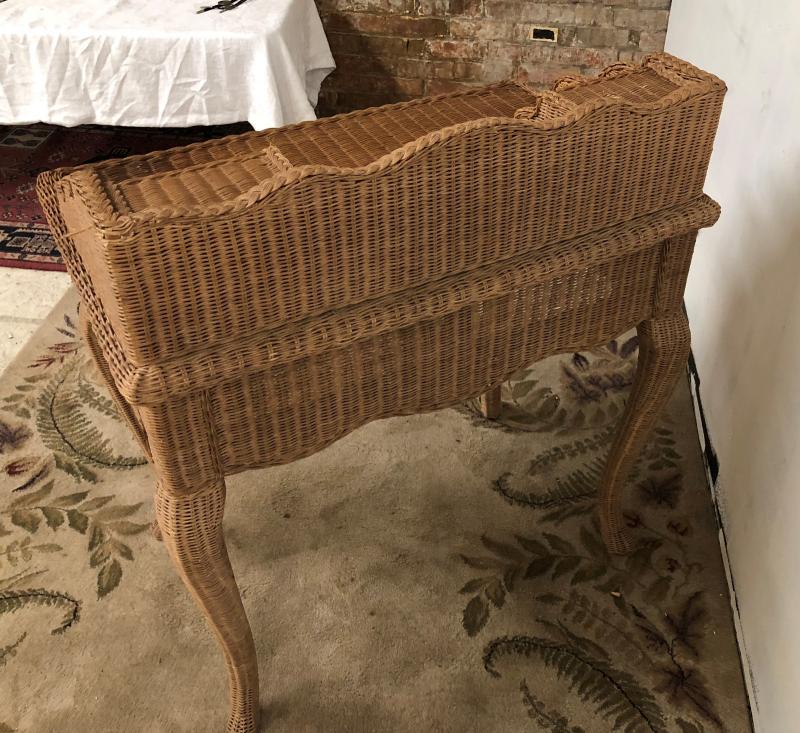 Here is a vintage Victorian style wicker desk...some use wear and soiling...easily painted...