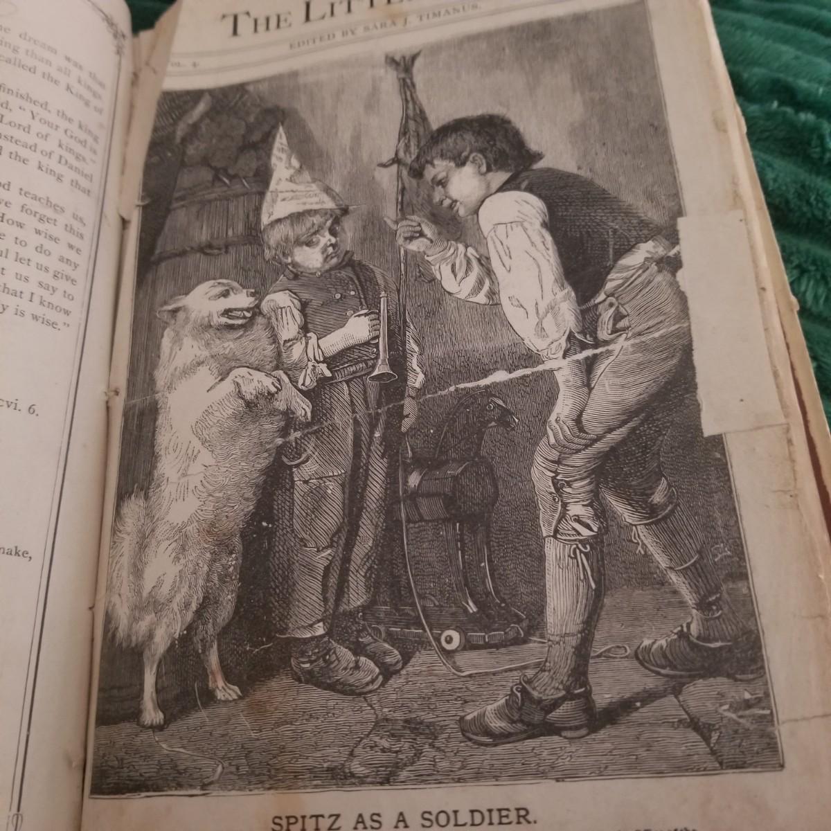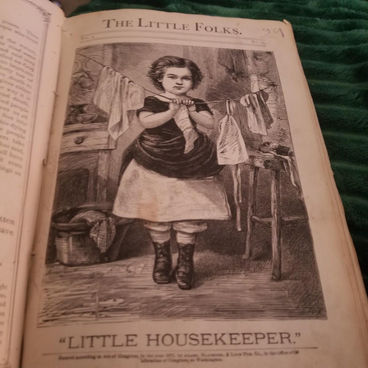 Charming book in fragile condition with great elaborate prints .Printed in 1871 in Chicago Included are items that were found in book pressed leaves letter mewspaper clippi g etc I never am in favor of taking a book apart but these prints are amazing