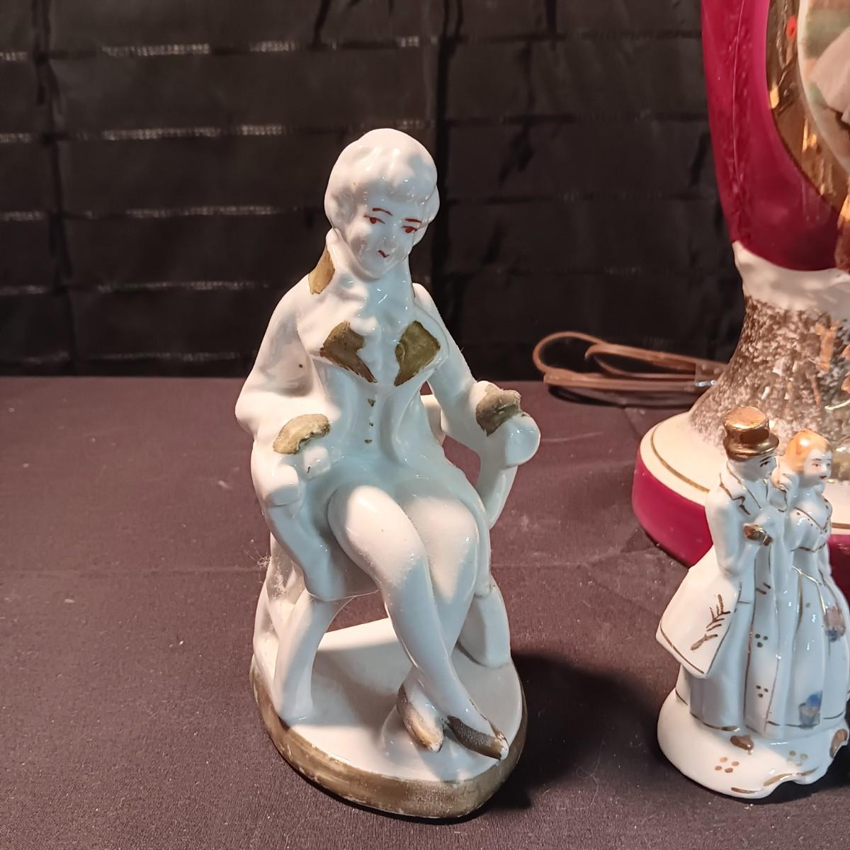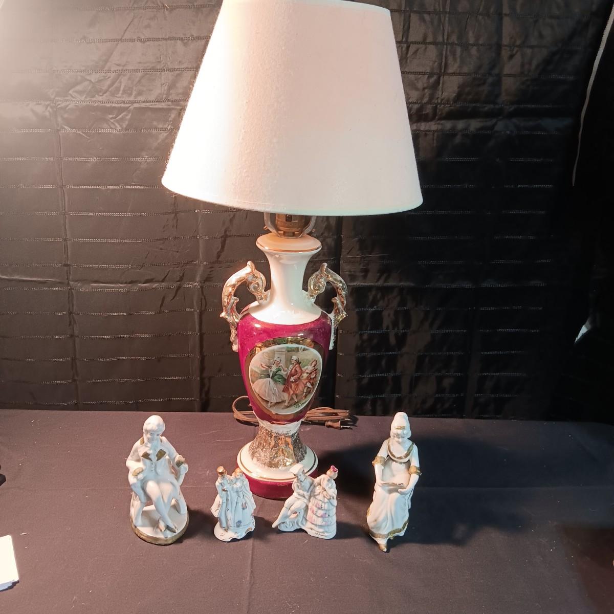 VICTORIAN THEMED LAMP AND FIGURINES