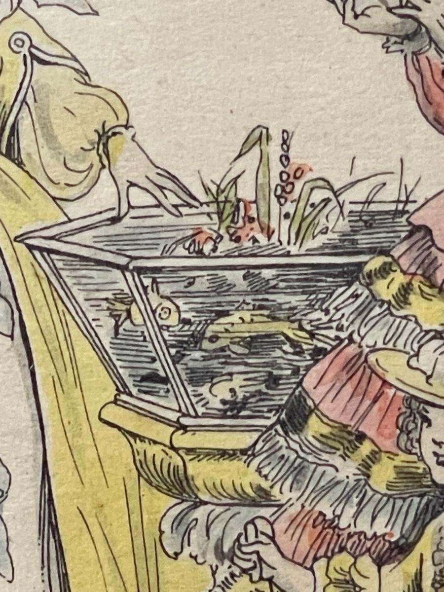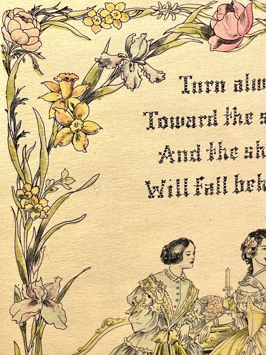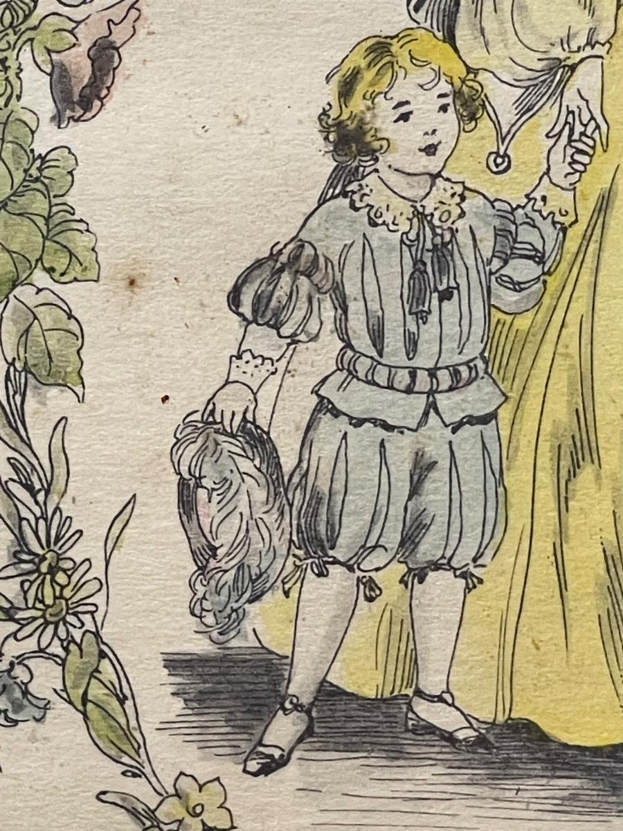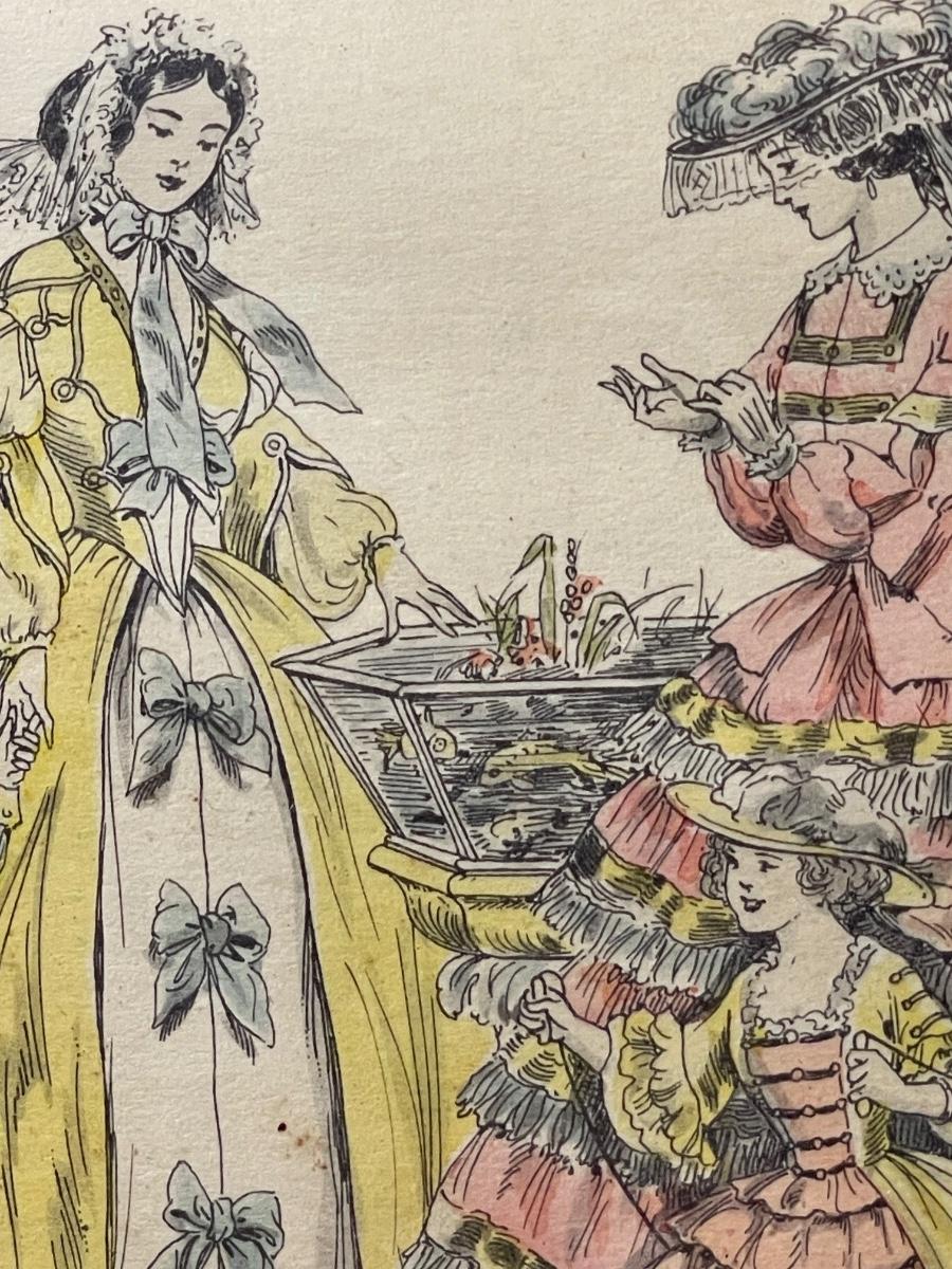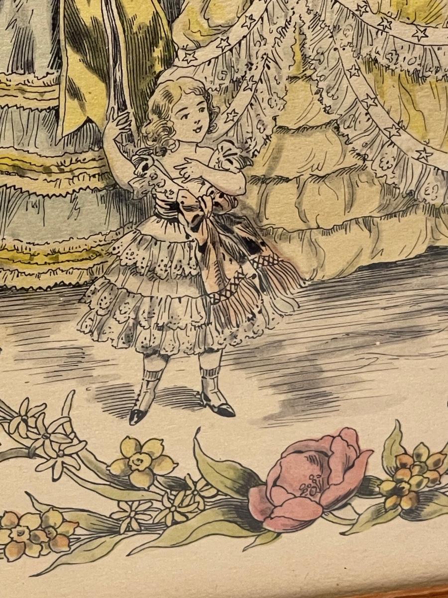 These look to be pages from a book as 1 is marked p3 and the other p4 as pictured. There is much going on in these pictures. Take a look at the detail. Definitely from another time. Frames are wood. Backing is coming apart on both frames so one may need to remedy. They would hang fine as is. They’re really pretty!! Would make a great addition to a powder room, vanity area or sunroom. Dirt and signs of age are apparent and present on all vintage items.