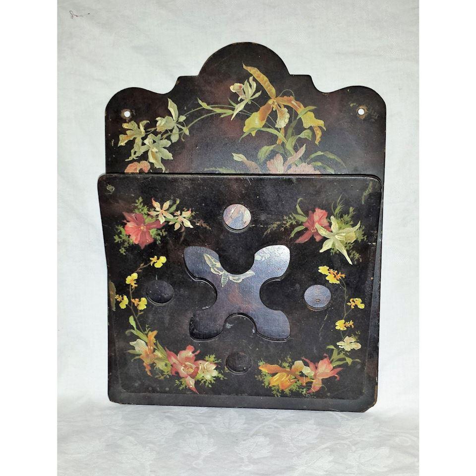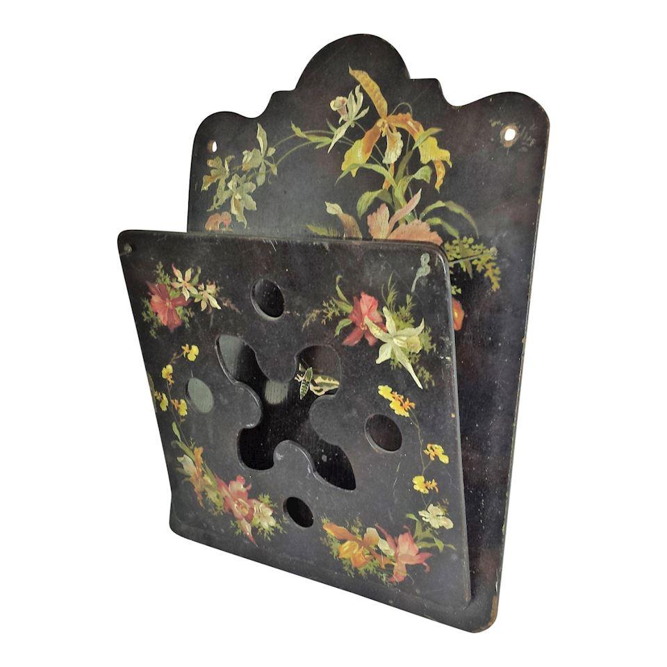 Victorian Tole Painted Papier Mache Wall Mounted Letter Holder