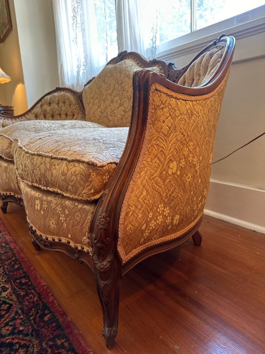 Victorian Tufted Brocade Settee (See Details)