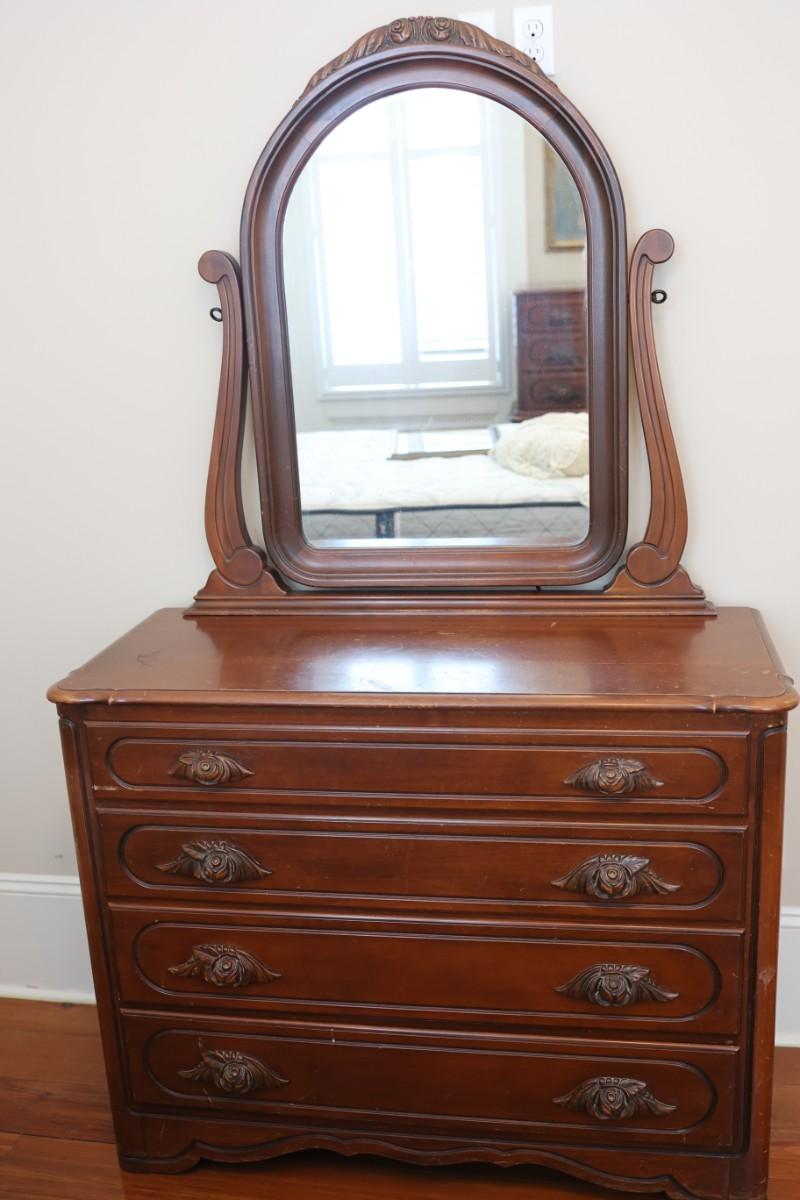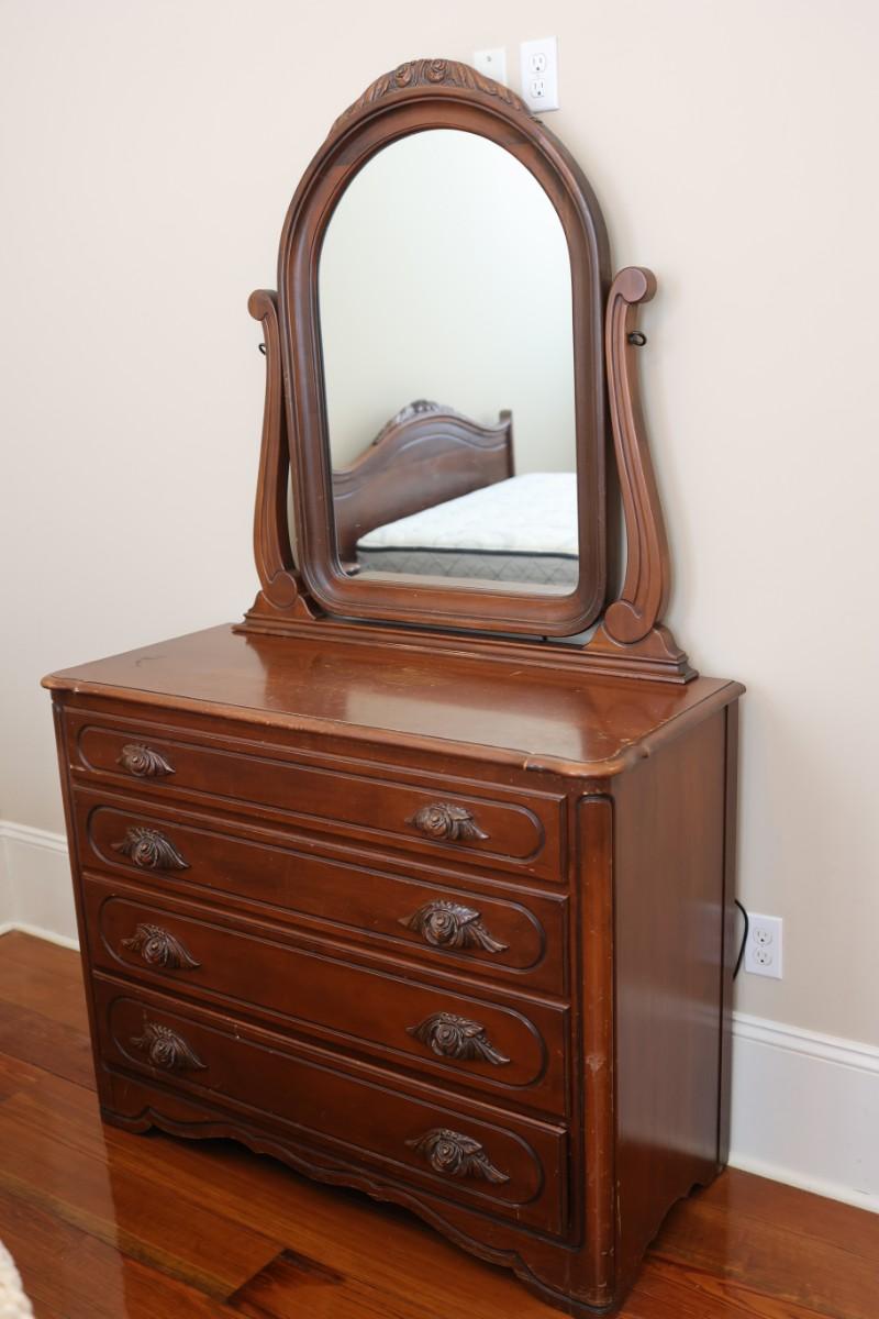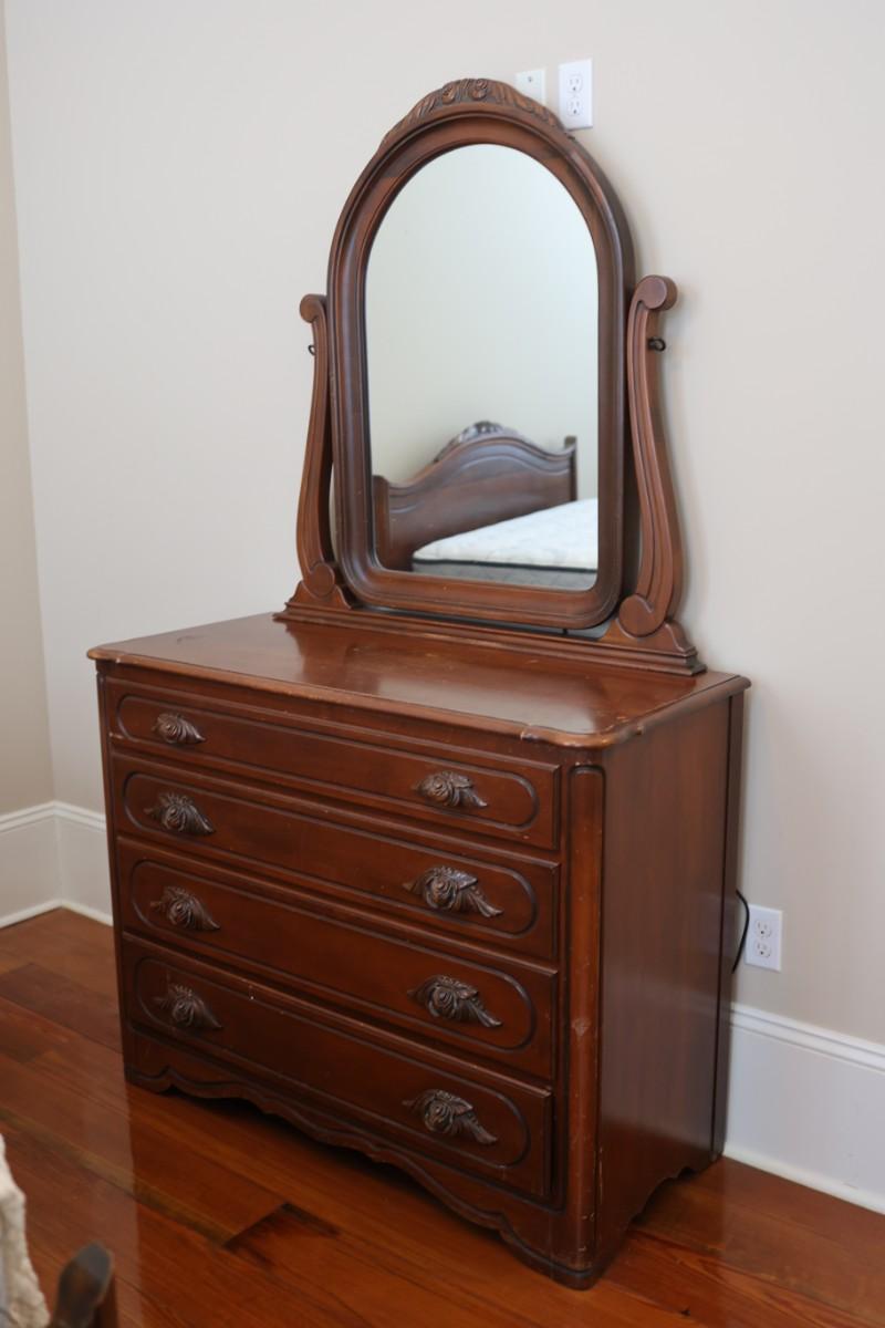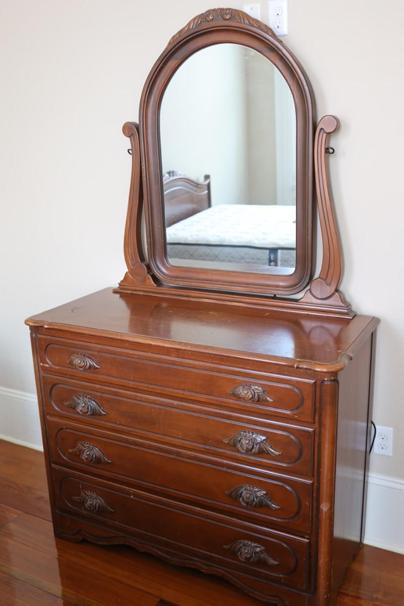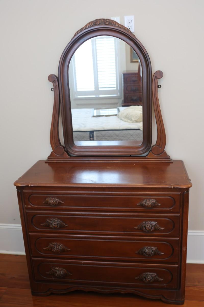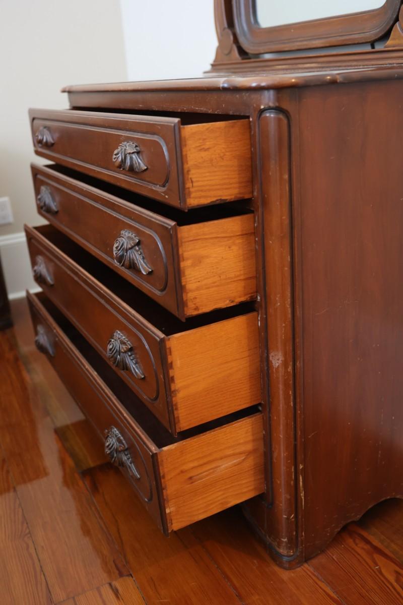 Victorian Walnut Solid Mirrored Dresser by Continental Furniture