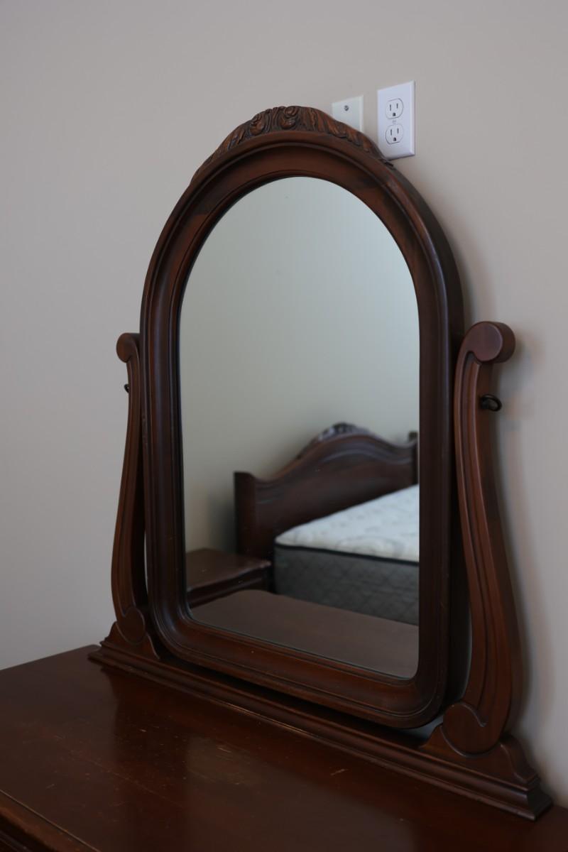 Beautiful set! Matching dresser with mirror, bed frame and nightstand in auction.