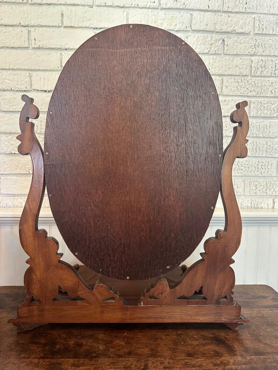Victorian-Style Tabletop Dresser Mirror with Carved Wood Base and Trinket Wells