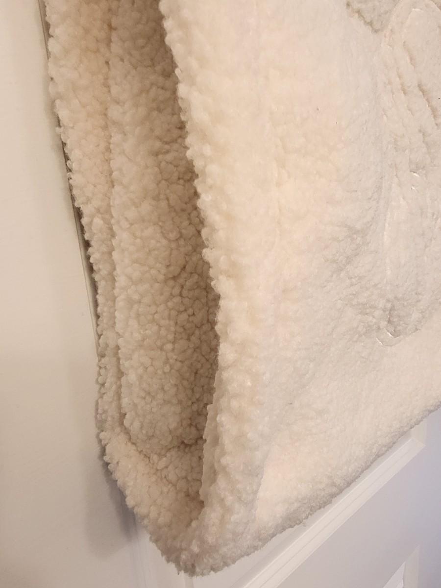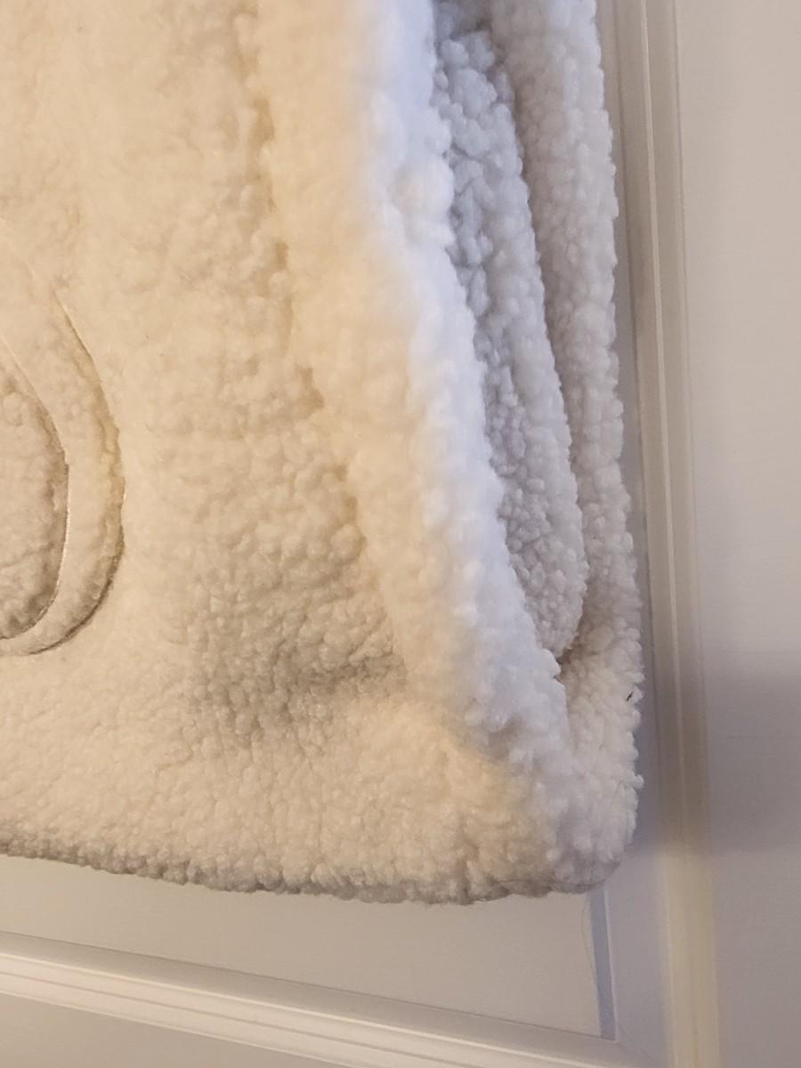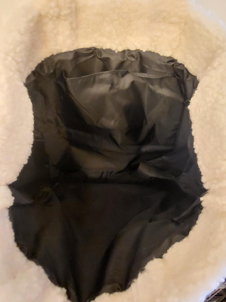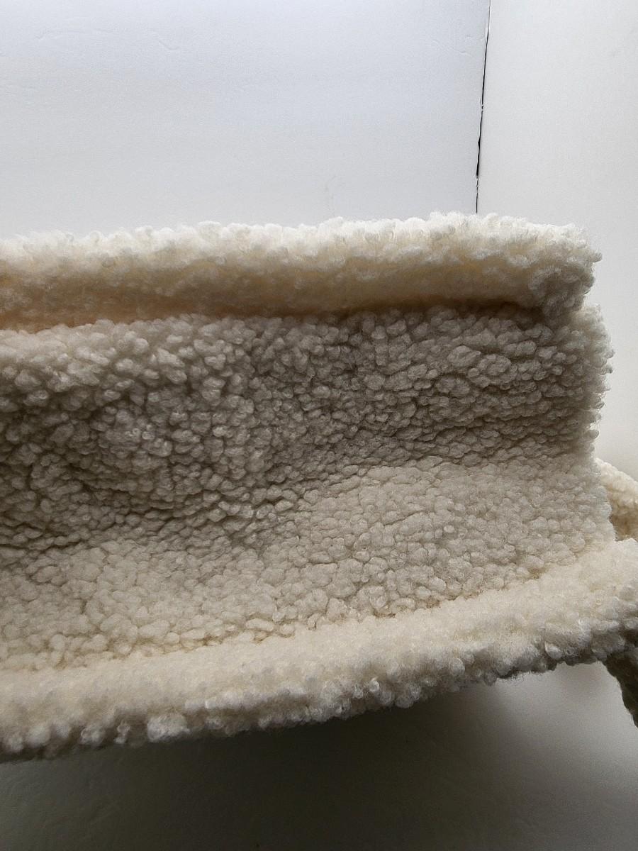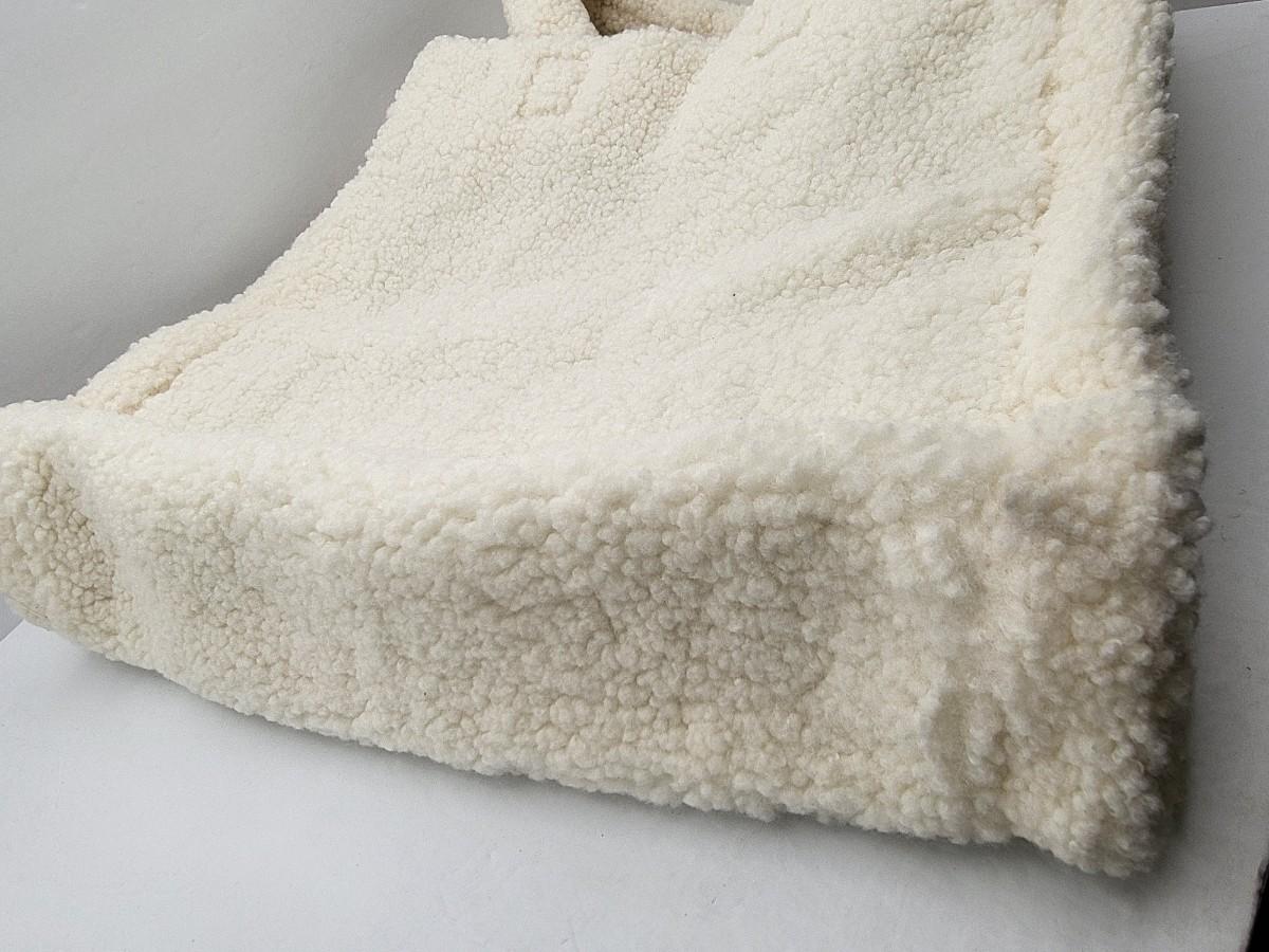Victoria's Secret sherpa tote with nylon lined interior. Measures 17" wide x 13" tall x 4" deep. Double straps 7.5" length. Single interior compartment & pocket. Like-new condition.
