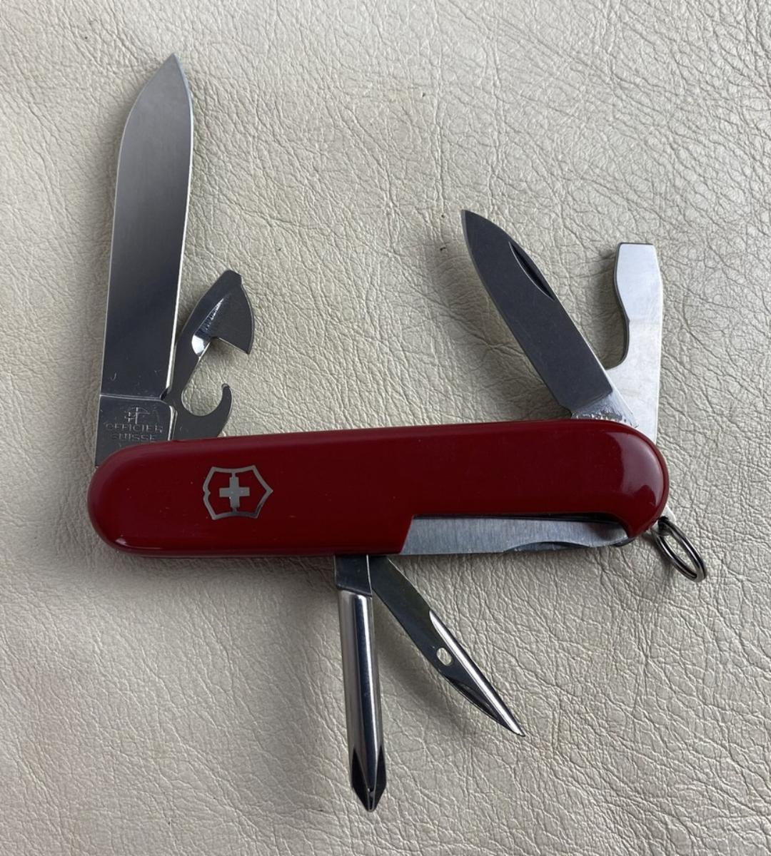 Virtually new condition on this Victorinox Swiss Army Officer knife advertising Ad-Centives West...a promotional products supplier...This Medium Pocket knife with Phillips Screwdriver...Basicly the Tinker model without tweezers and toothpick...as shown...3.6 inches closed.
