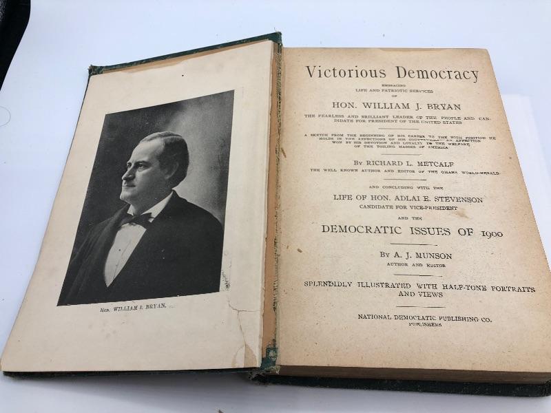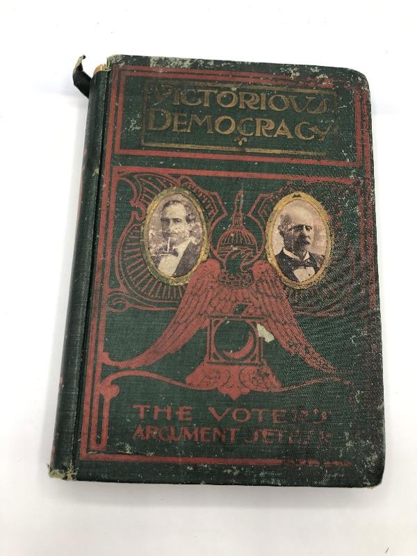 Turn of the Century hardback book "Victorious Democracy The Voter's Argument Settler Book". Does have some signs of age and wear.