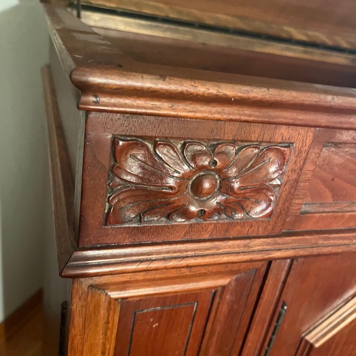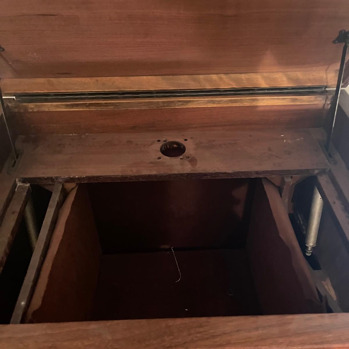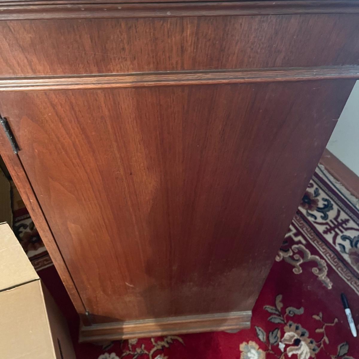 Lot includes a Victrola Credenza that is missing all the Victrola parts. Piece is solid. It has some scratches and nicks, see pictures. Credenza measures 22” x 32” x 46”. Bring help item is substantial.