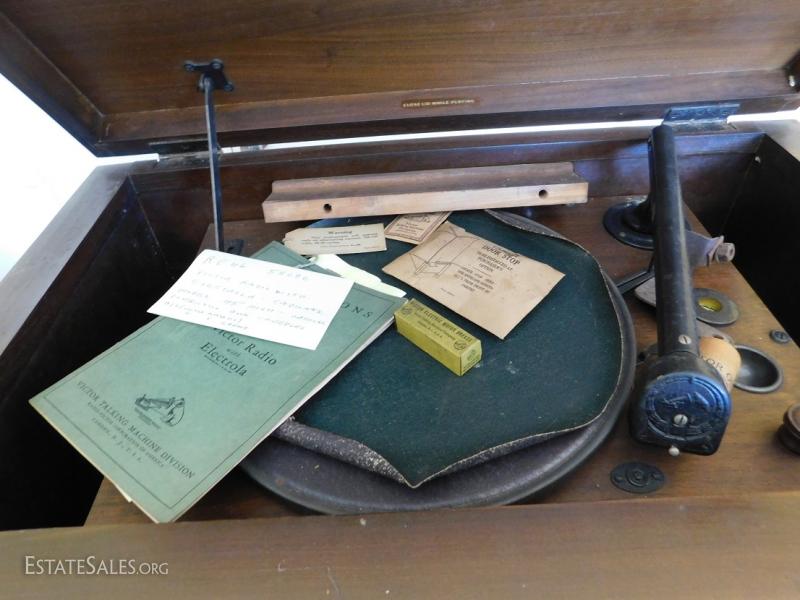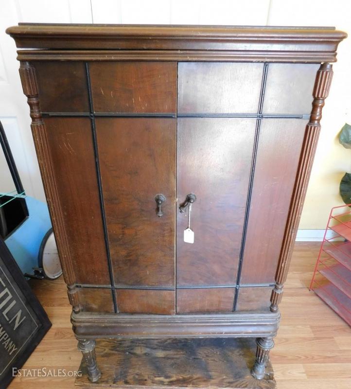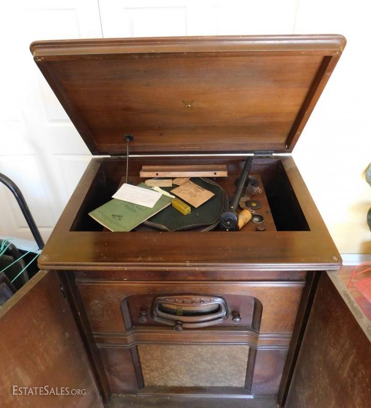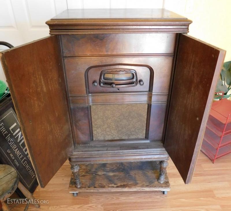 Victrola Radio and Phonograph. Needs repair. Some delamination of veneer on doors. Nice look.