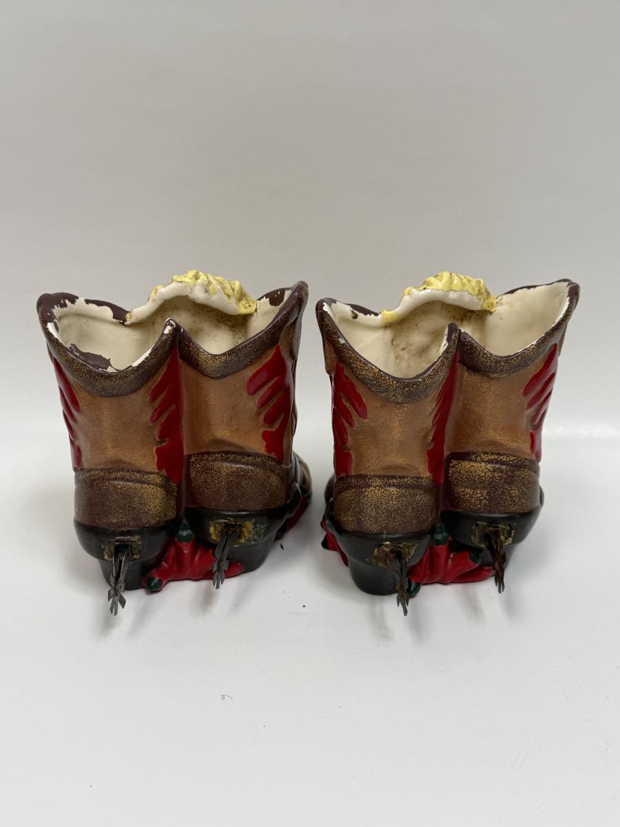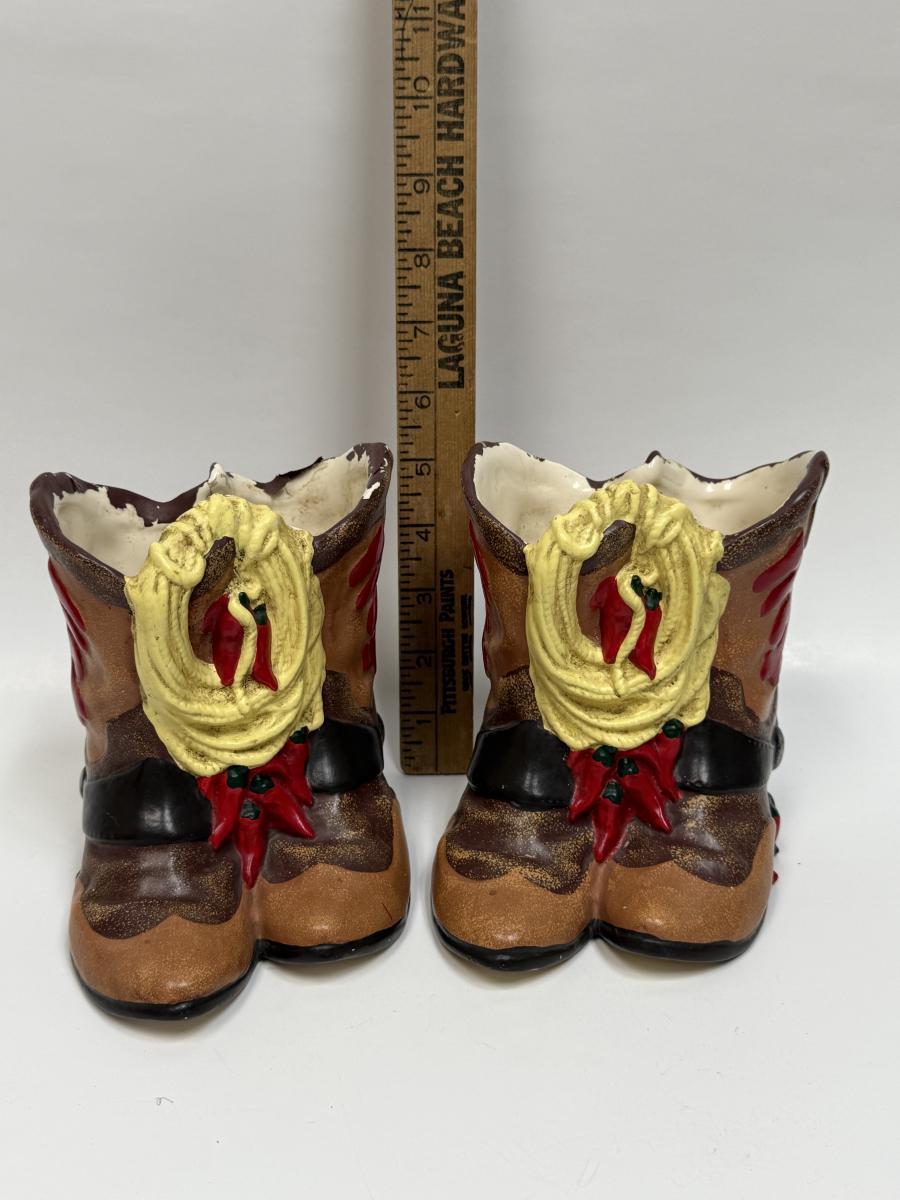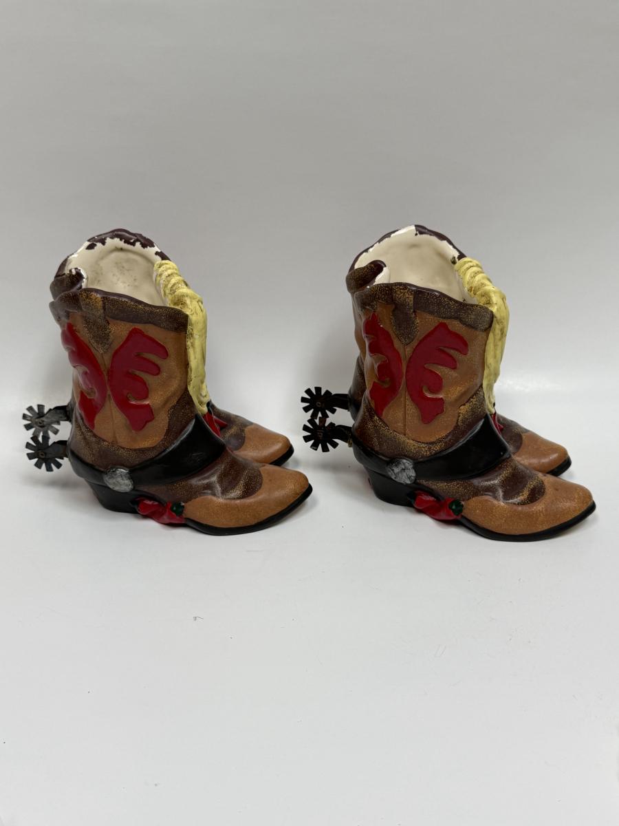 Vintage Painted Plaster Ceramic Cowboy Boot Shaped Vase or Planter - a Pair