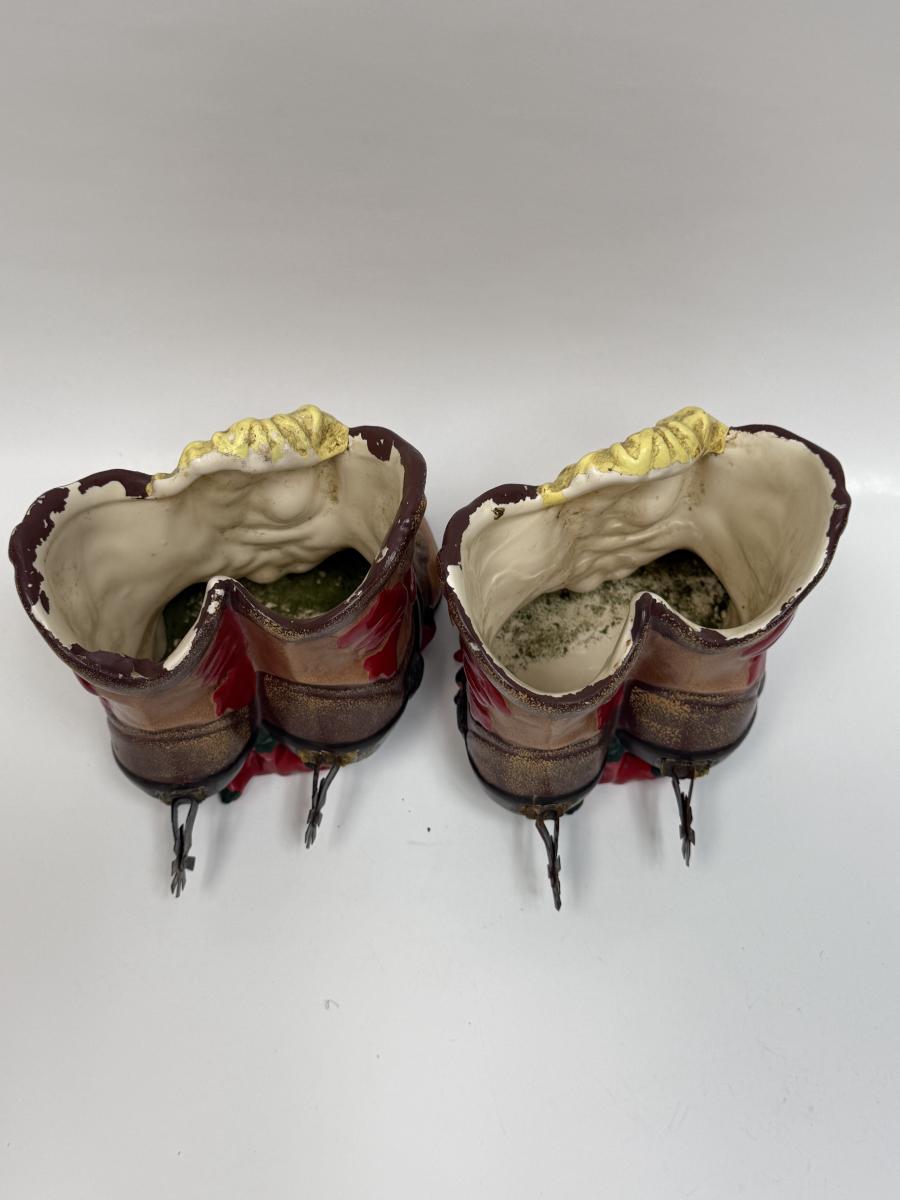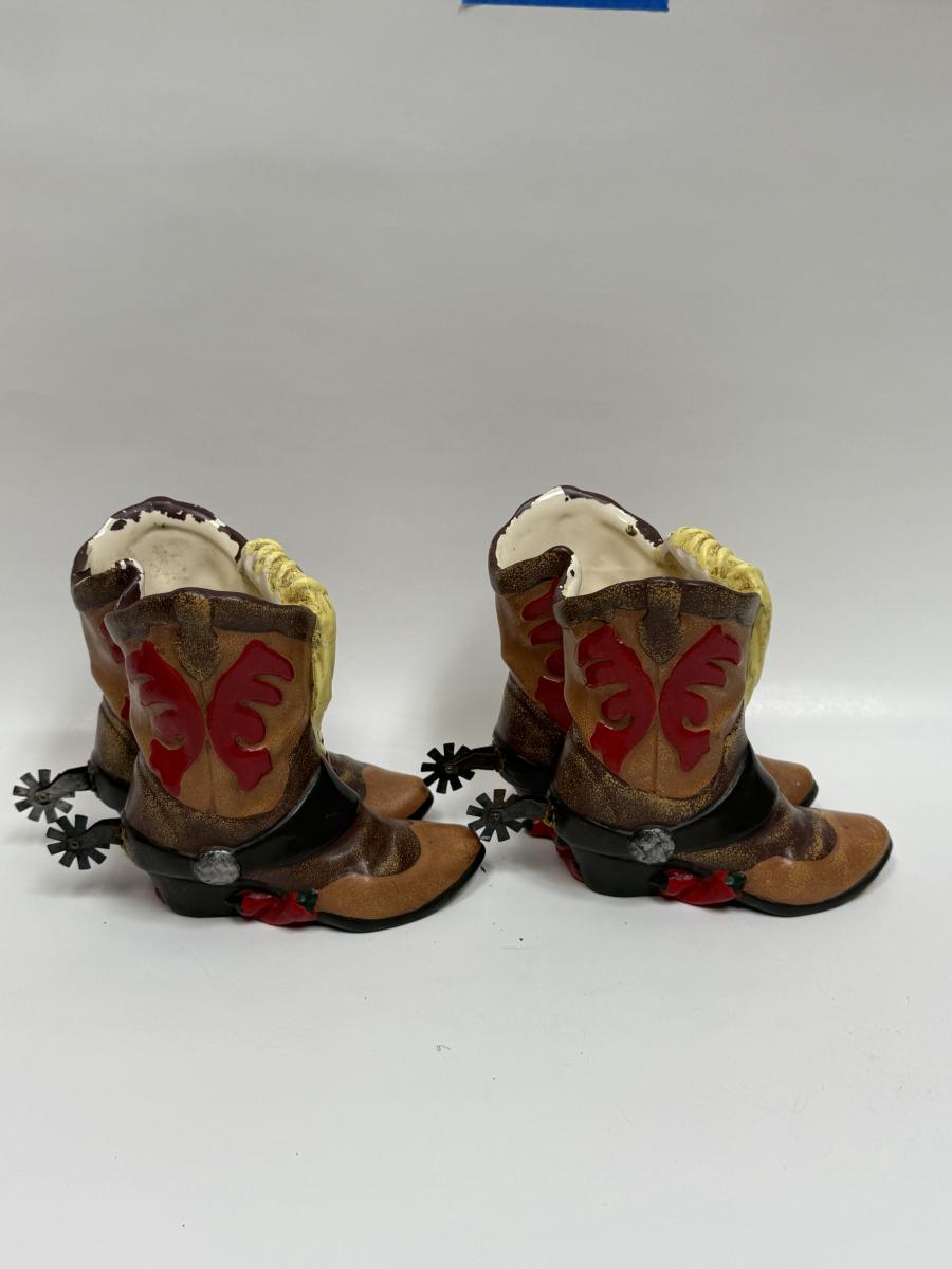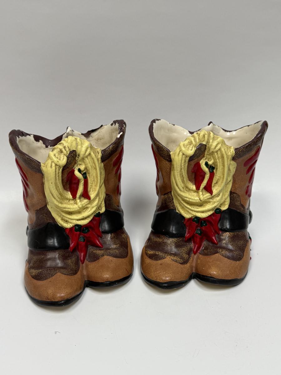 Vintage Painted Plaster Ceramic Cowboy Boot Shaped Vase or Planter - a Pair
