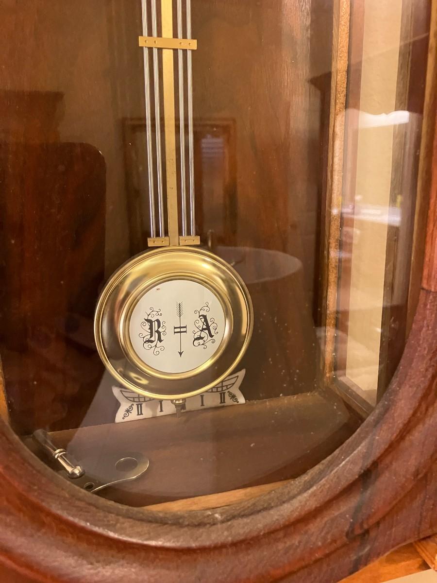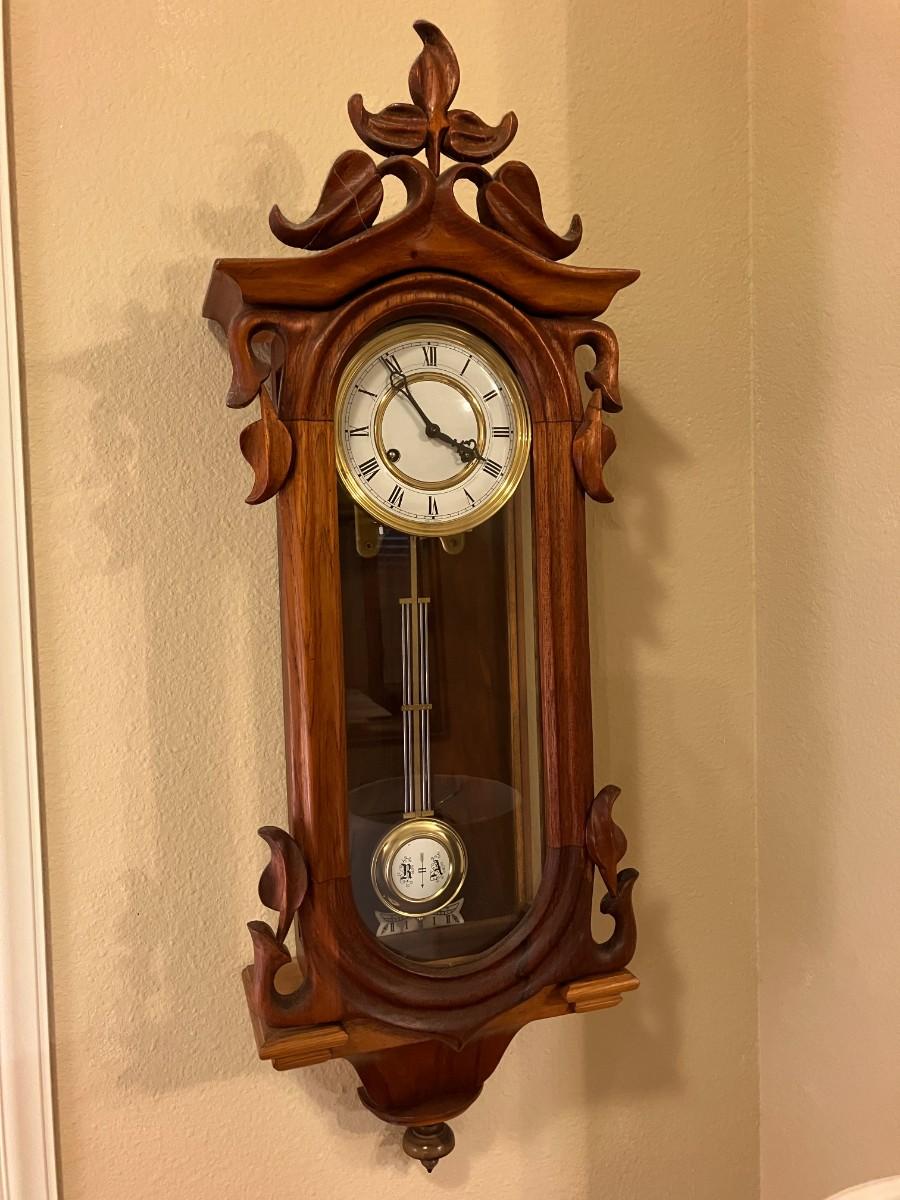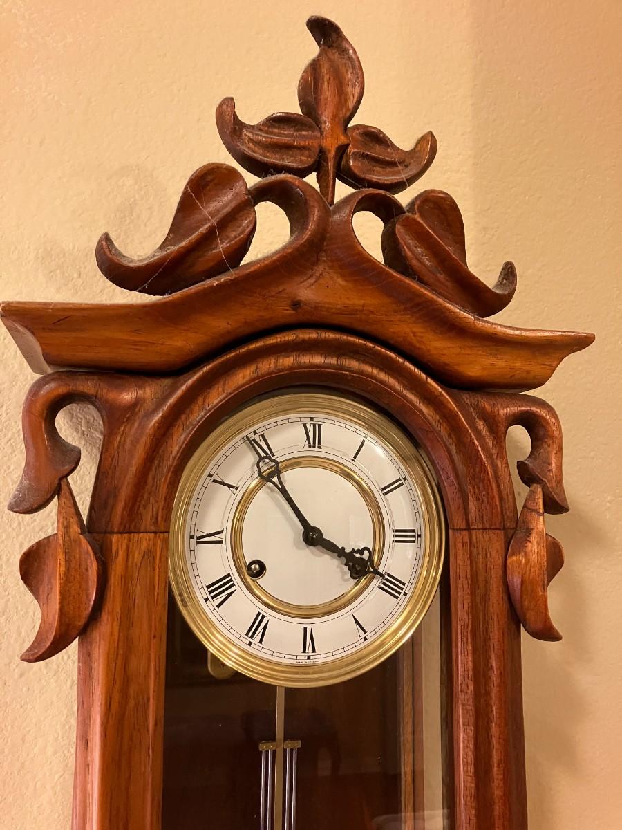 Antique Vienna Regulator wall clock, works with key included. Circa early 1900s. 32" H x 11" W x 5" D