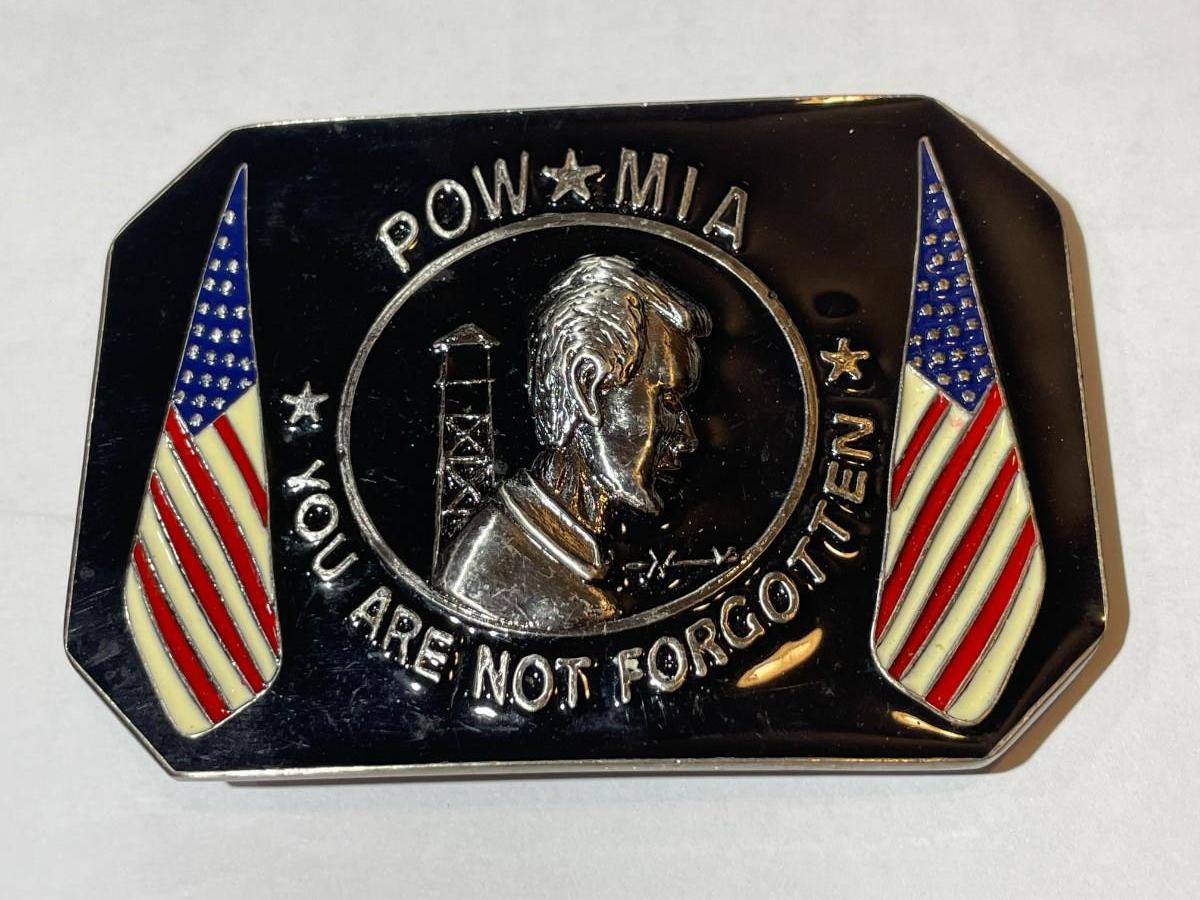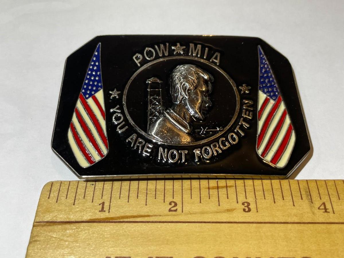Vietnam Era POW-MIA You Are Not Forgotten Enameled Belt Buckle in Good Preowned Condition.
