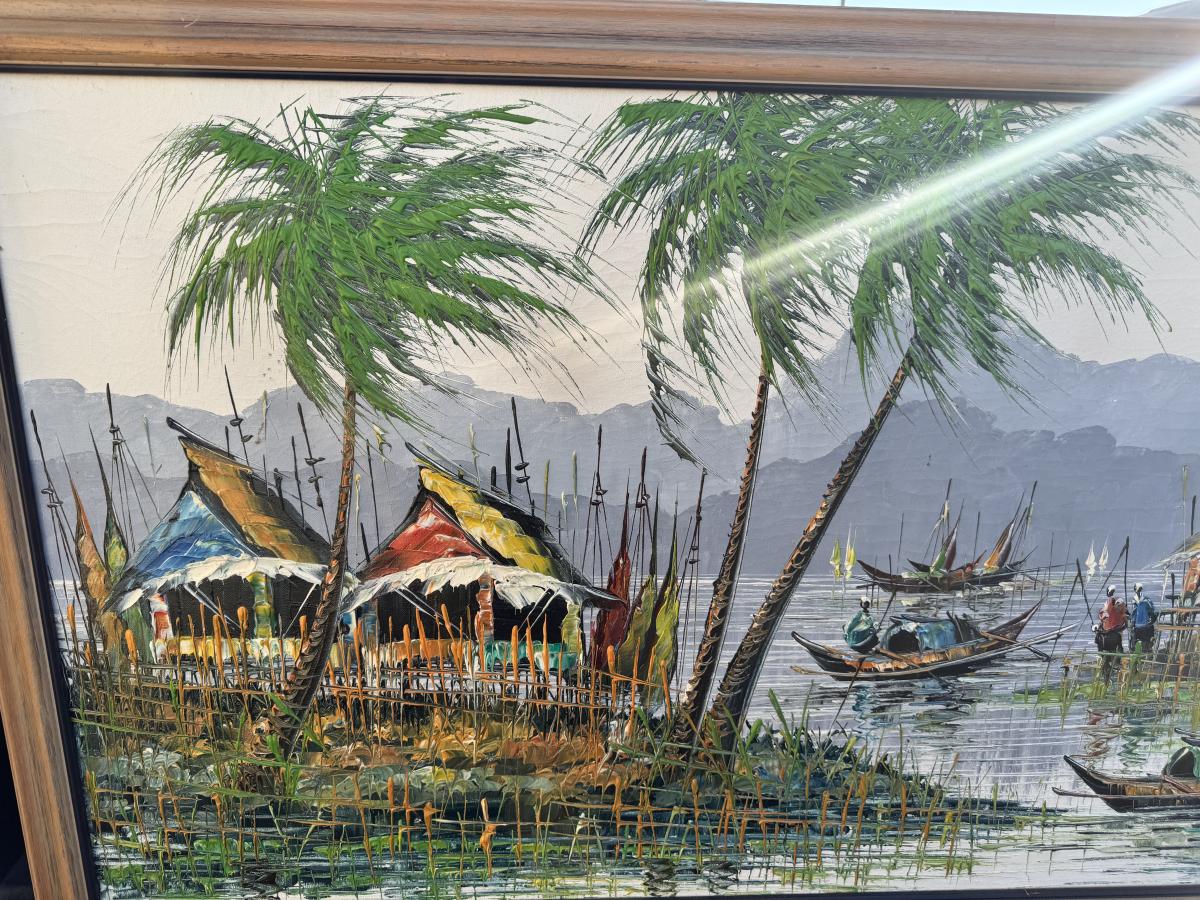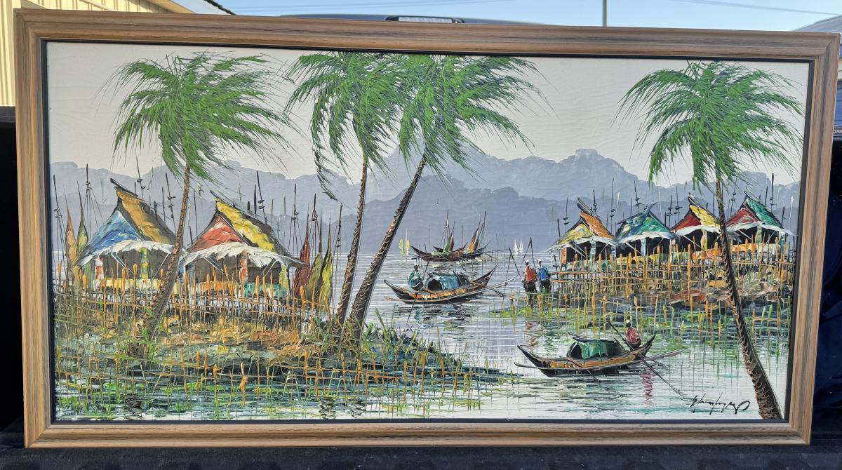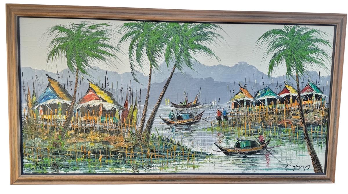 Vietnamese “river village” scene -Oil