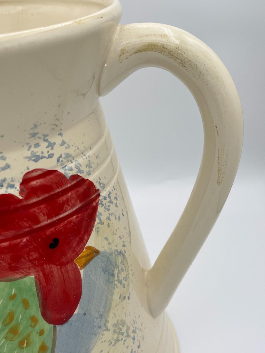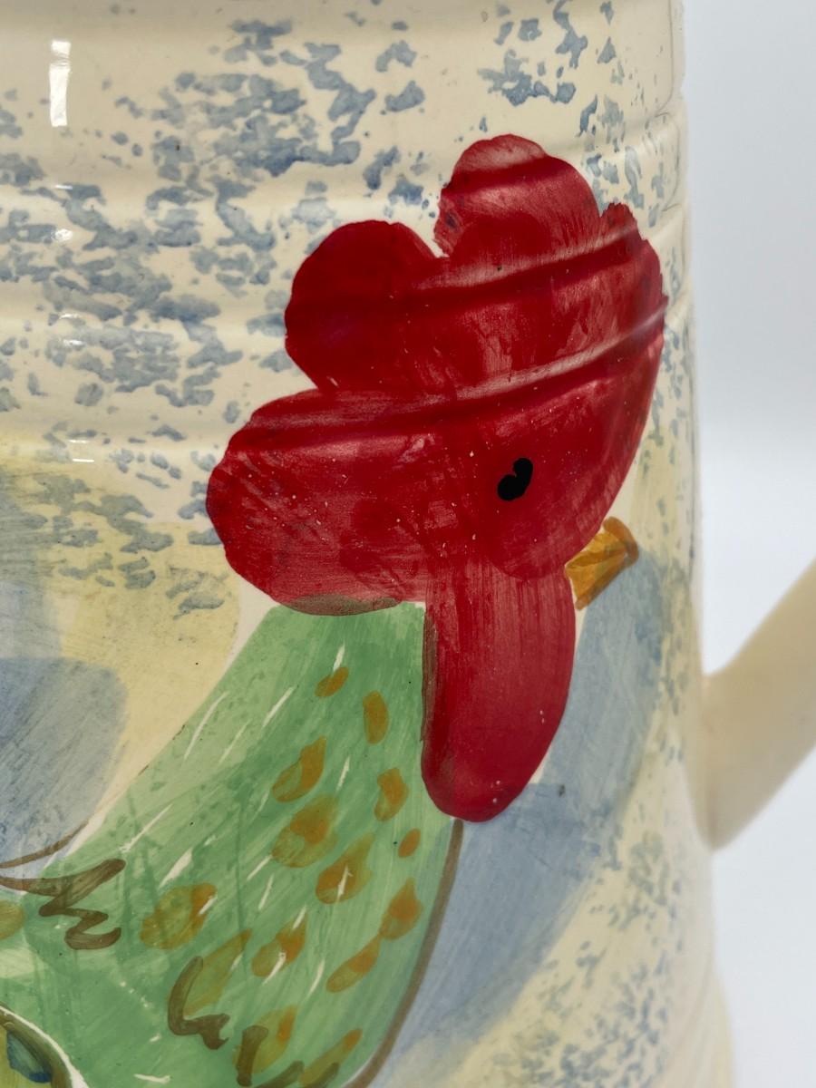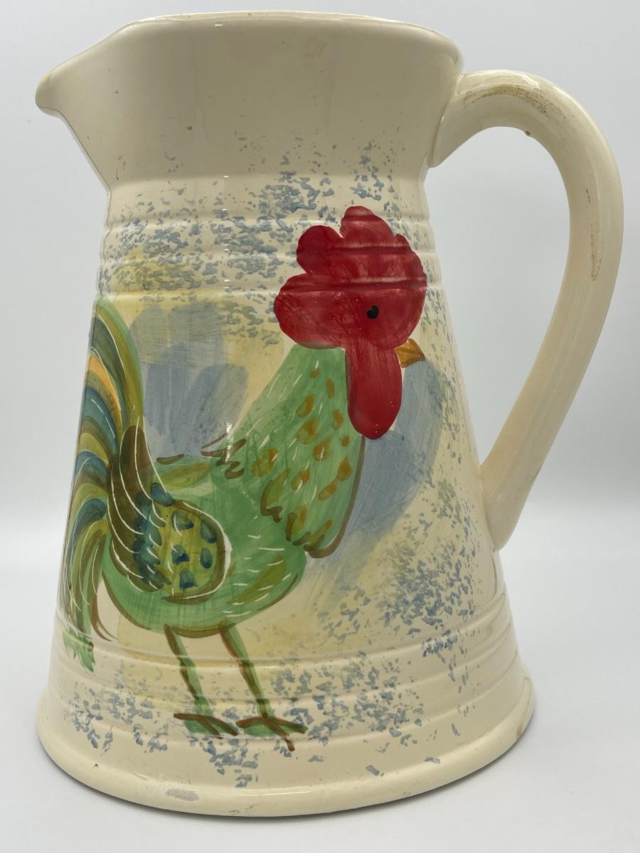 Vietri rustic ceramic pitcher with hand painted rooster. Minor chips around the rim, please examine photos carefully for any condition issues. Original retail price $95. Dimensions: 11.5" x 9". #88