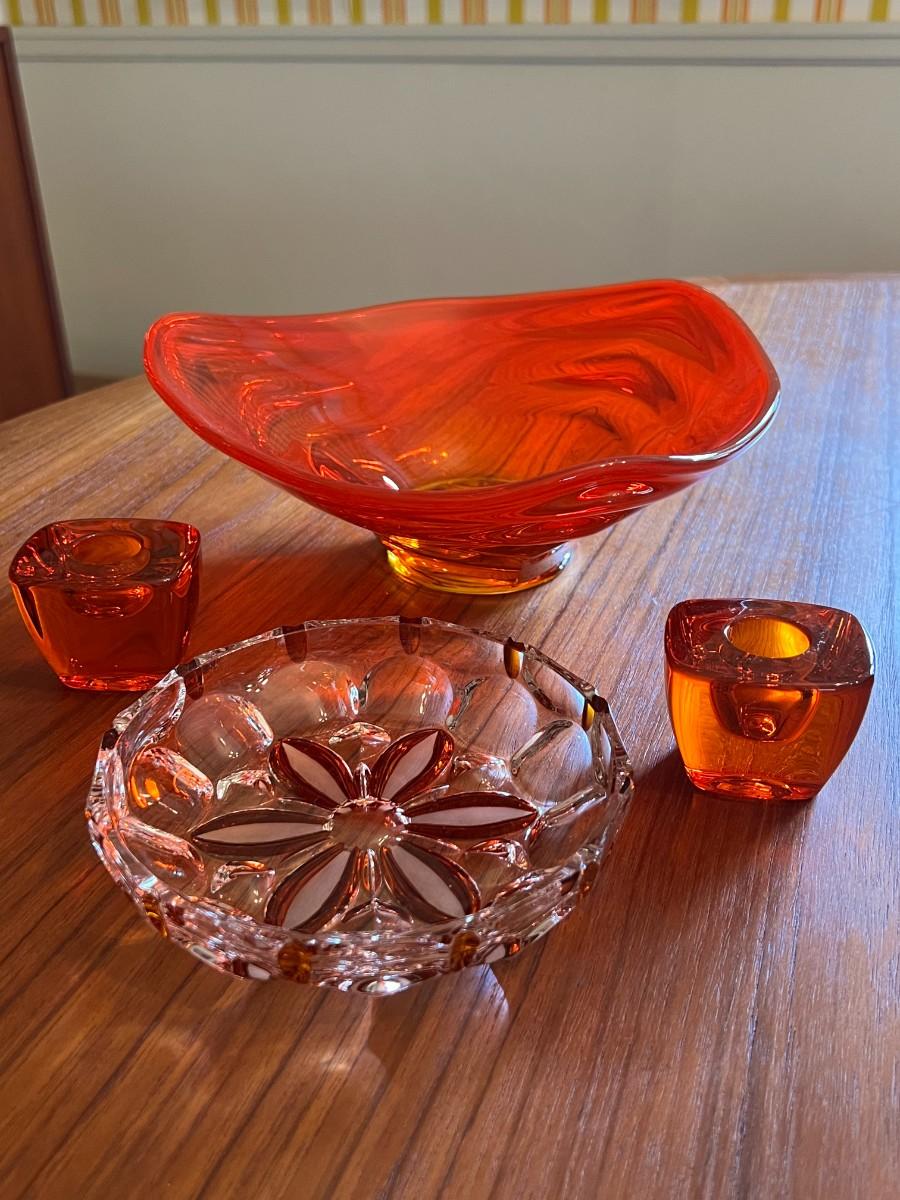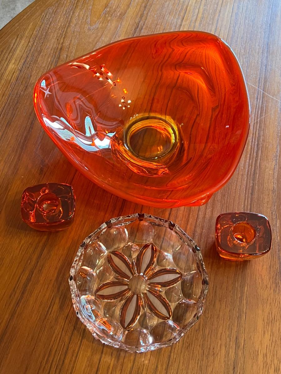 Viking Tundra Glass Persimmon Centerpiece Large Fruit Bowl Lot