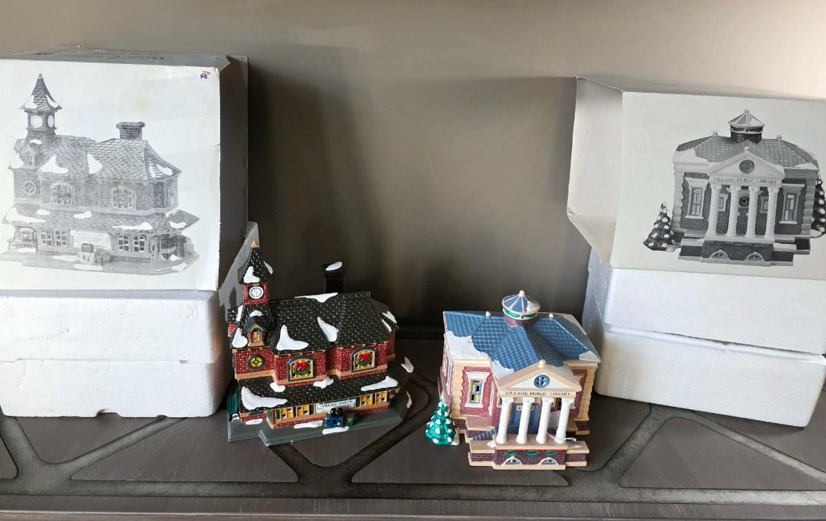Dept. 56 Snow Village, "Village Station" and " Village Public Library" lot includes both with original boxes.