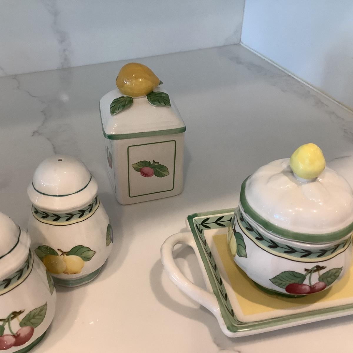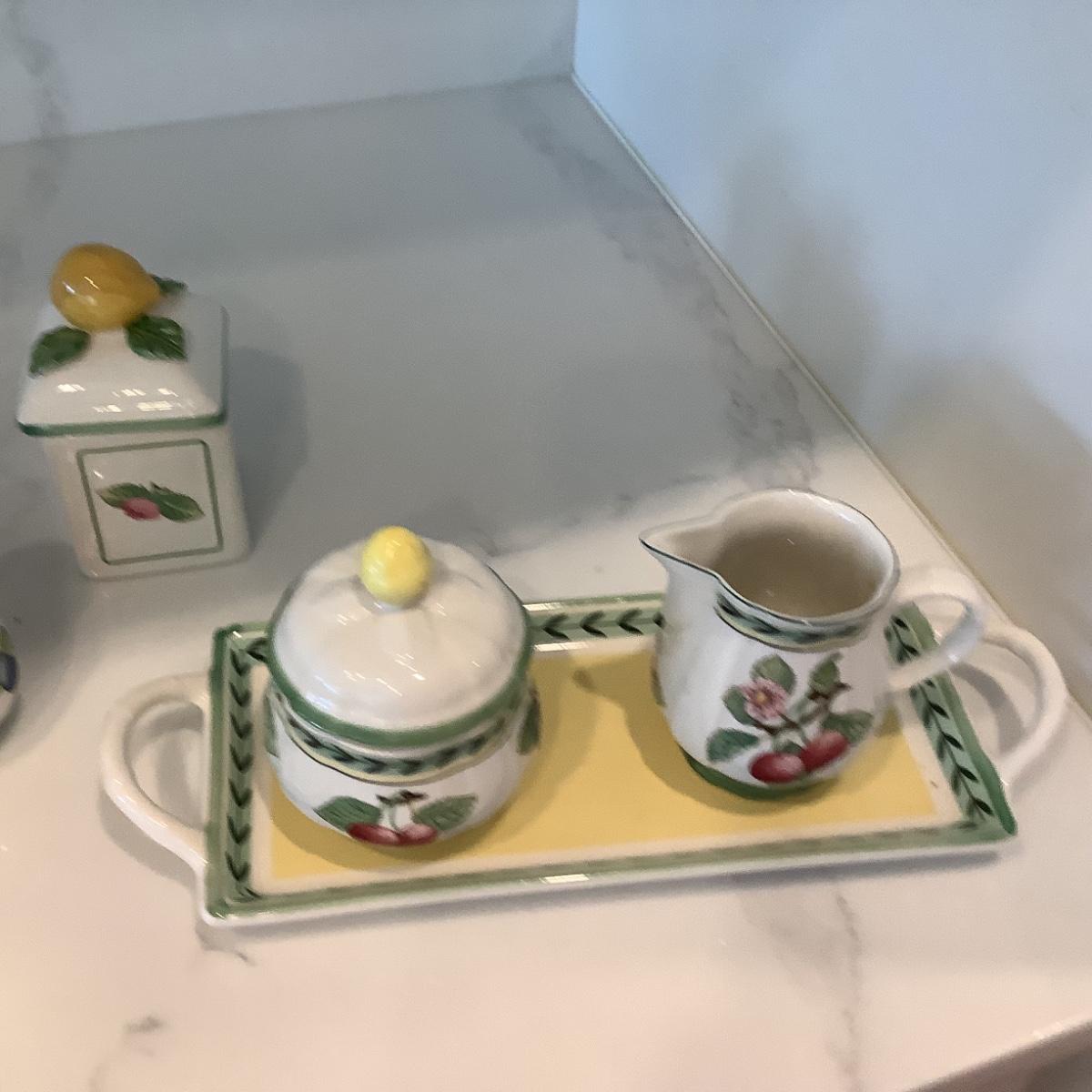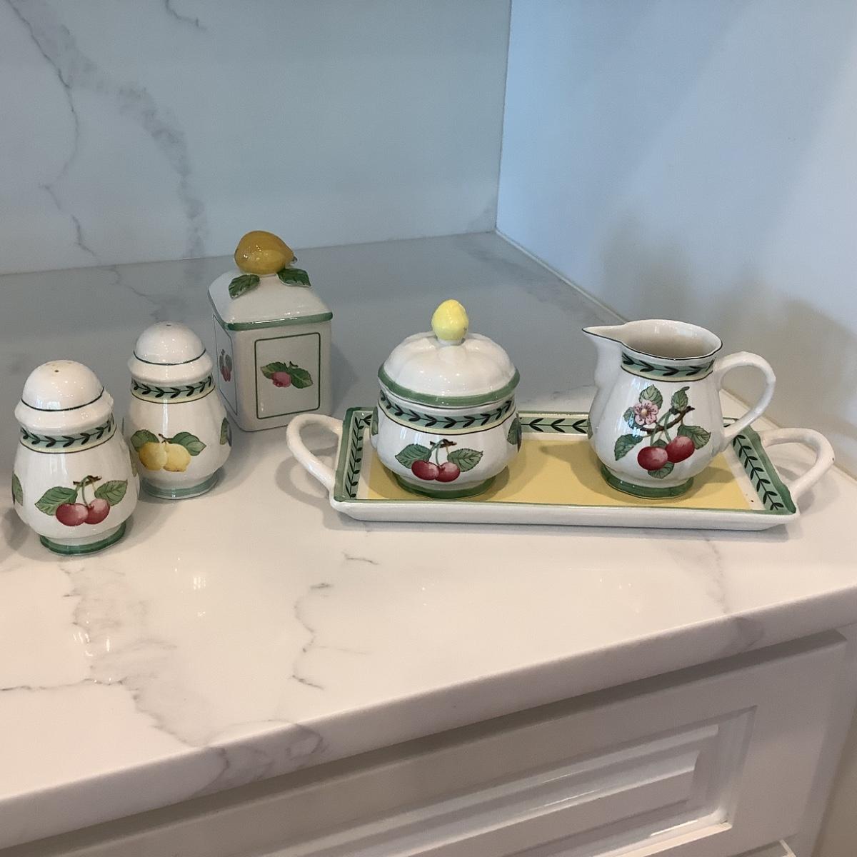 Villeroy & Boch French Garden salt & pepper, cream & sugar with tray and jelly jar