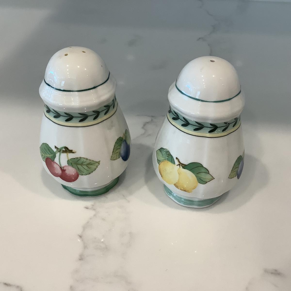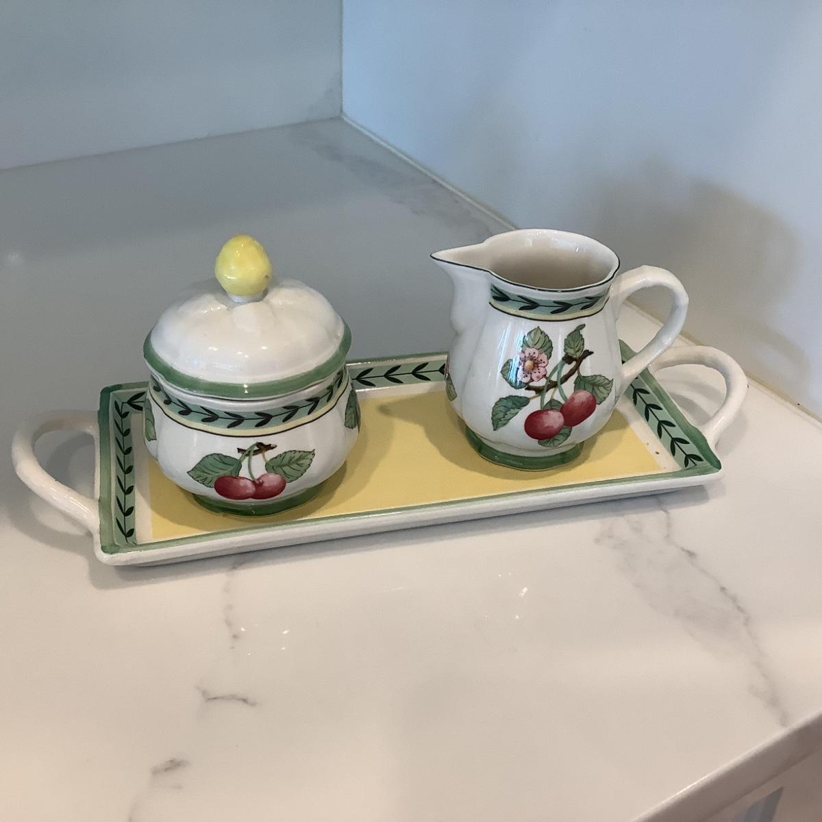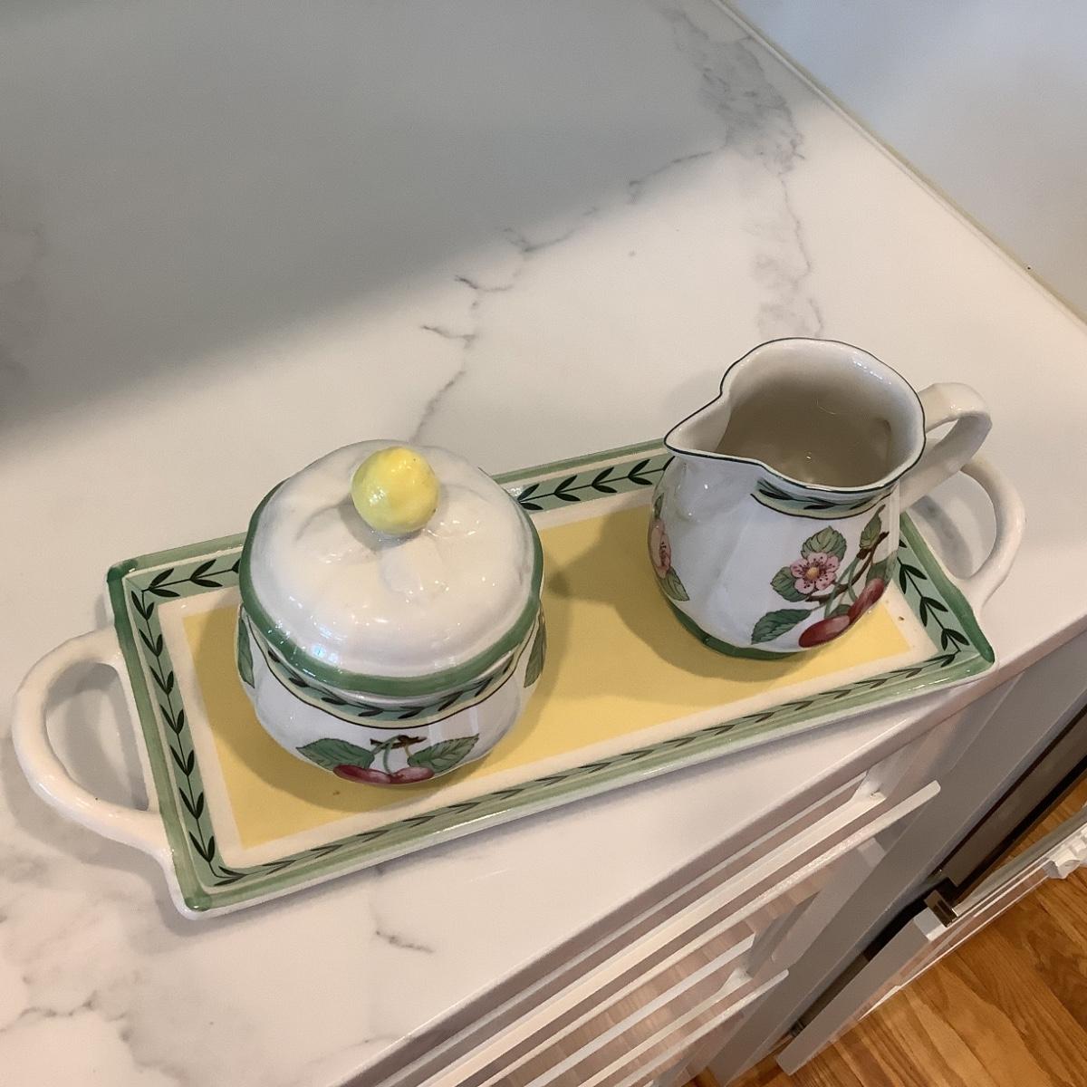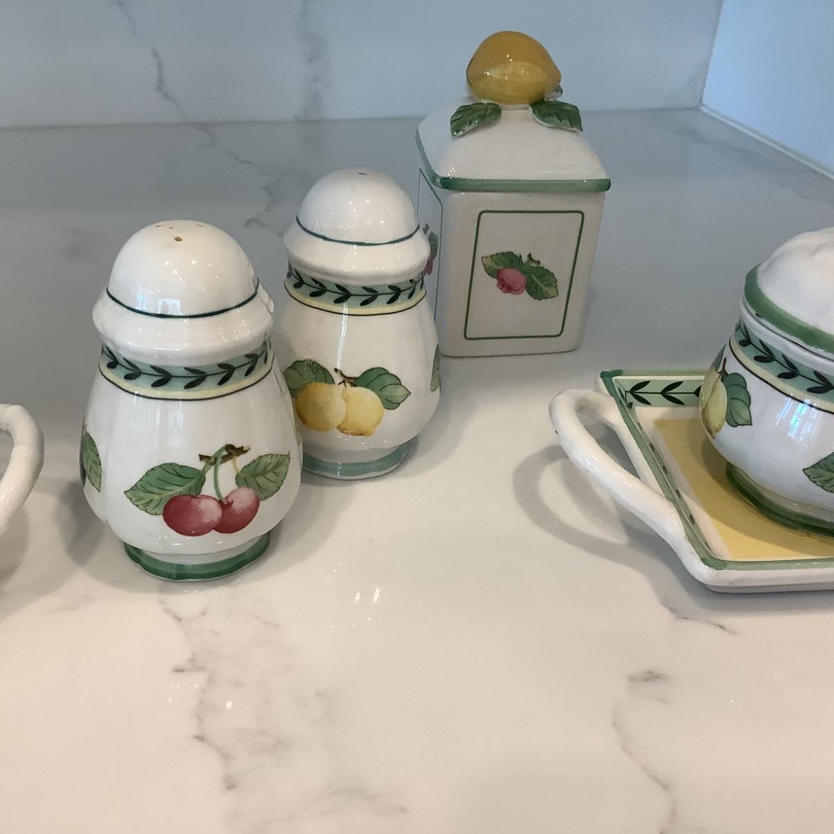 Villeroy & Boch French Garden salt & pepper, cream & sugar with tray and jelly jar