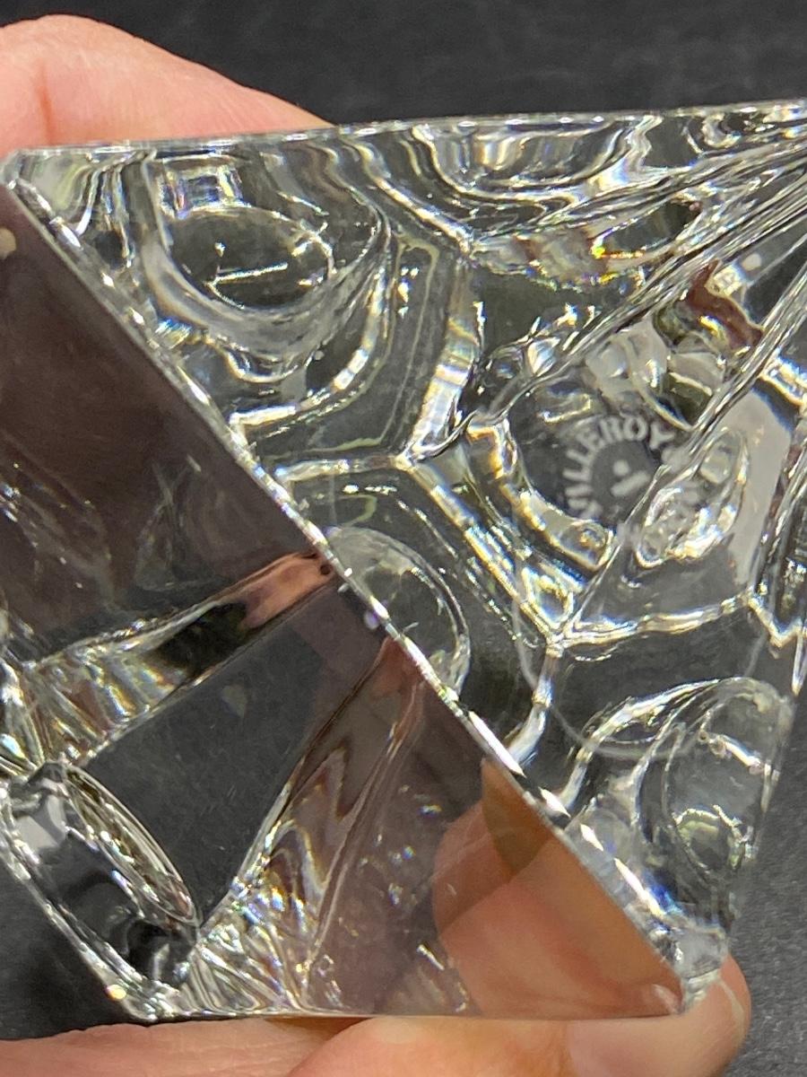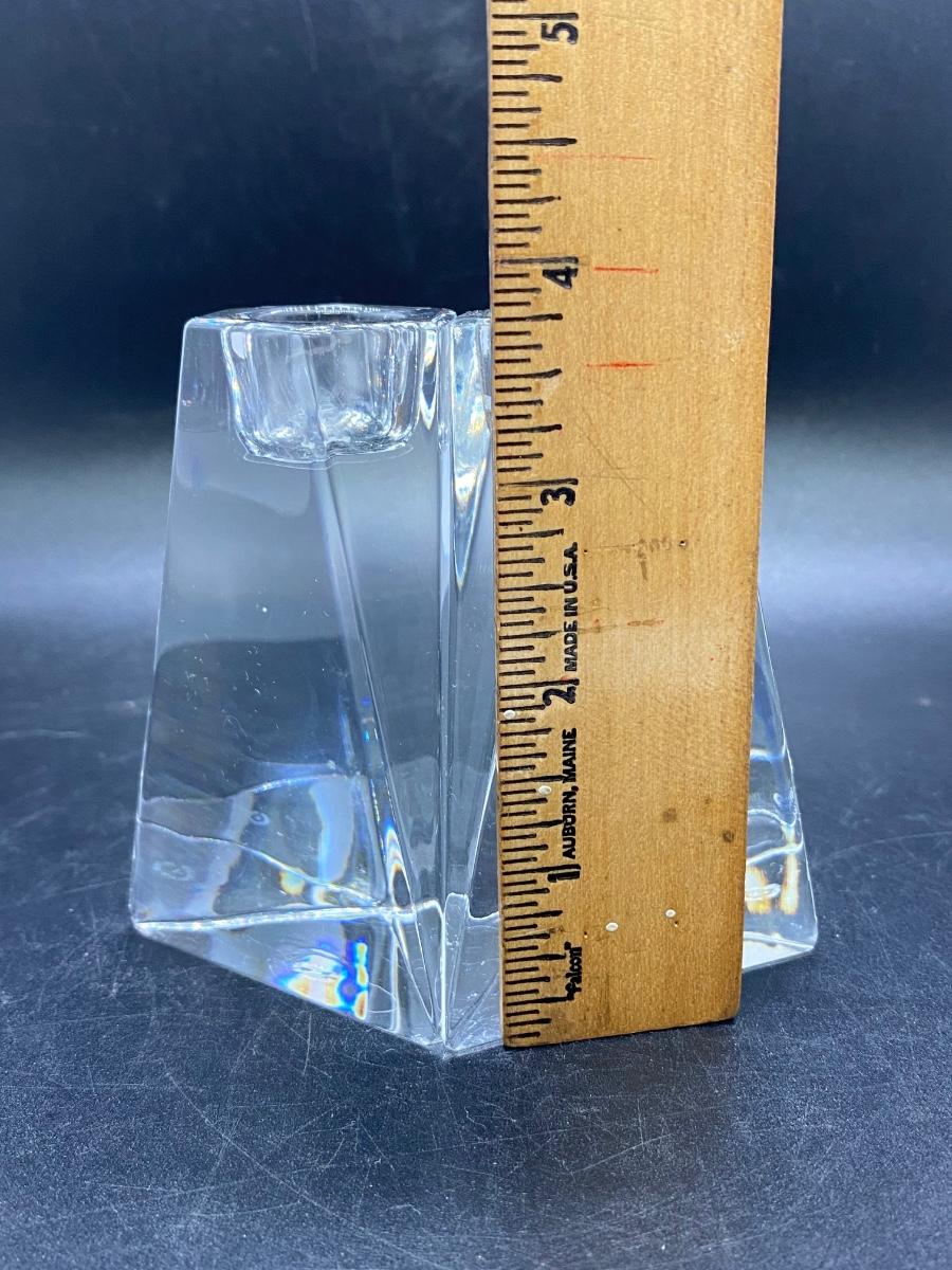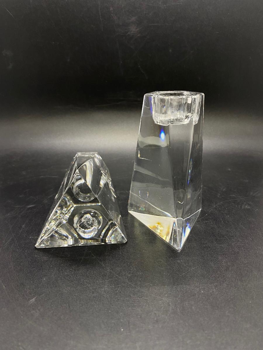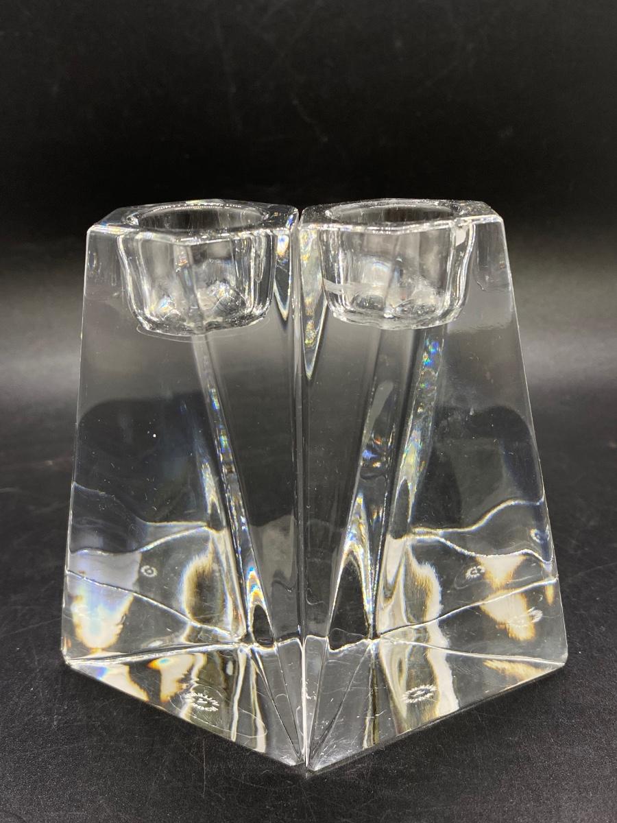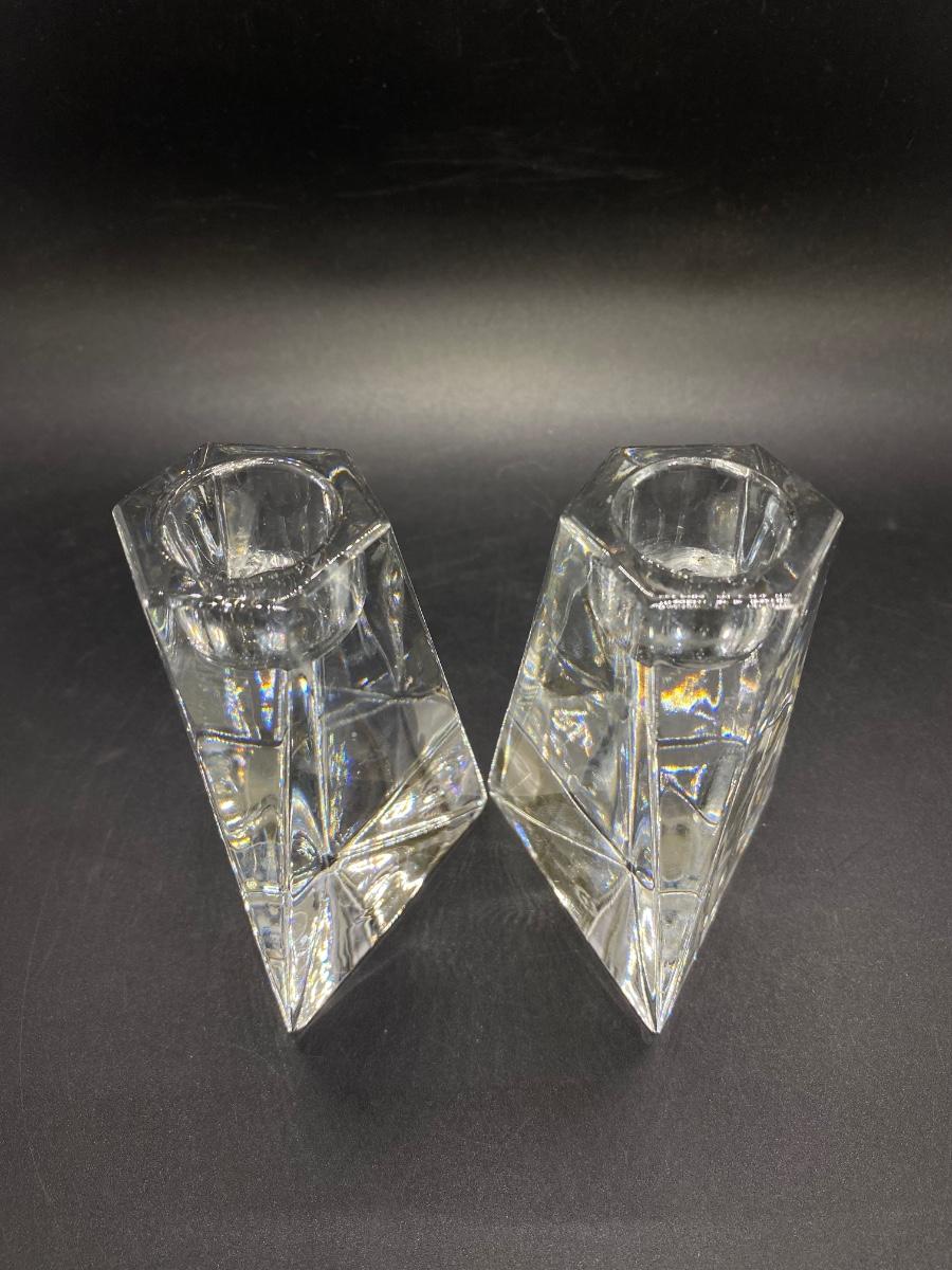 Beautiful Villeroy & Bach prism cut candlestick holders. Heavy crystal, cut perfectly to reflect light. About 4" height.