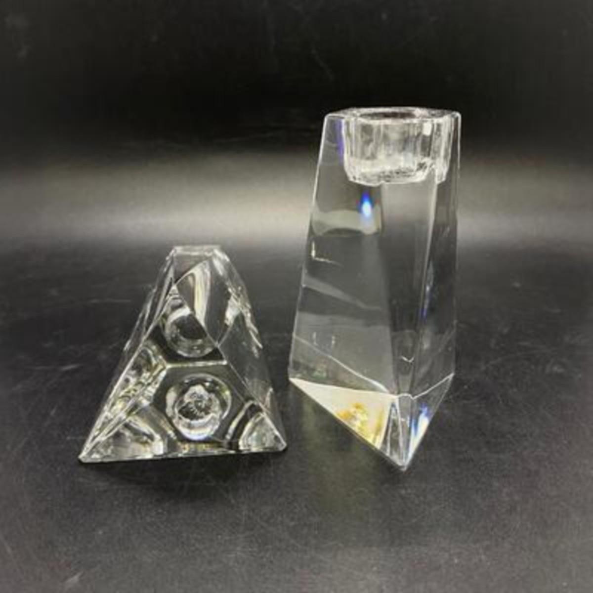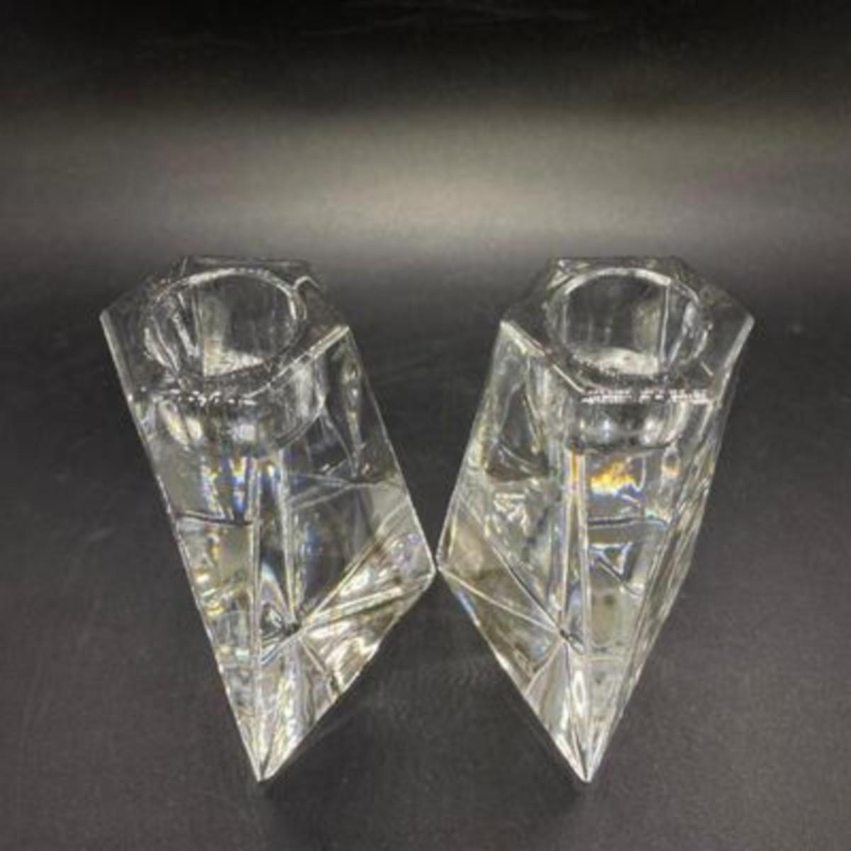 Beautiful Villeroy & Bach prism cut candlestick holders. Heavy crystal, cut perfectly to reflect light. About 4" height.