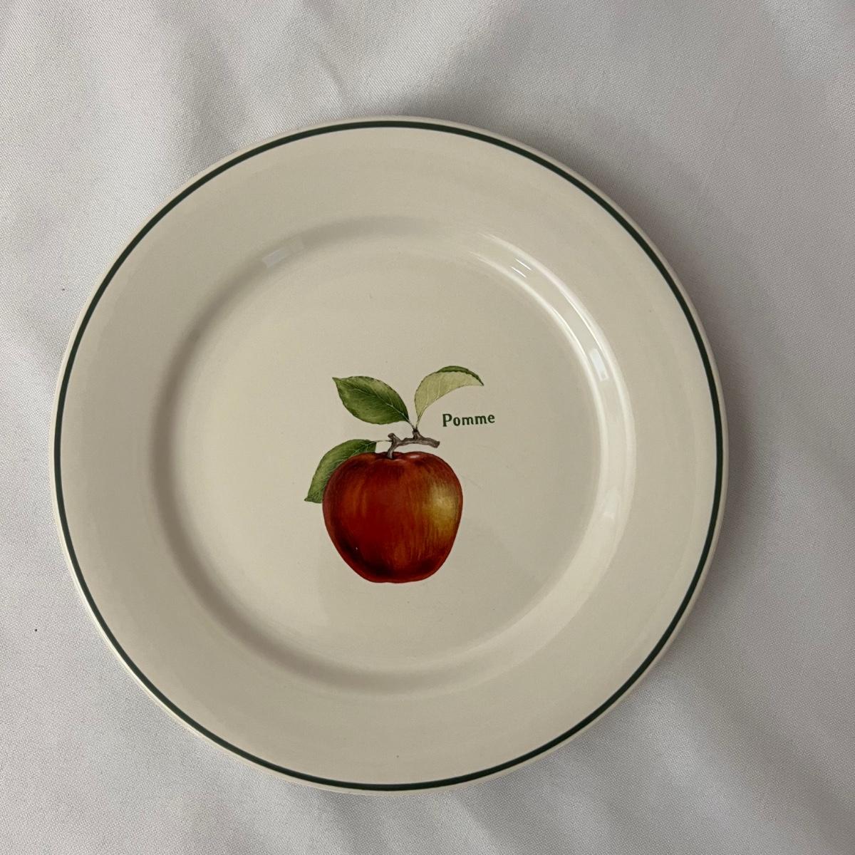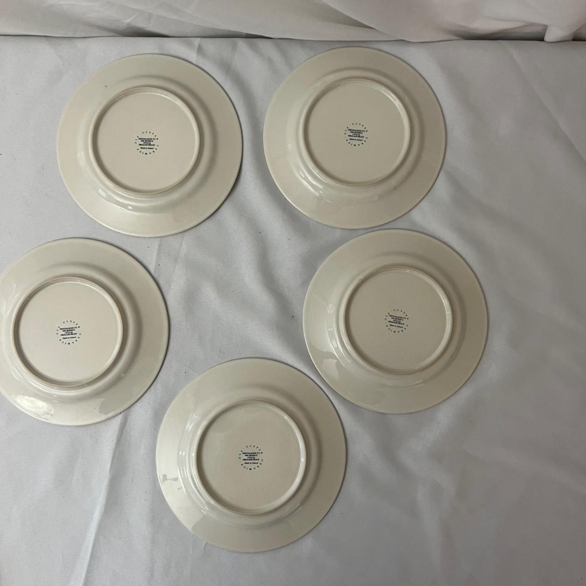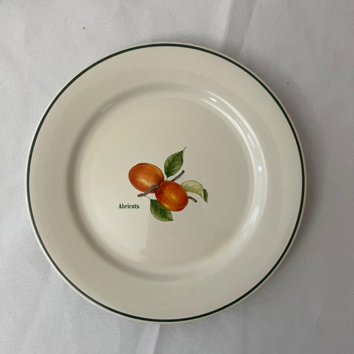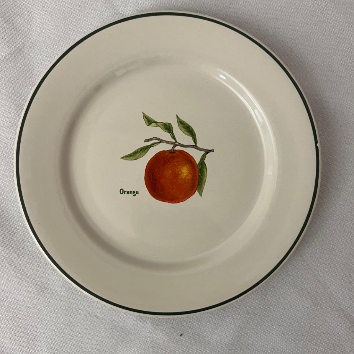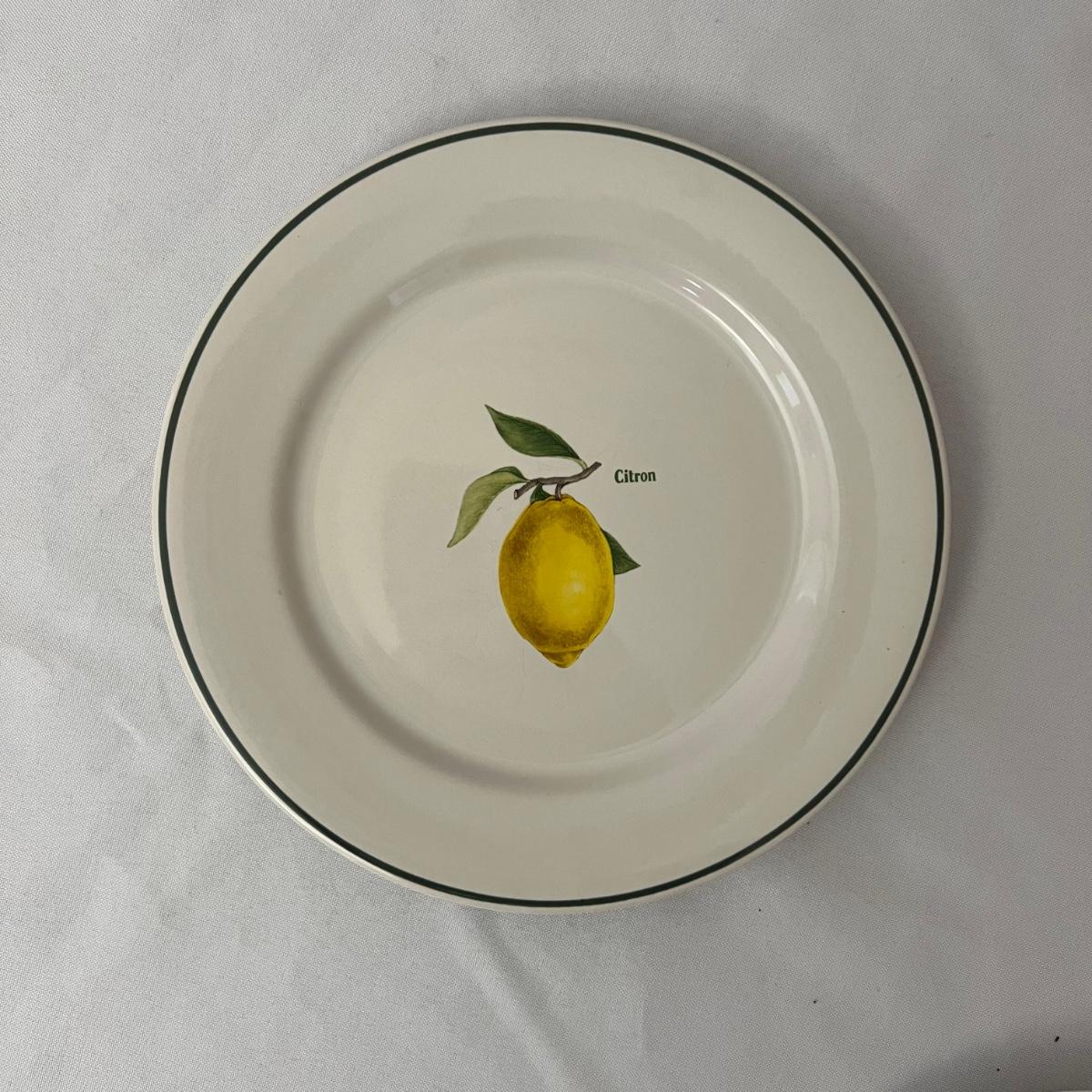Seven Villeroy & Boch French Garden pattern dinner plates measuring 10.25”D x 1”H. Five Ulster ceramic fruit theme plates measure 8”D x .75”H.