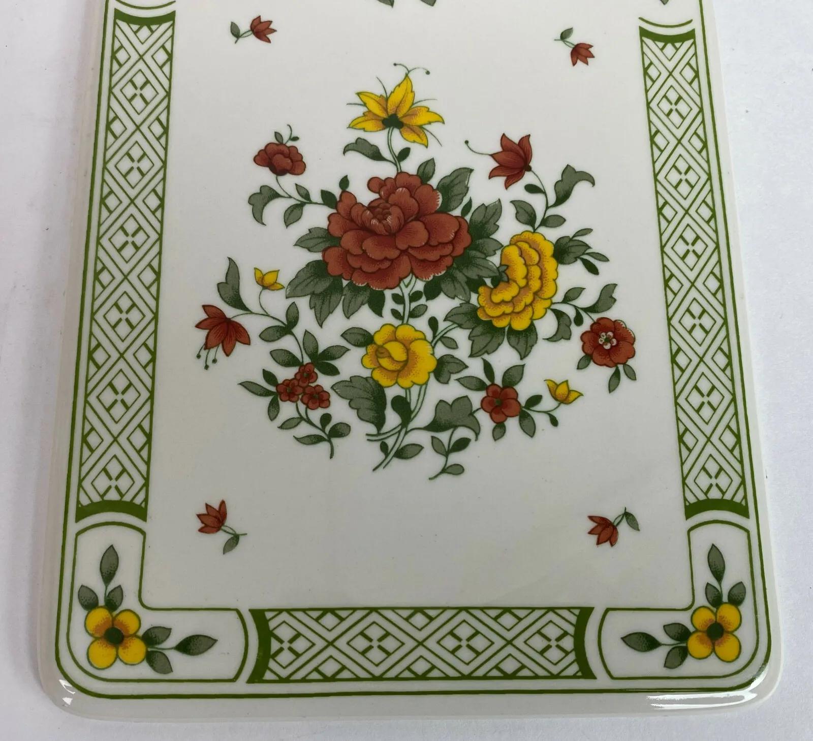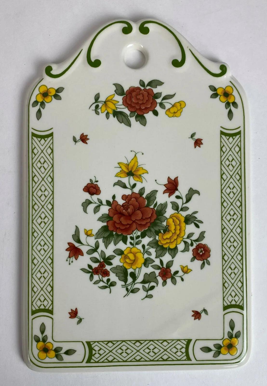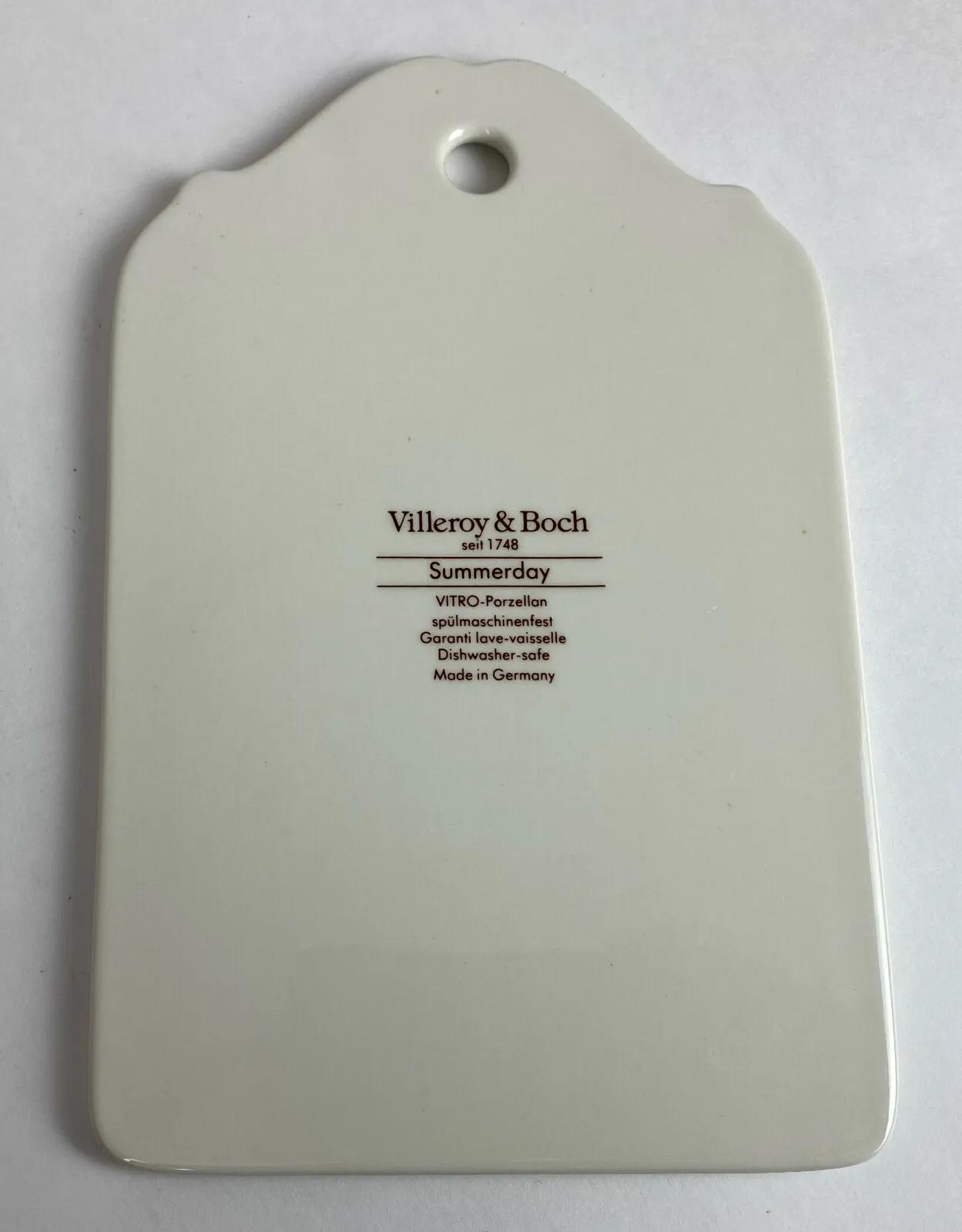 In excellent condition here is an accessory piece from the Summerday line of porcelain dinnerware by Villeroy & Boch...This 6" x 9" porcelain Cheese and Cracker Board was crafted in Germany...Dishwasher safe..Designed to hang on the wall with hook...The now discontinued Summerday pattern was produced from 1970 to 2001.