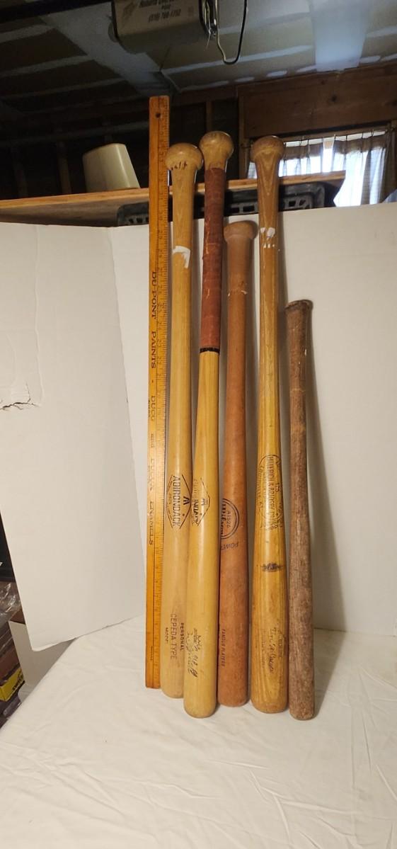 Vinage bat lot,including Louisville Slugger ( Tim McCarver) & Wilson ( Mickey Mantle) plus Adirondack