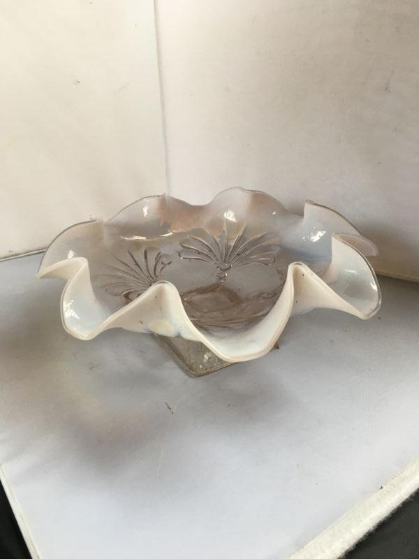 Vinatge Art Glass Murano Style Ruffled and Etched Glass Bowl