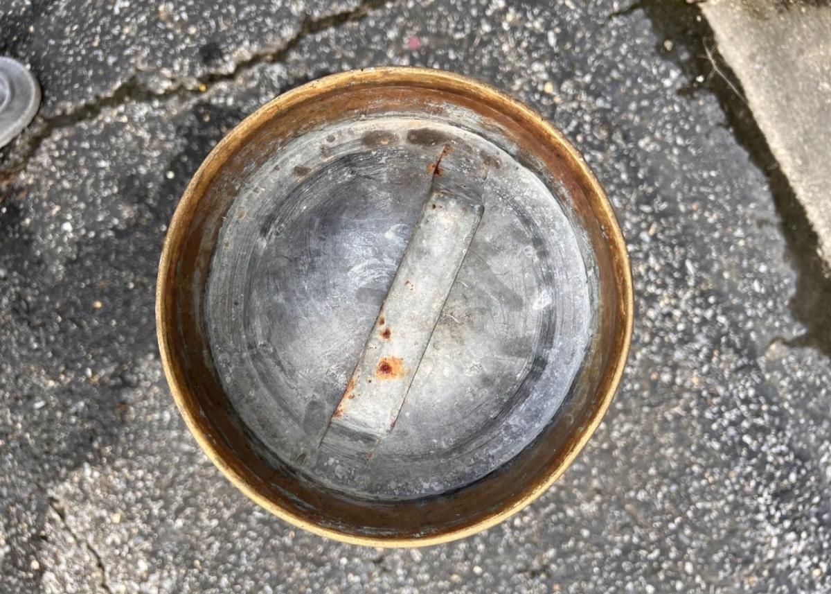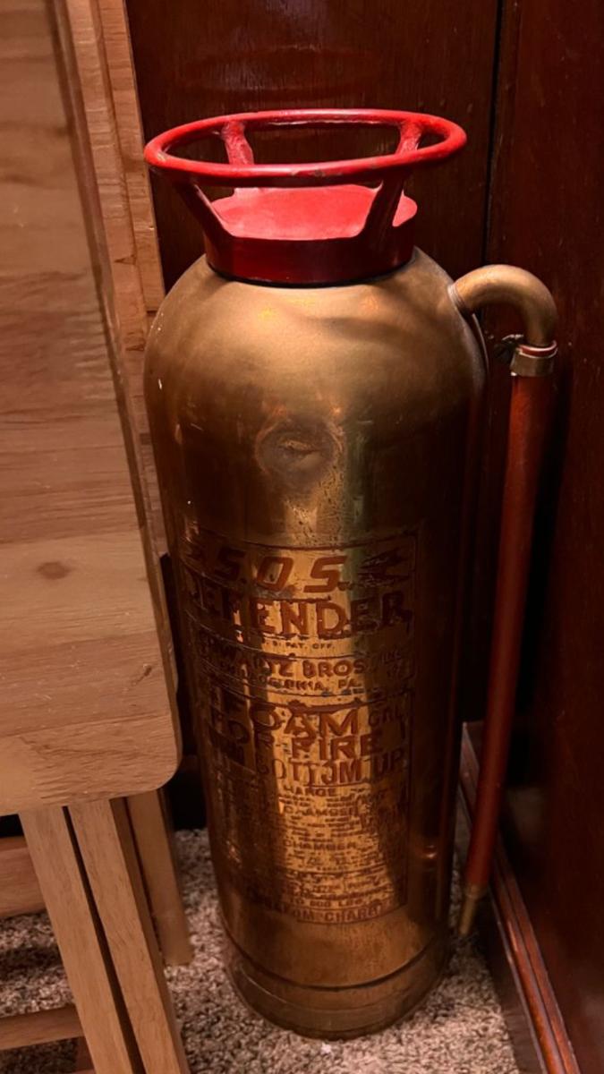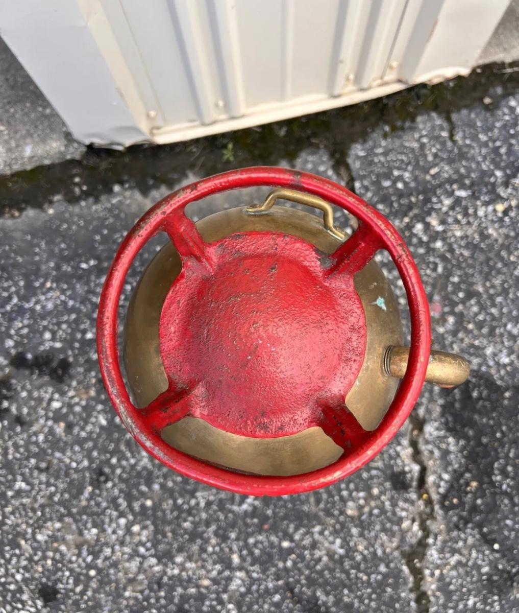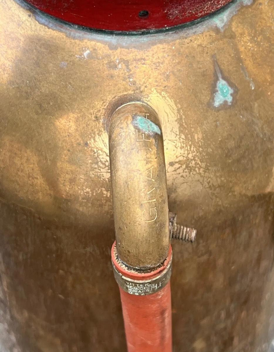 Made of Copper and Brass. Has nice Patina. Small dent in front