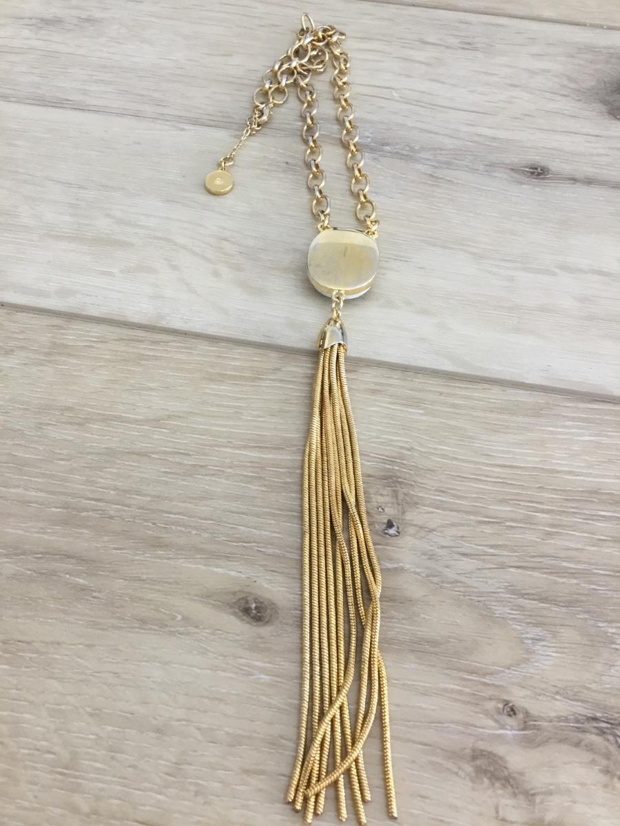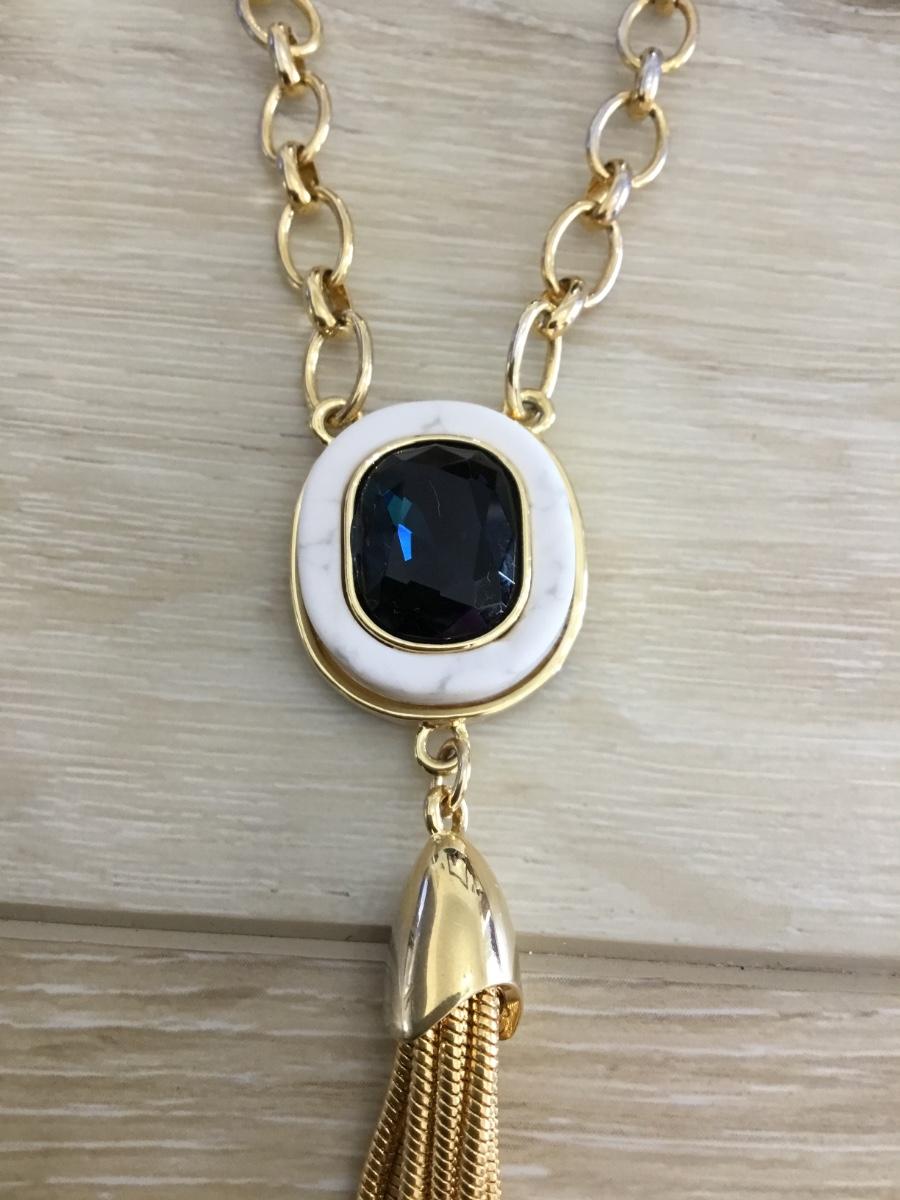 Vince camuto howlite stone pendant necklace, green rhinestone, gold tone chain