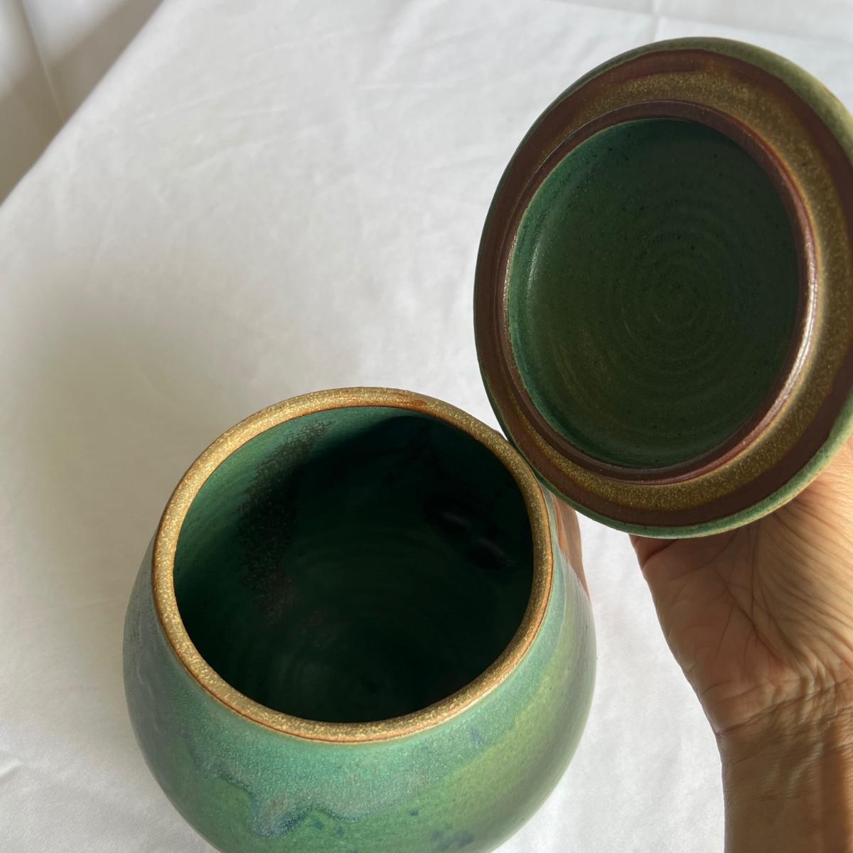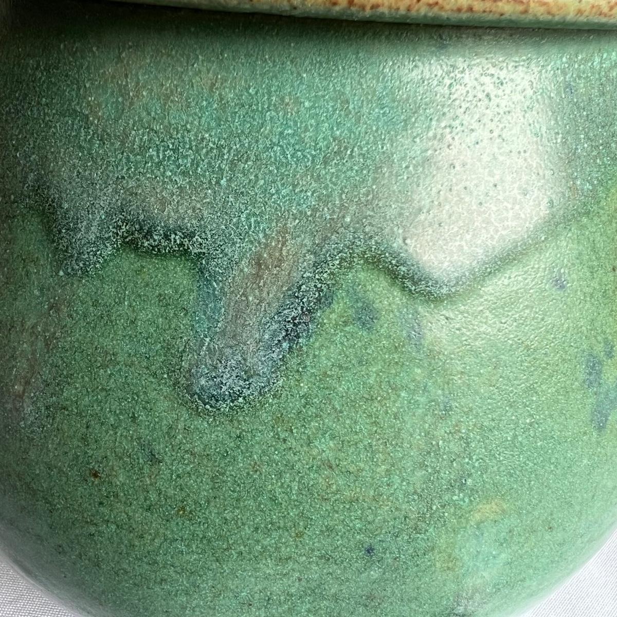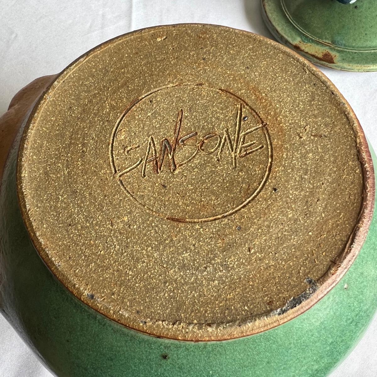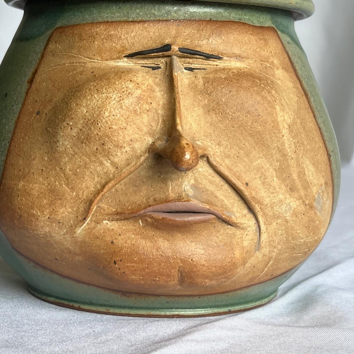 This ceramic sculpture created by Vincent Sansone comes with paperwork. A quaint blue bird adorns the lid.