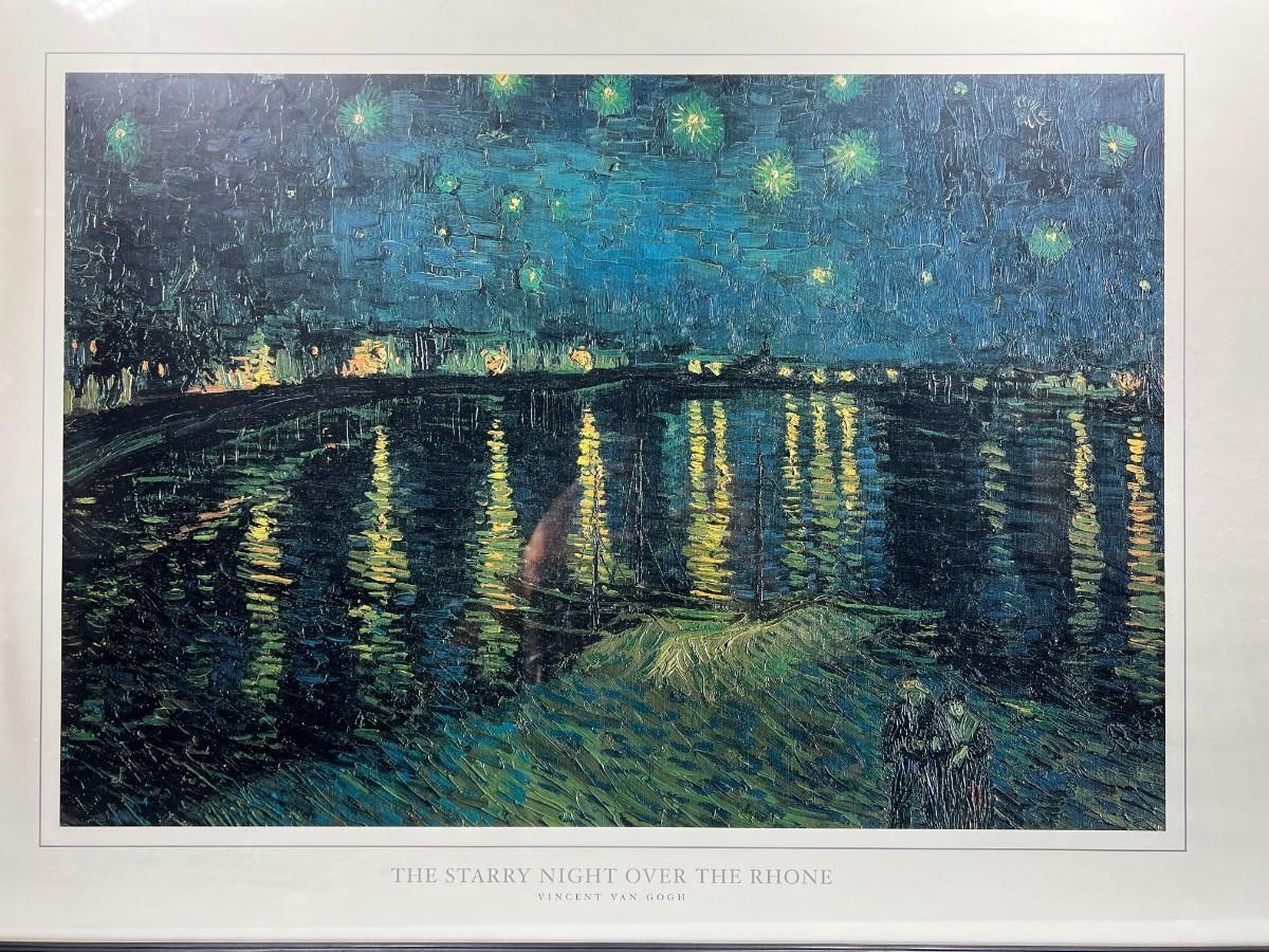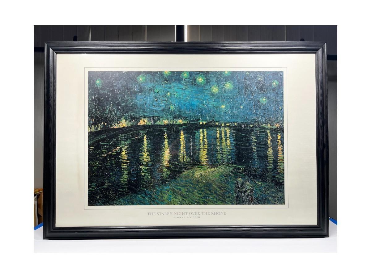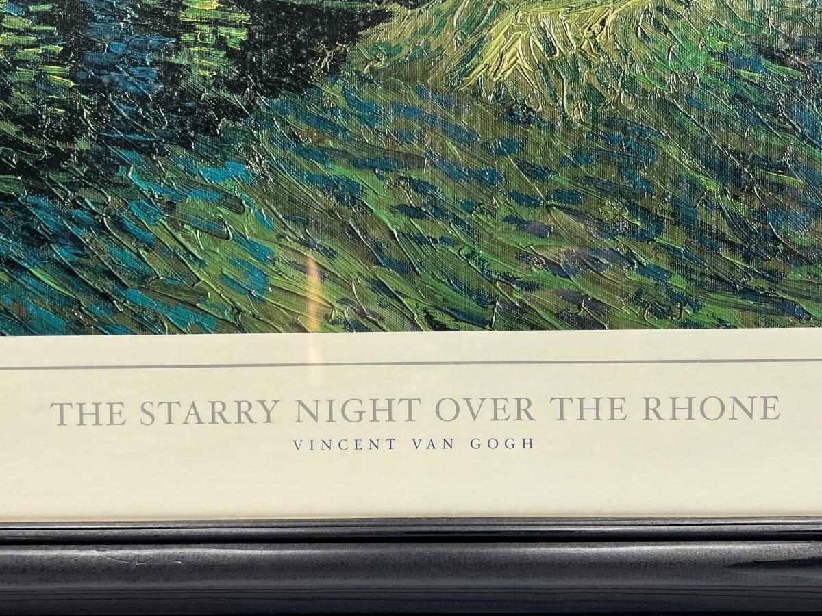 Vincent van Gogh Framed Print Artwork The Starry Night Over the Rhone, there is no significant damage to the frame or the glass and is in good displayable condition. Check pictures for more details ad for sizing.