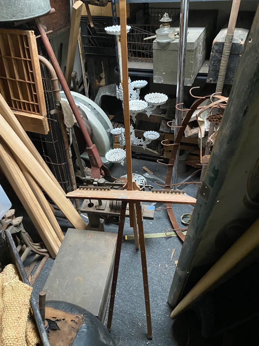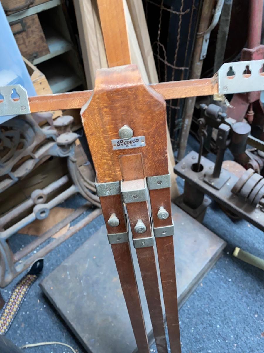 Vintage collapsible wood easel by Reeves. Folds up for travel.